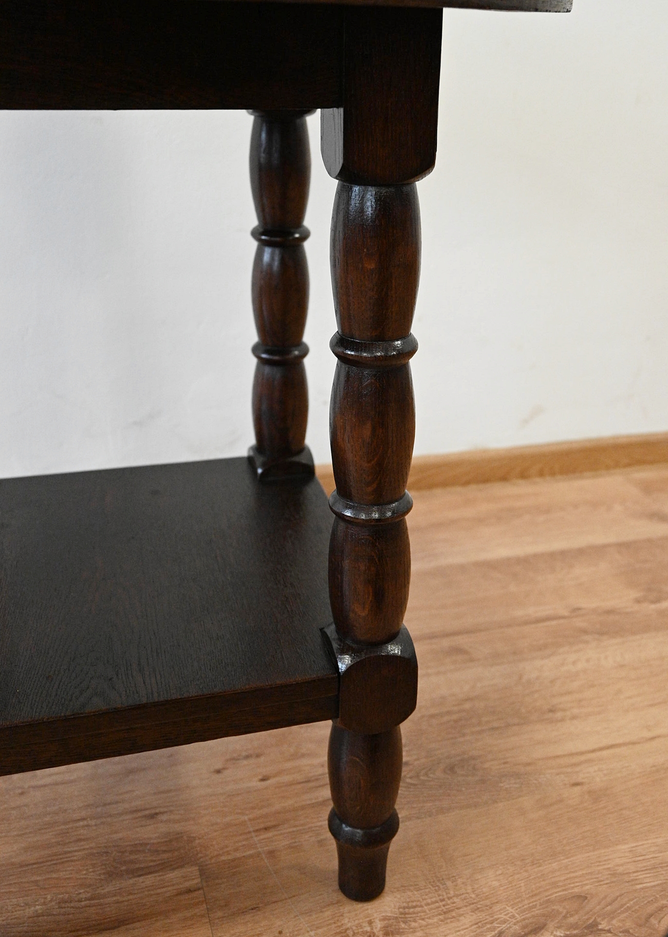 Wykończony jest politurą szelakową w półmacie.