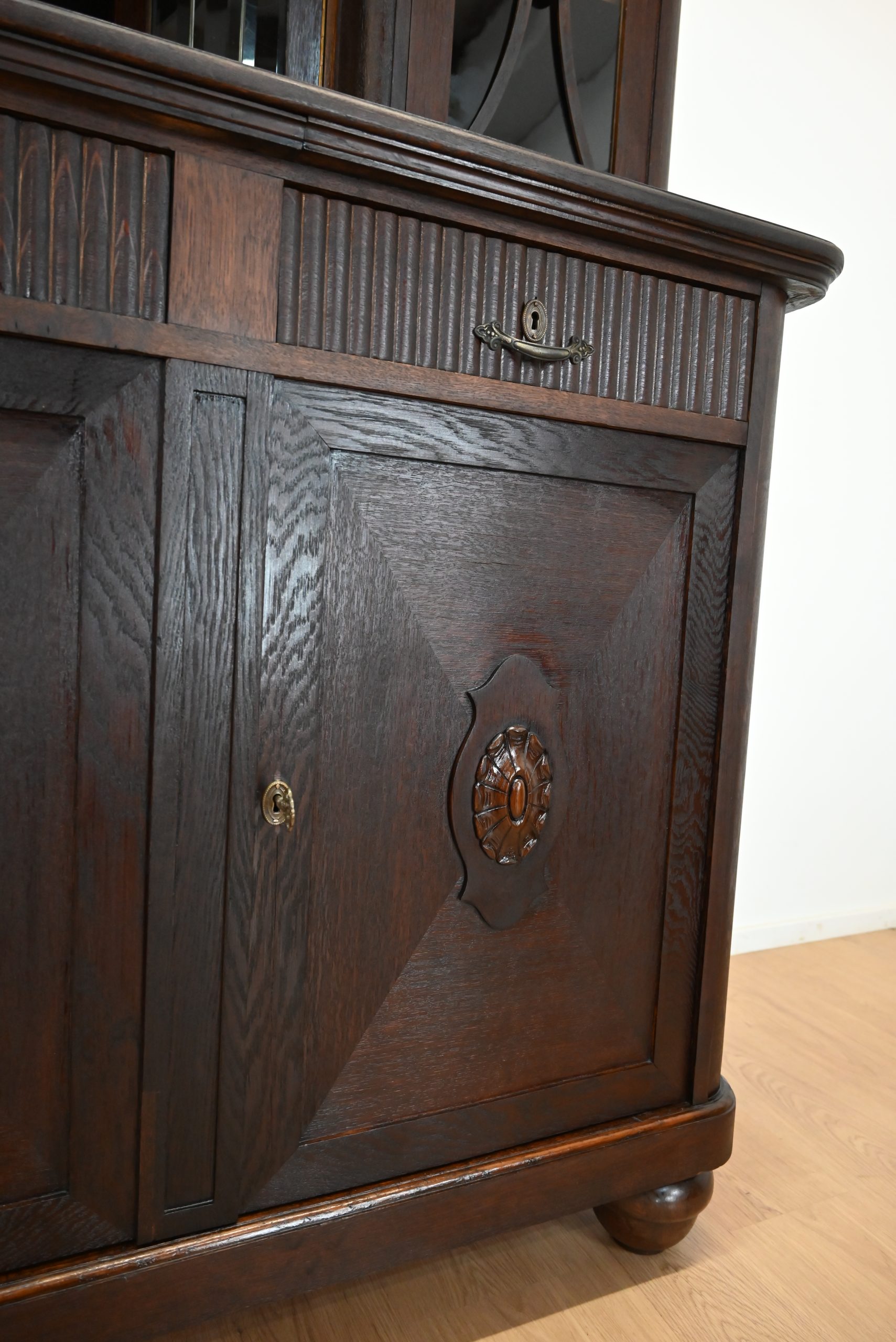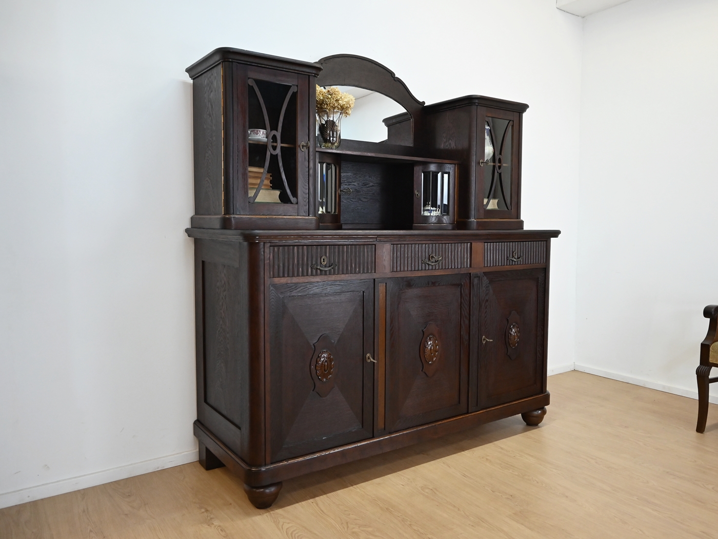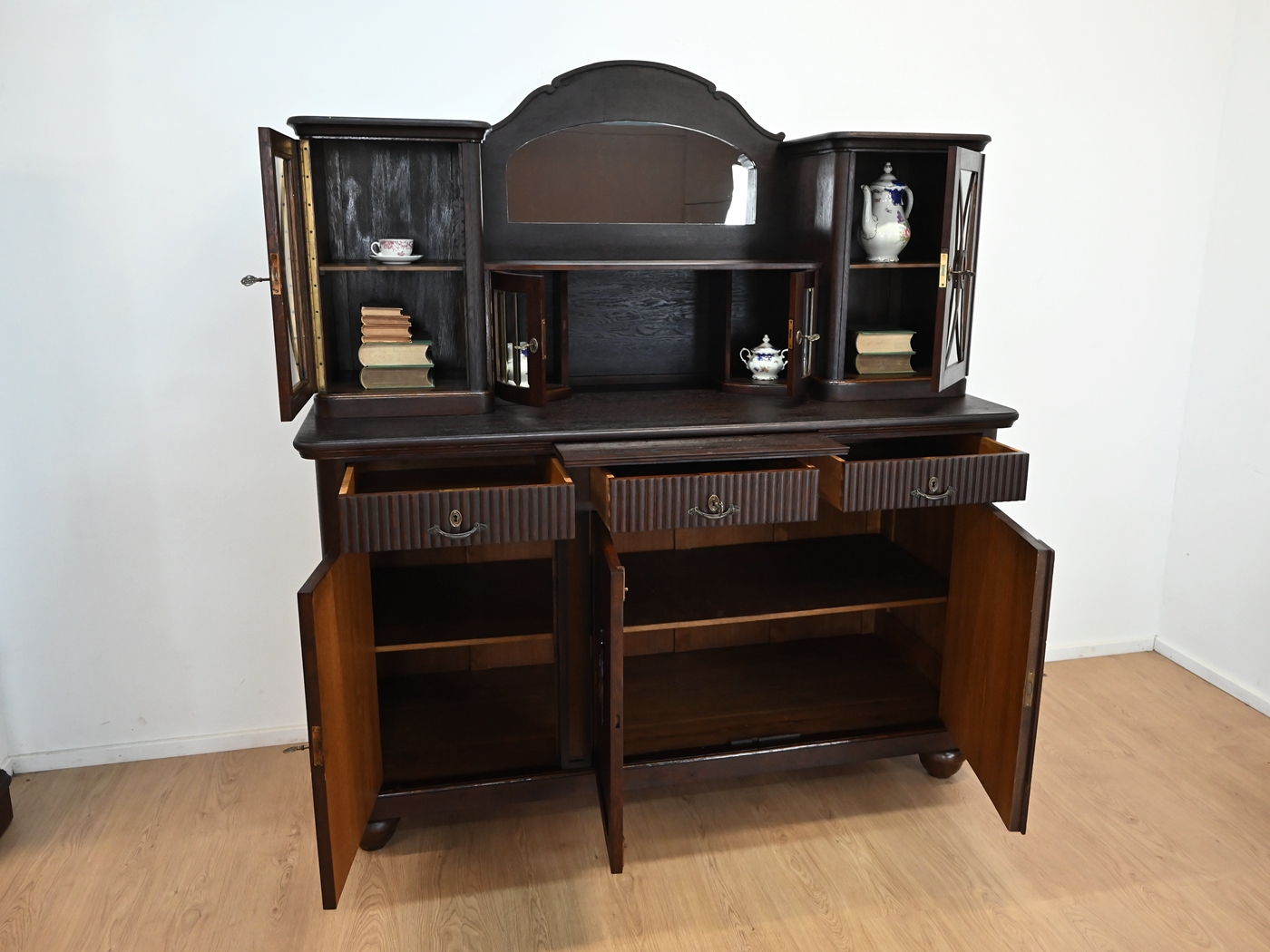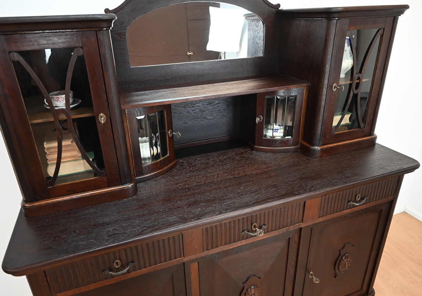 Stan bardzo dobry. Mebel przygotowany do użytkowania. Odświeżone zostały powierzchnie zewnętrzne jak i środek mebla. Mebel ma już swoje lata i ślady minionego czasu, które nie wpływają na jego odbiór estetyczny, są świadectwem autentyczności mebla. Kredens od razu można wstawić do mieszkania.