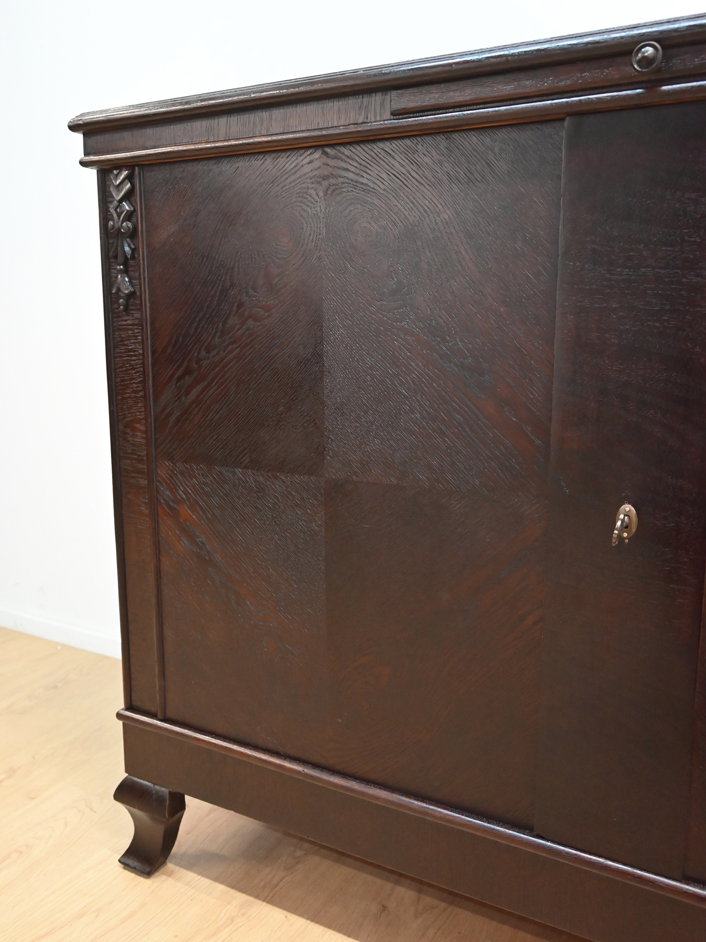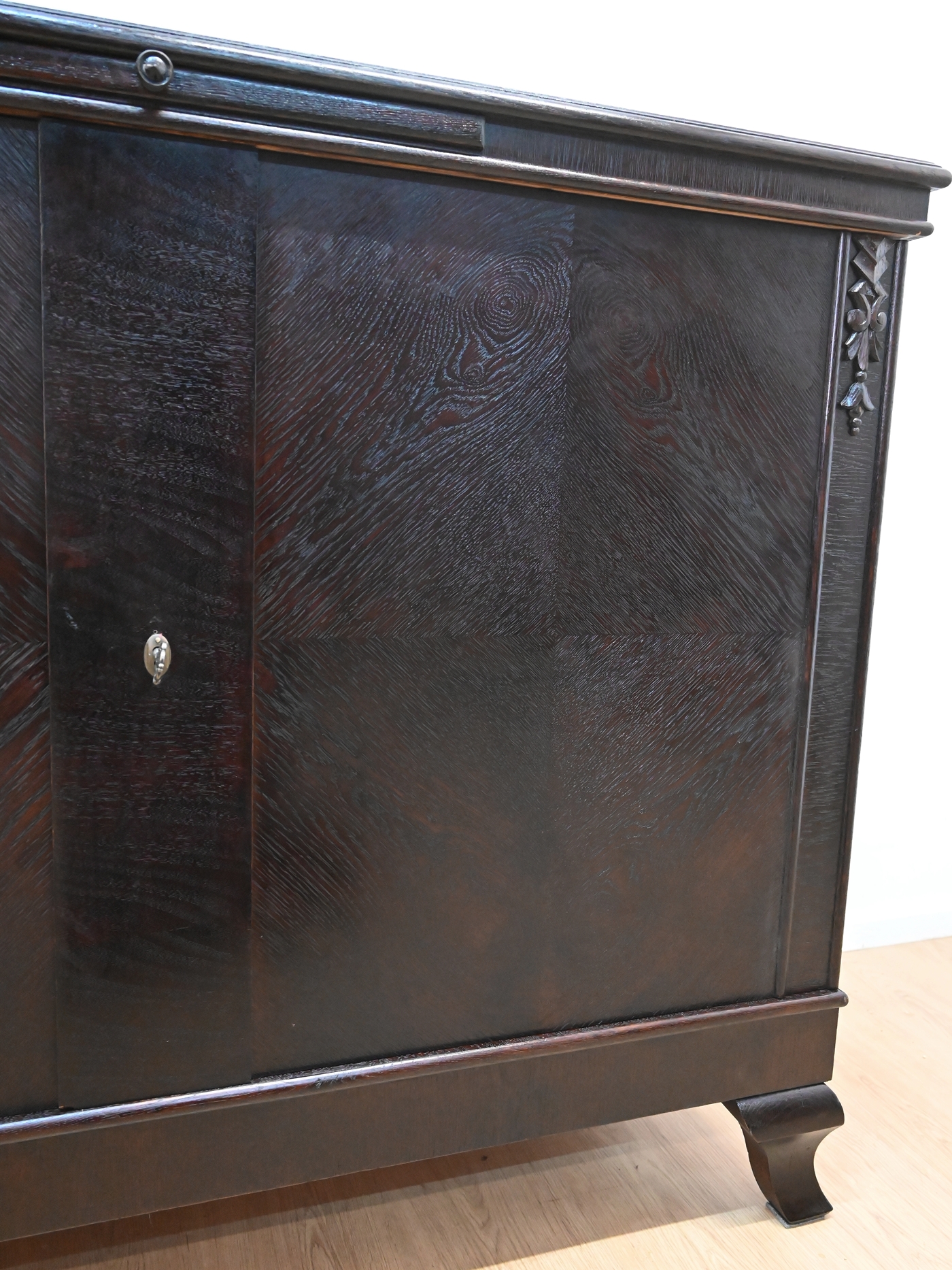 Wykończony jest politurą szelakową w półmacie.
