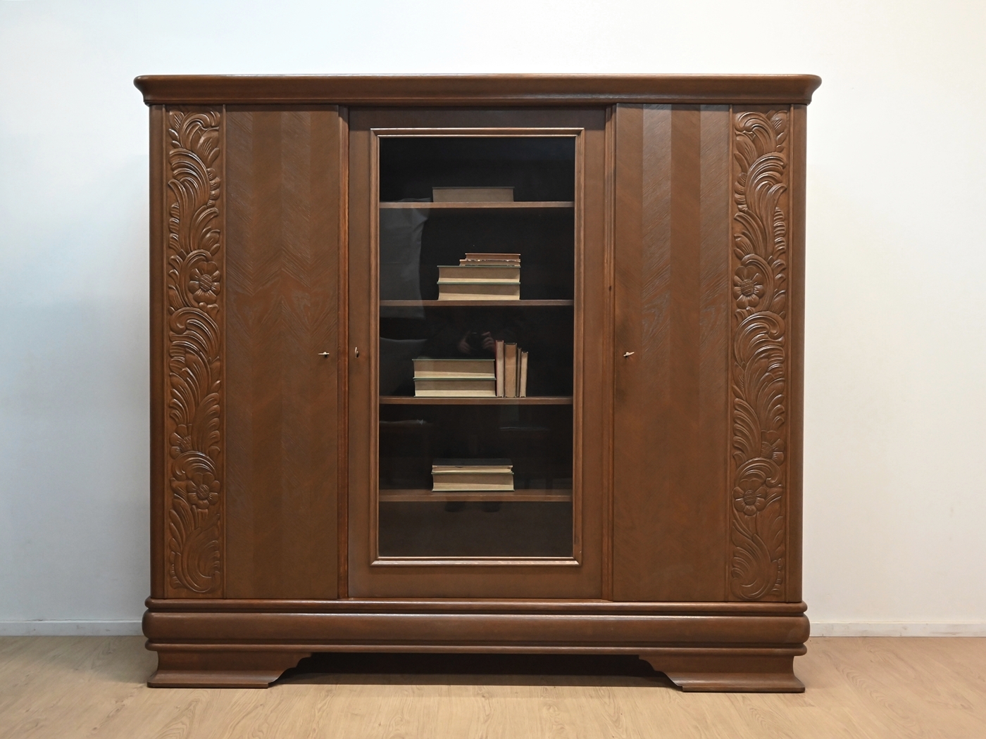Stan bardzo dobry. Mebel przygotowany do użytkowania. Odświeżone zostały powierzchnie zewnętrzne jak i środek mebla. Mebel ma już swoje lata i ślady minionego czasu, które nie wpływają na jego odbiór estetyczny, są świadectwem autentyczności mebla. Bibliotekę od razu można wstawić do mieszkania.