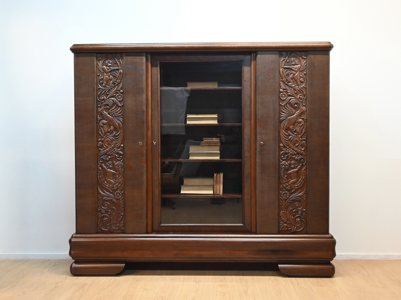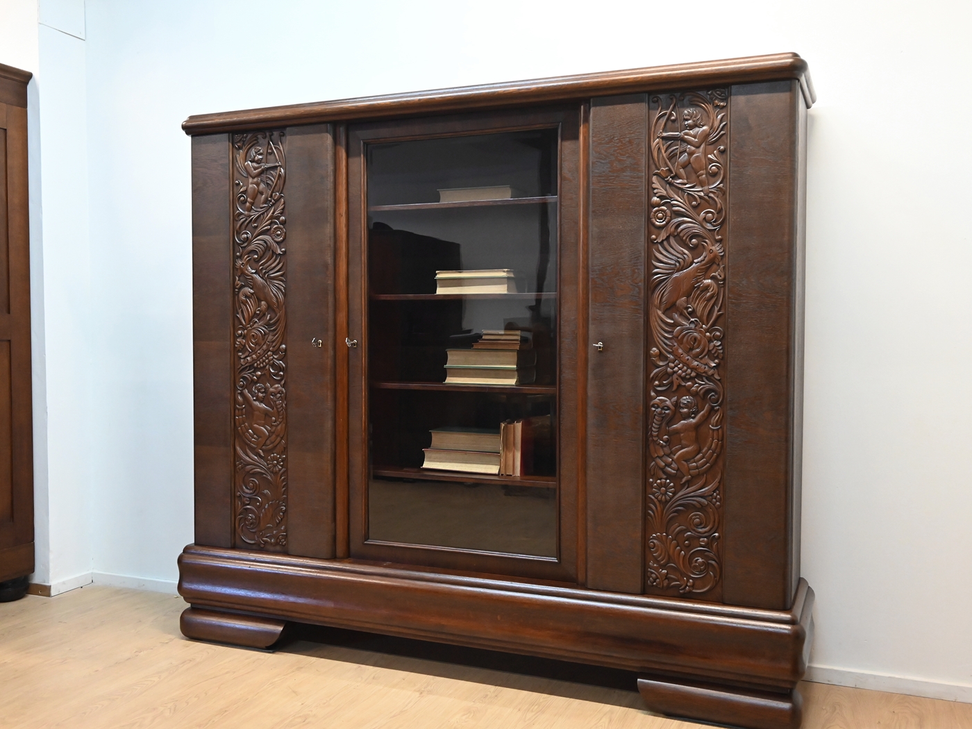 Stan bardzo dobry. Mebel przygotowany do użytkowania. Odświeżone zostały powierzchnie zewnętrzne jak i środek mebla. Mebel ma już swoje lata i ślady minionego czasu, które nie wpływają na jego odbiór estetyczny, są świadectwem autentyczności mebla. Bibliotekę od razu można wstawić do mieszkania.