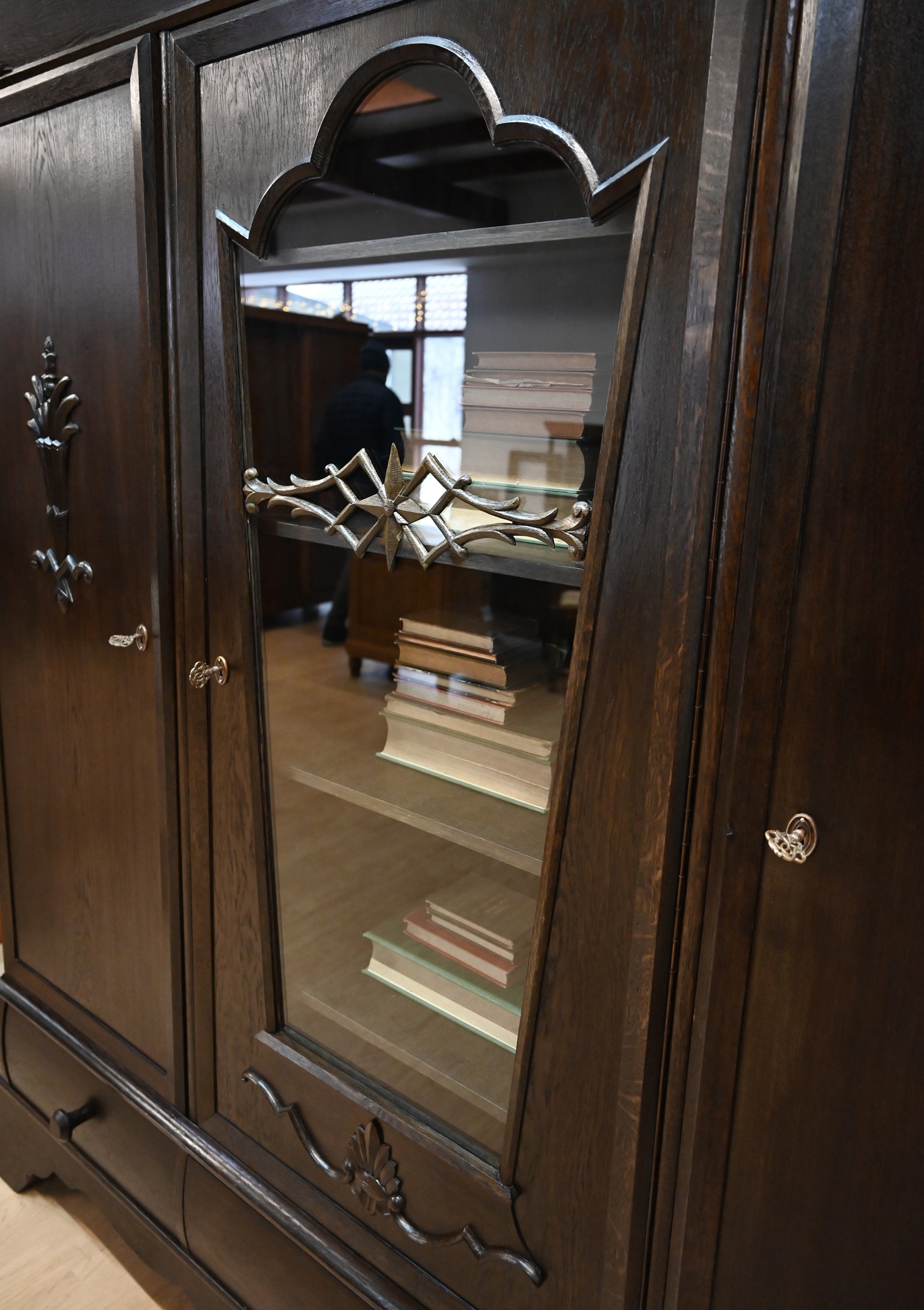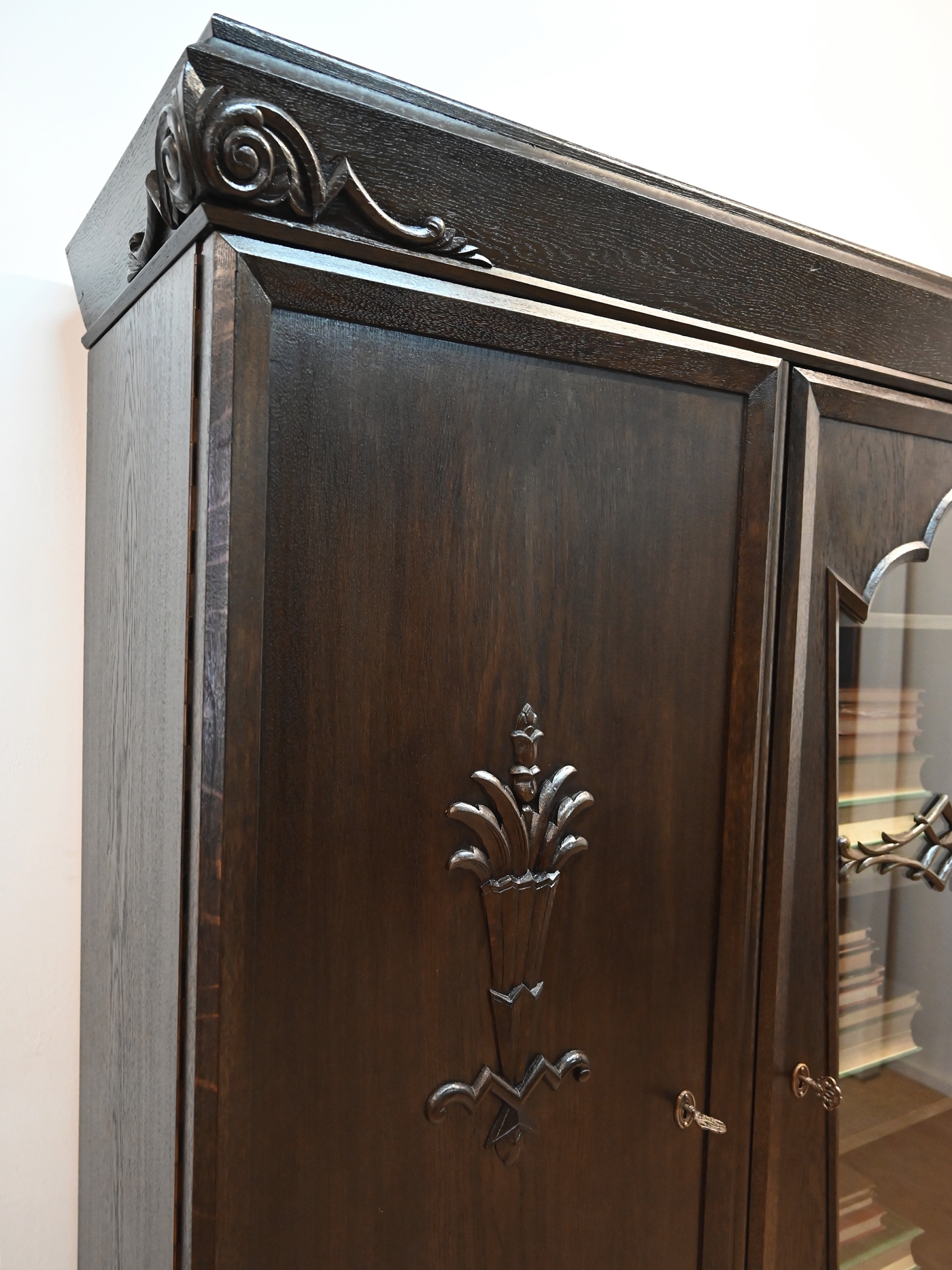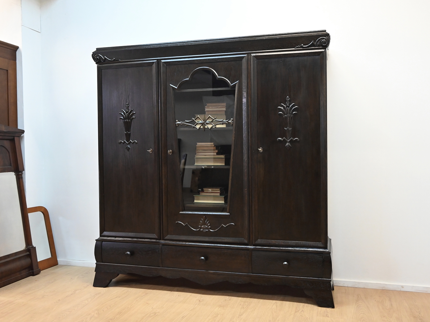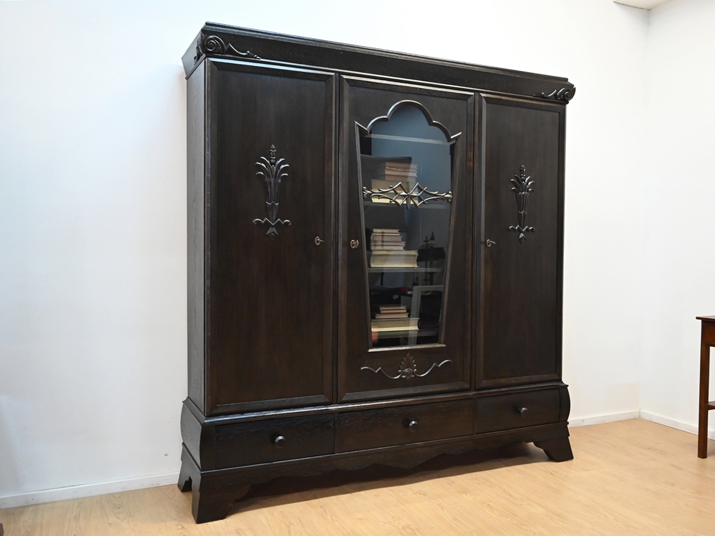 Stan bardzo dobry. Mebel przygotowany do użytkowania. Odświeżone zostały powierzchnie zewnętrzne jak i środek mebla. Mebel ma już swoje lata i ślady minionego czasu, które nie wpływają na jego odbiór estetyczny, są świadectwem autentyczności mebla. Bibliotekę od razu można wstawić do mieszkania.
