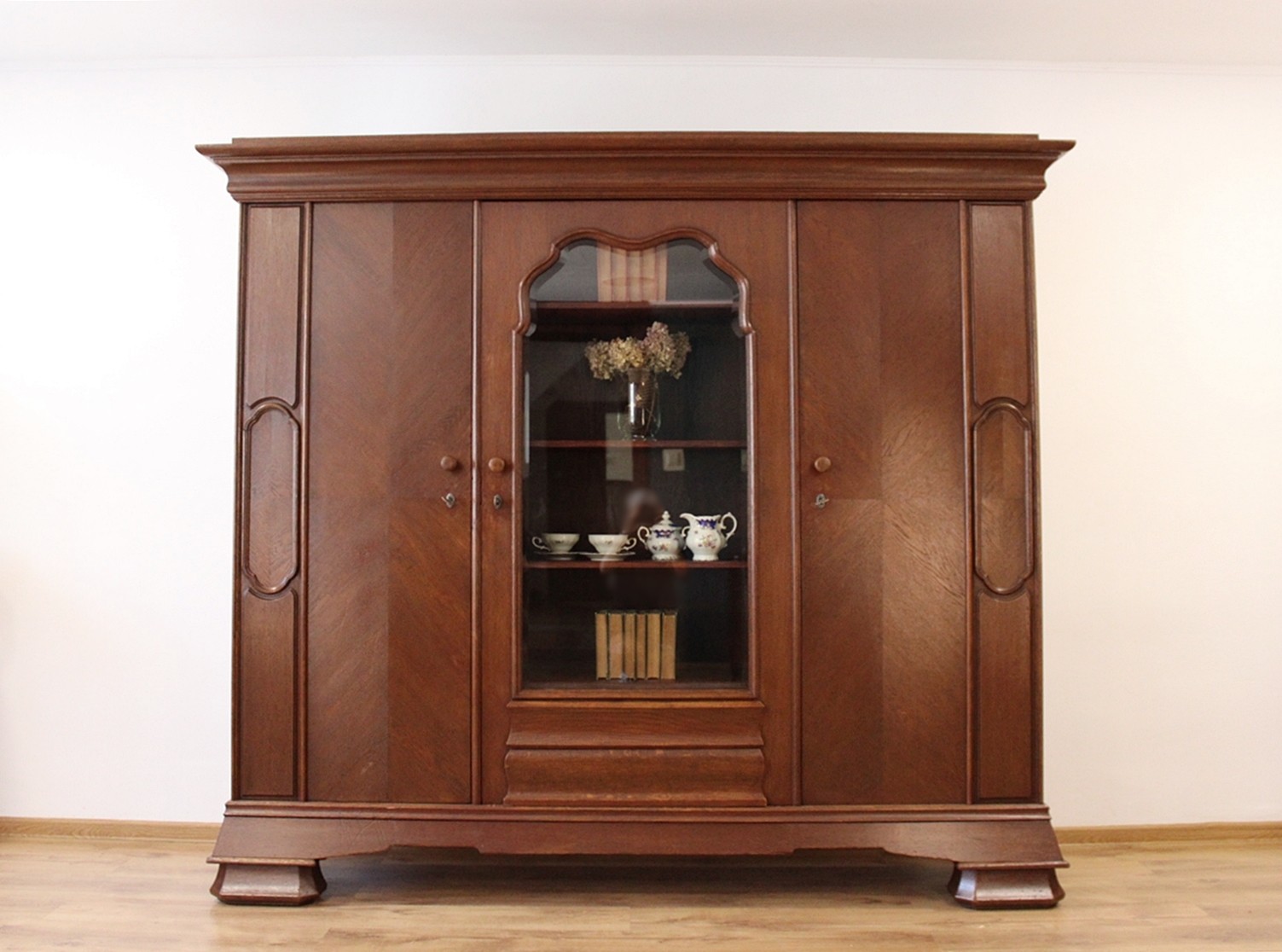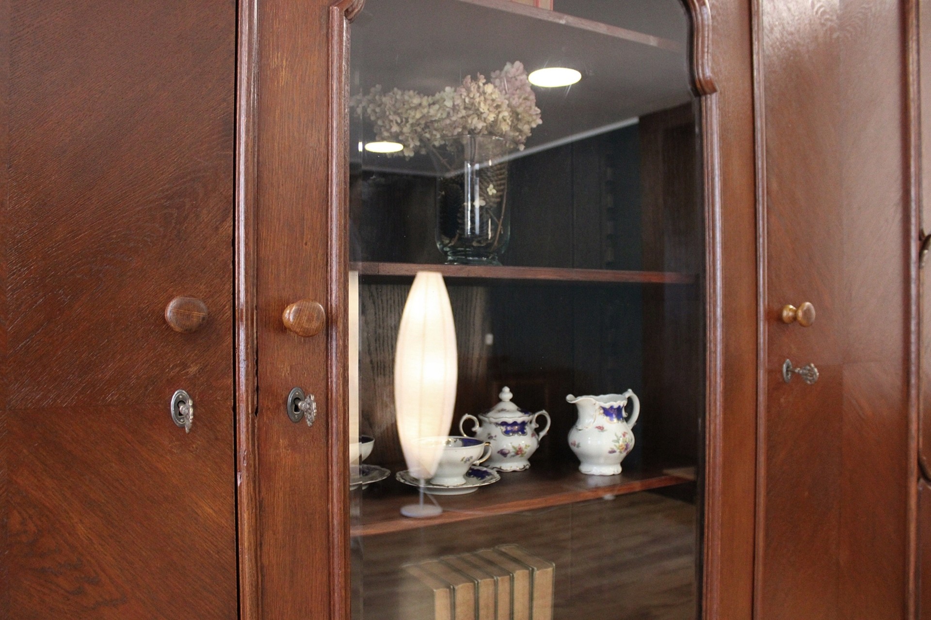 Stan dobry. Mebel przygotowany do użytkowania. Odświeżone zostały powierzchnie zewnętrzne jak i środek mebla. Mebel ma już swoje lata i ślady minionego czasu, które nie wpływają na jego odbiór estetyczny, są świadectwem autentyczności mebla. Bibliotekę od razu można wstawić do mieszkania.