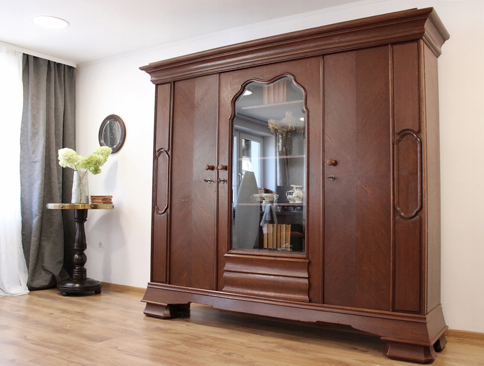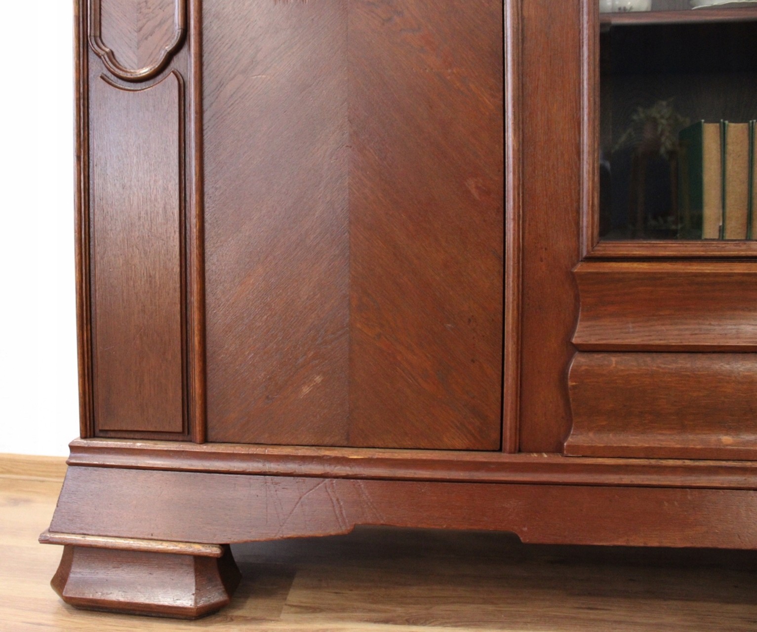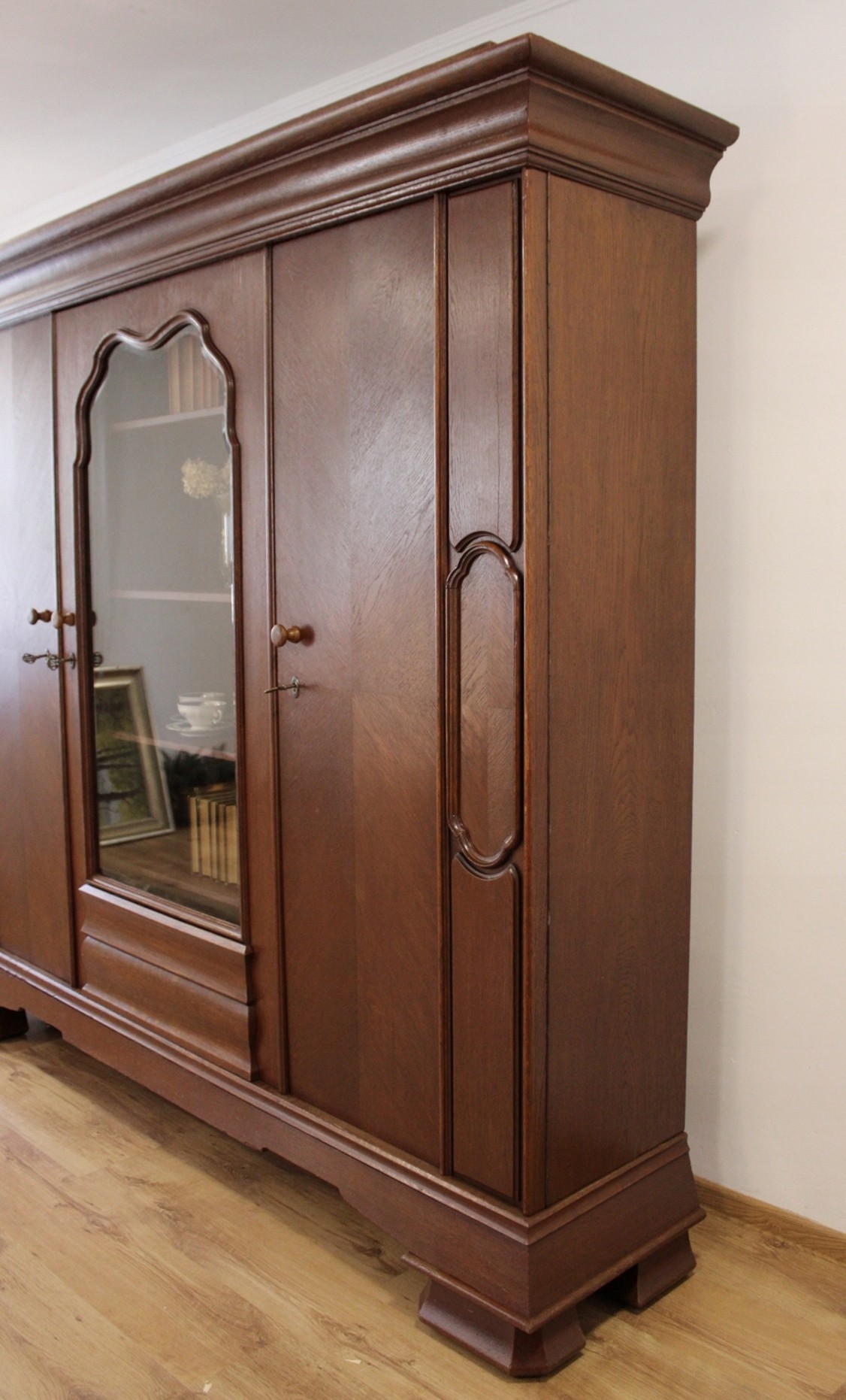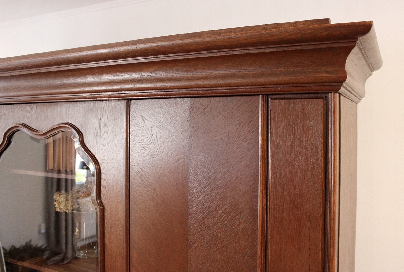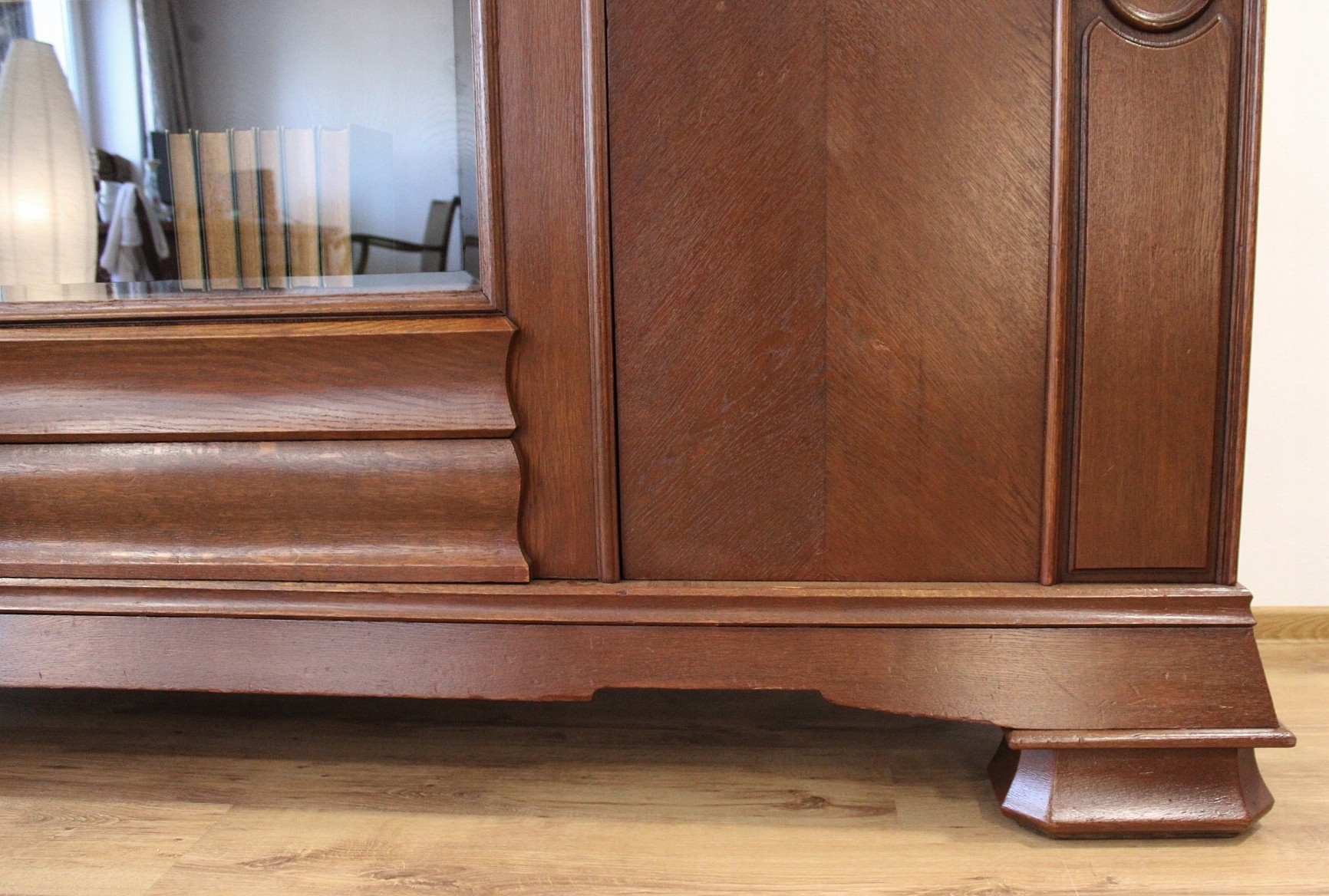 Mebel odrestaurowany przez poprzedniego właściciela lakierobejcą.