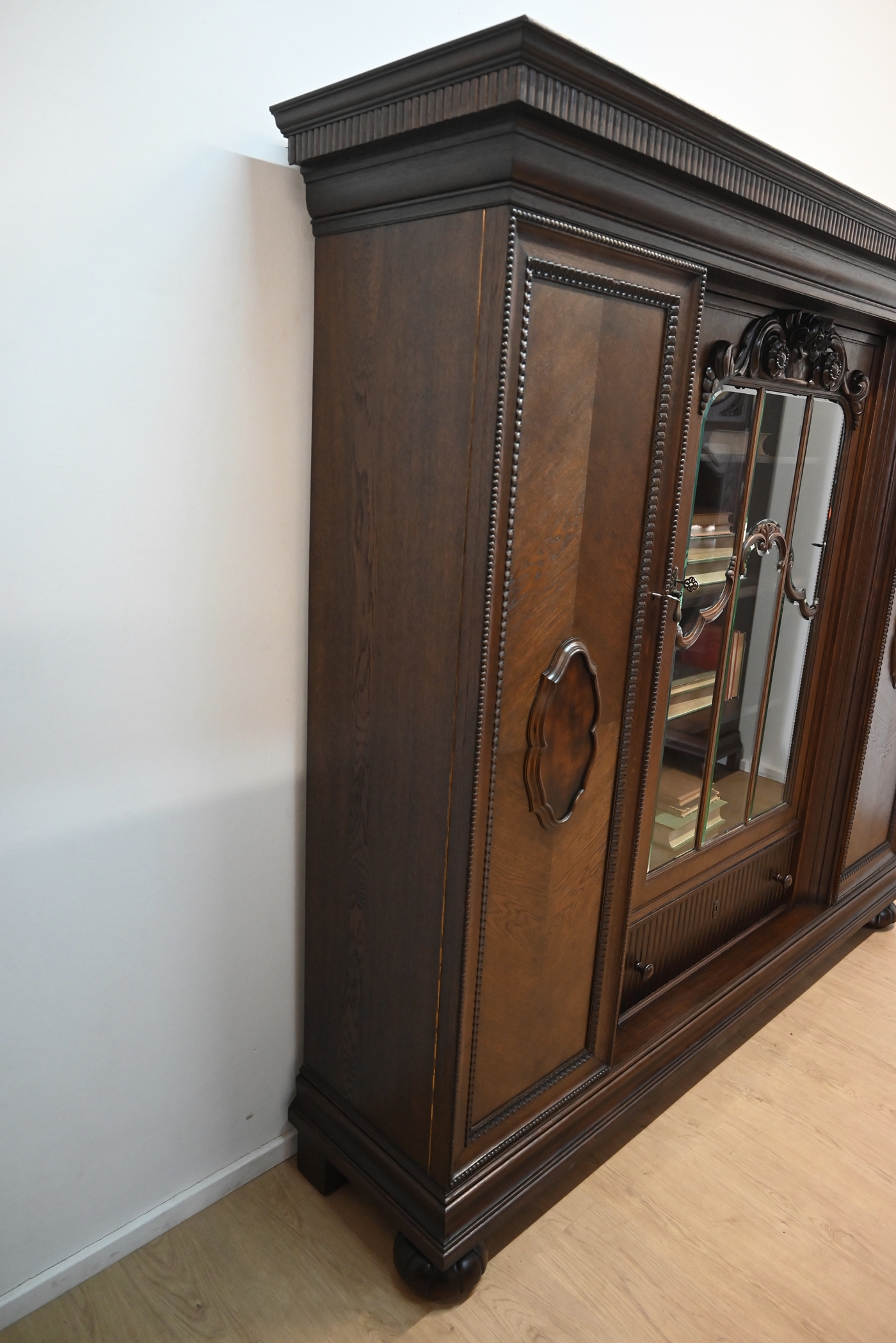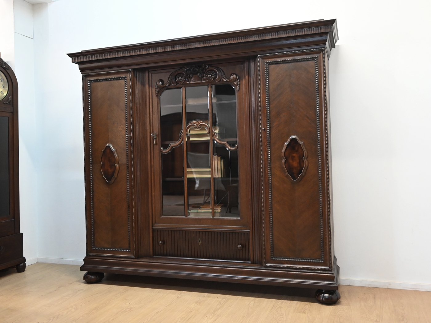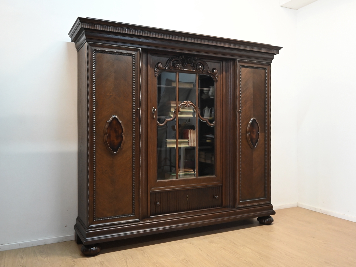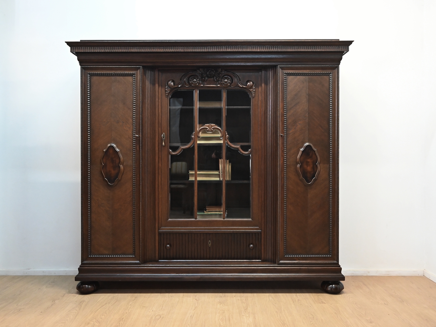 Stan bardzo dobry. Mebel przygotowany do użytkowania. Odświeżone zostały powierzchnie zewnętrzne jak i środek mebla. Mebel ma już swoje lata i ślady minionego czasu, które nie wpływają na jego odbiór estetyczny, są świadectwem autentyczności mebla. Bibliotekę od razu można wstawić do mieszkania.