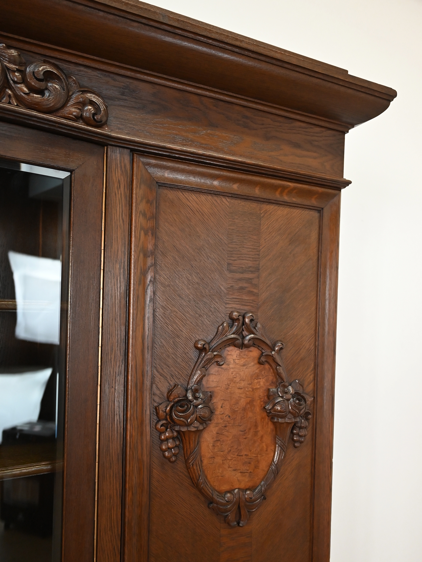 Wykończony jest politurą szelakową w półmacie.