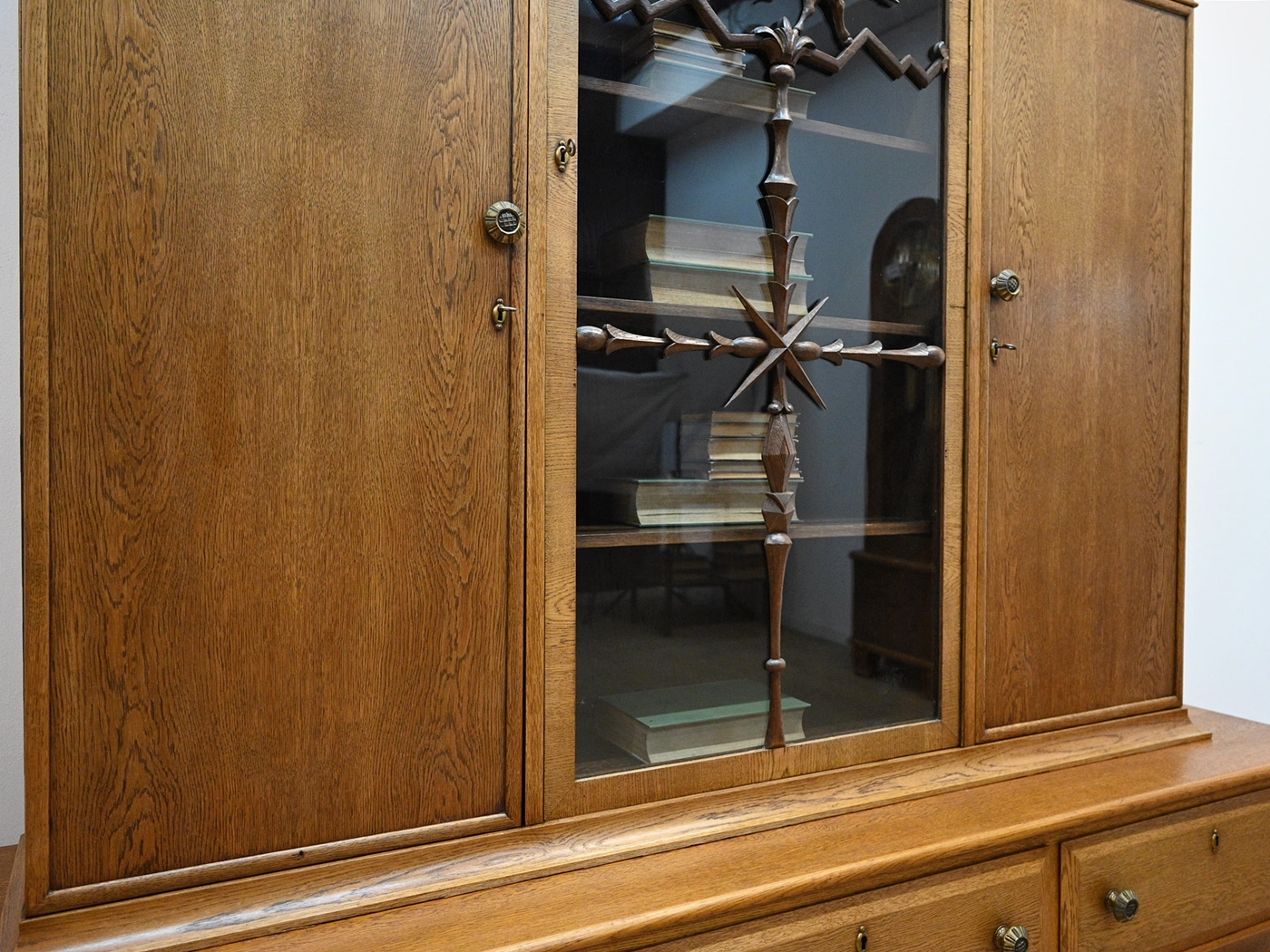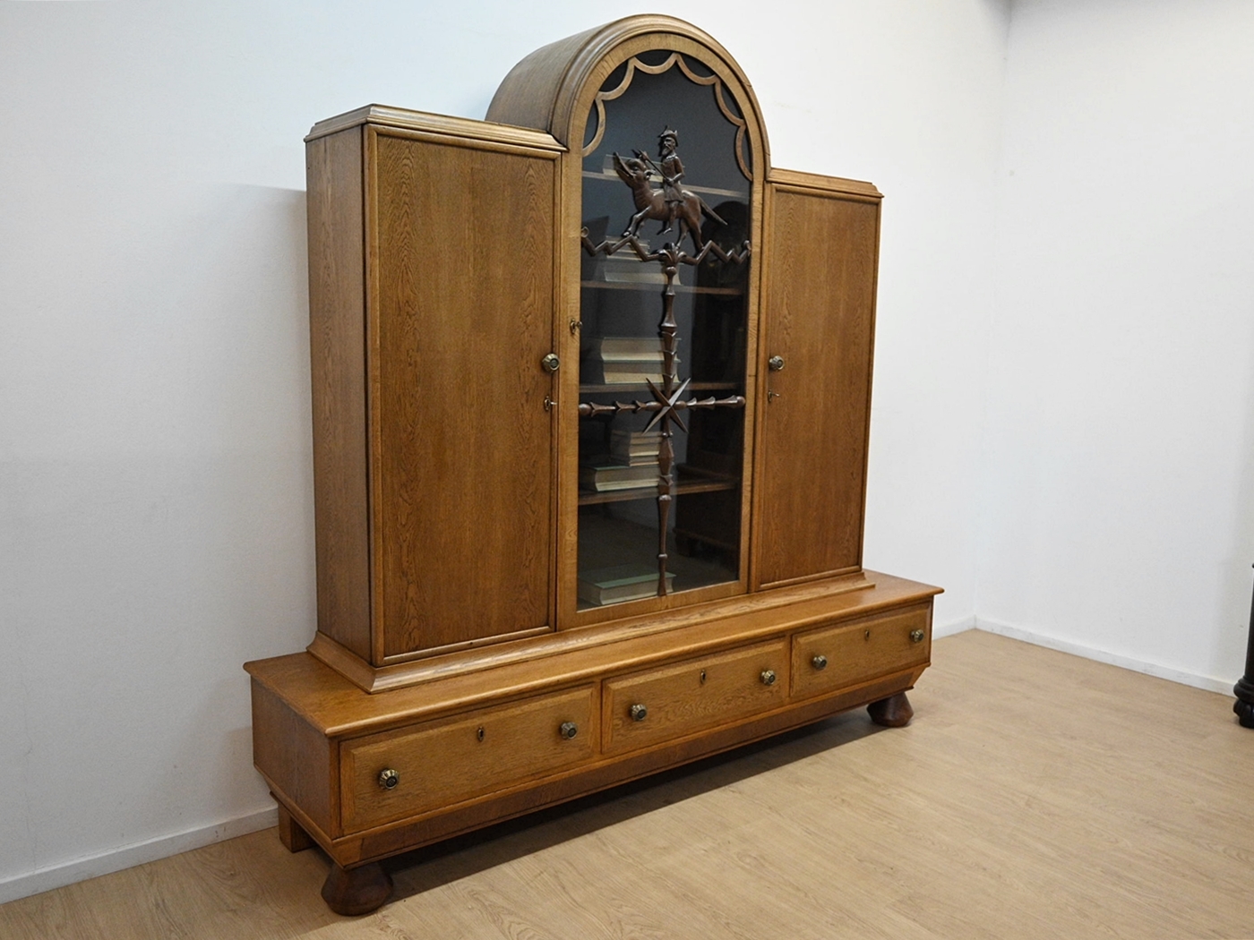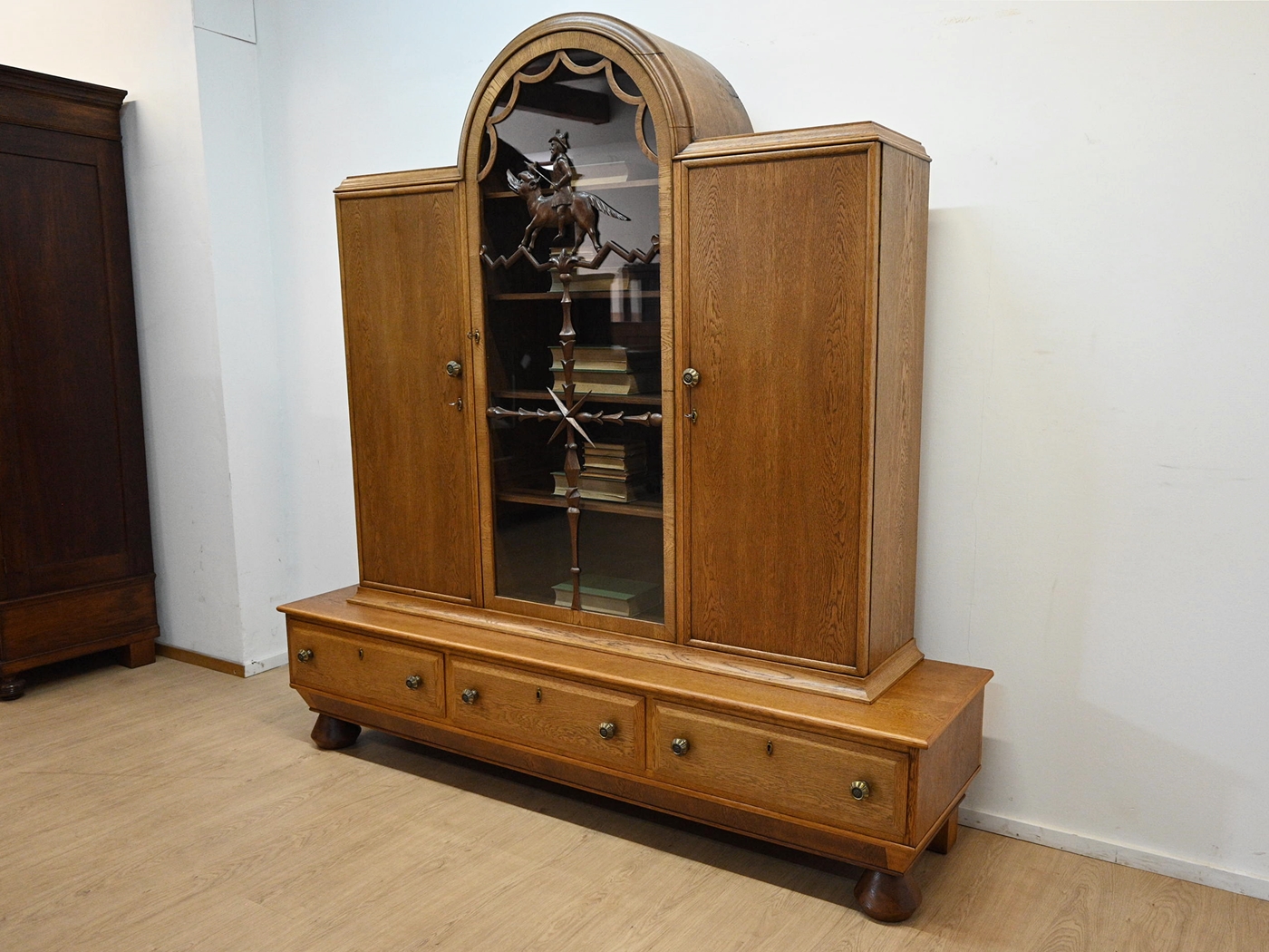 Stan dobry. Mebel przygotowany do użytkowania. Odświeżone zostały powierzchnie zewnętrzne jak i środek mebla. Mebel ma już swoje lata i ślady minionego czasu, które nie wpływają na jego odbiór estetyczny, są świadectwem autentyczności mebla. Bibliotekę od razu można wstawić do mieszkania.
