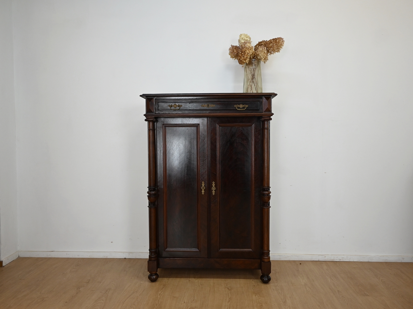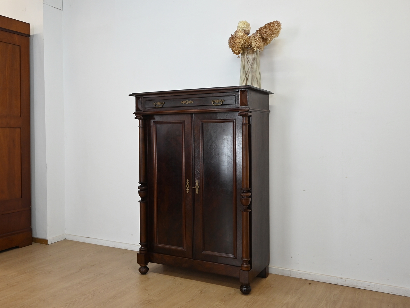 Zamek przy drzwiczkach sprawny, jeden kluczyk w komplecie. Okucia oryginalne.