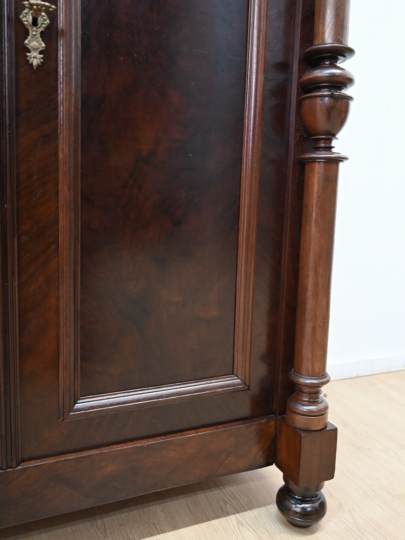 Wykończony jest politurą szelakową w półmacie.