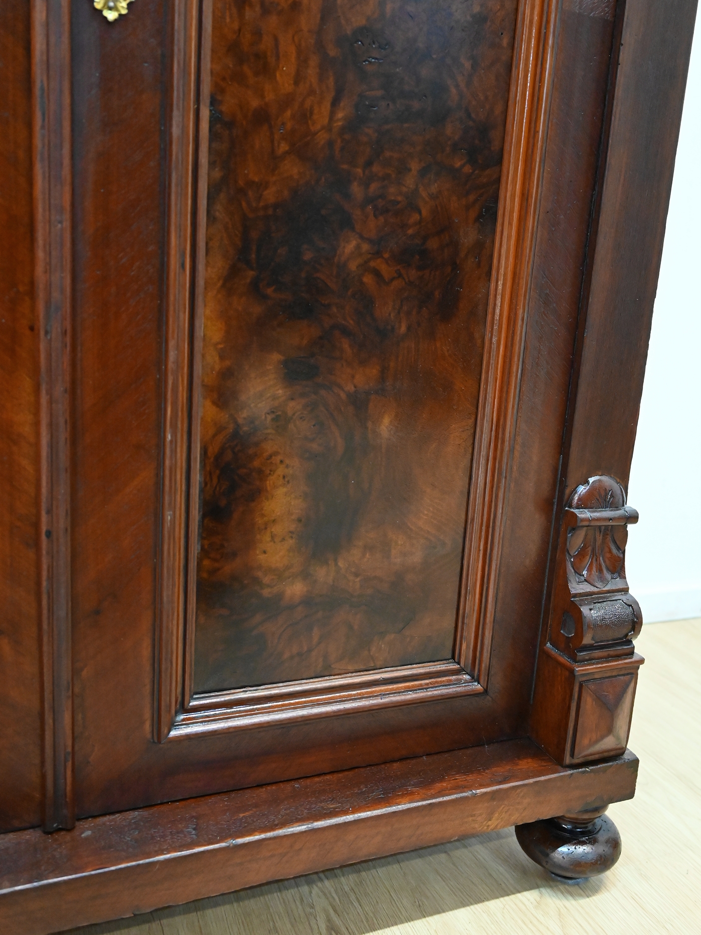 Wykończony jest politurą szelakową w półmacie.