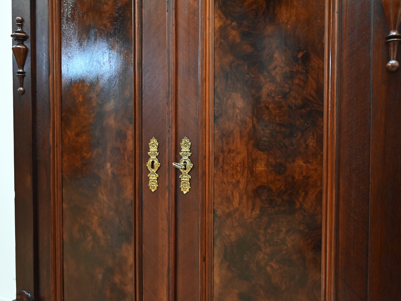 Zamek przy drzwiczkach sprawny, jeden kluczyk w komplecie. Okucia oryginalne.