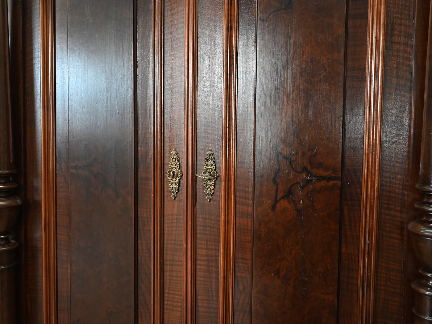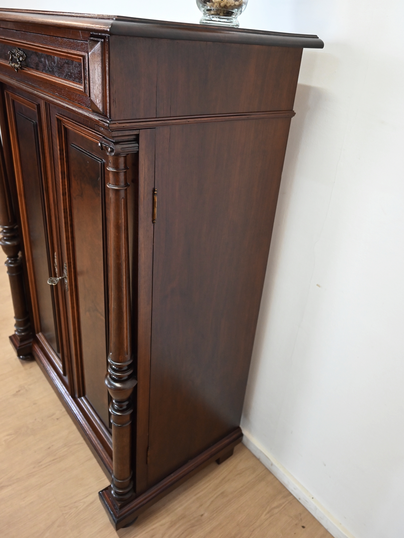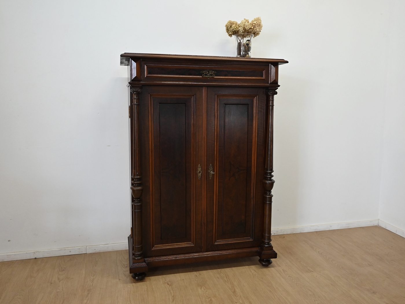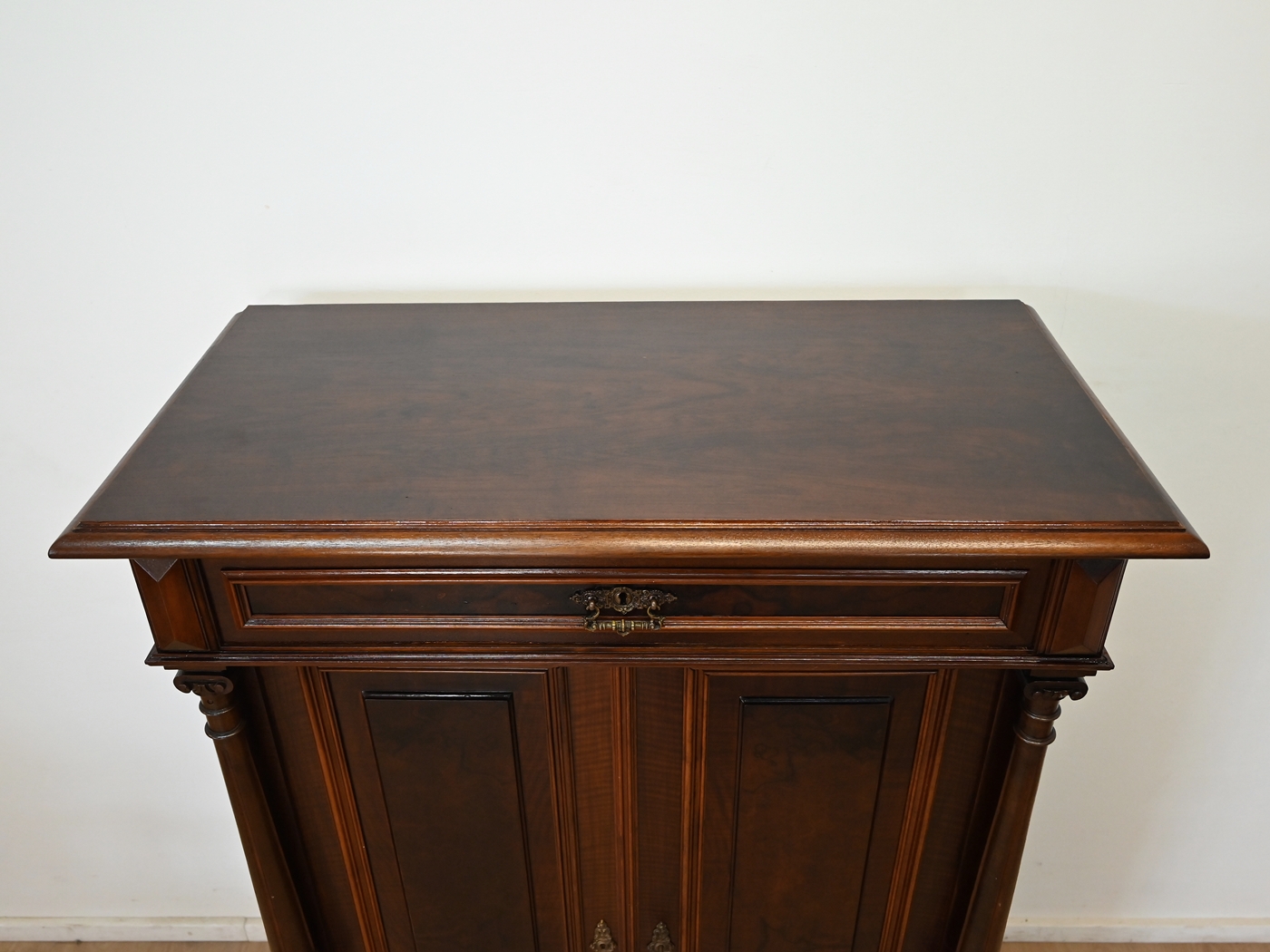 Wykonany jest w całości z drewna, fornirowany orzechem.