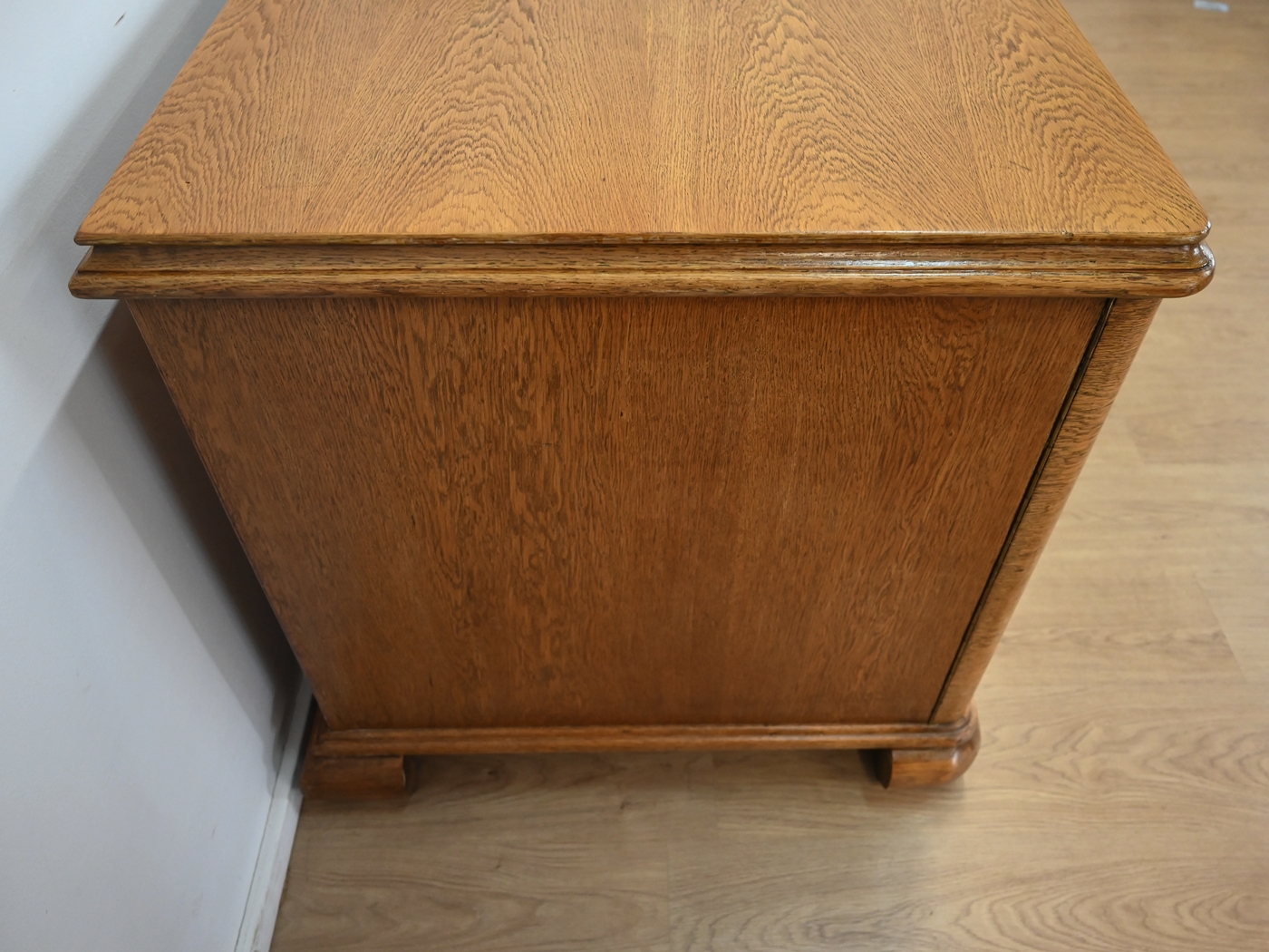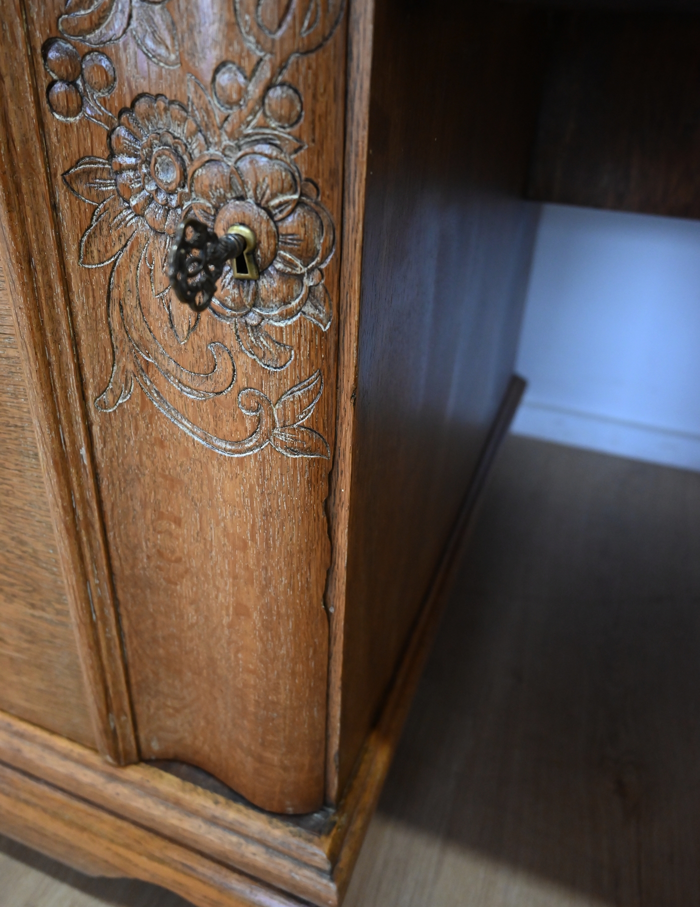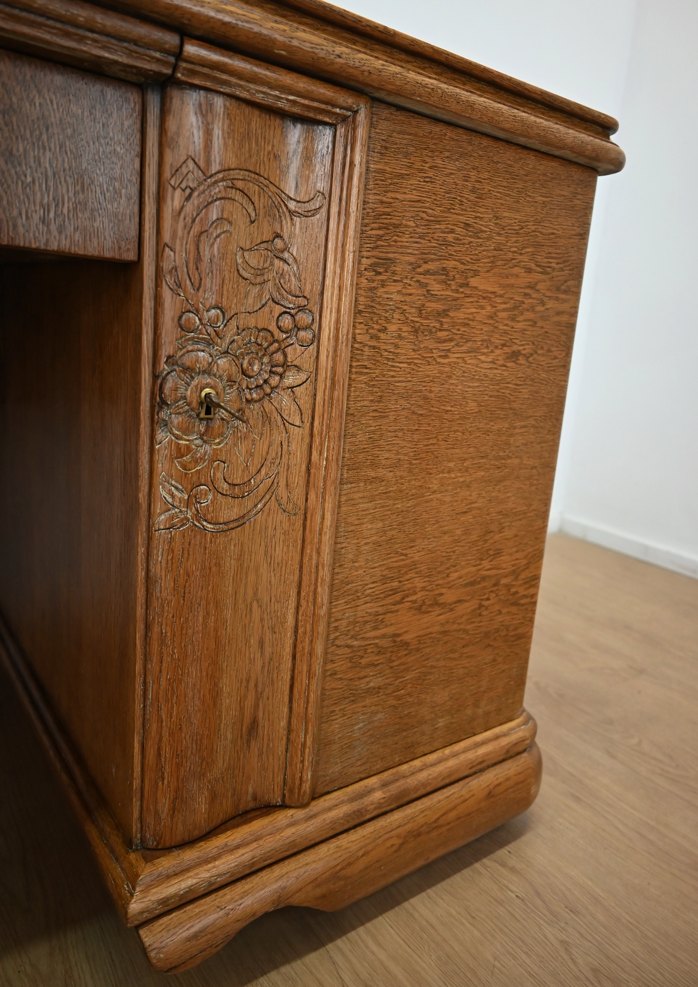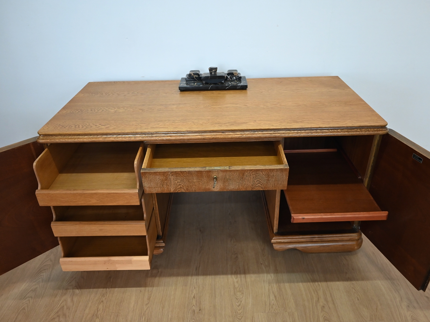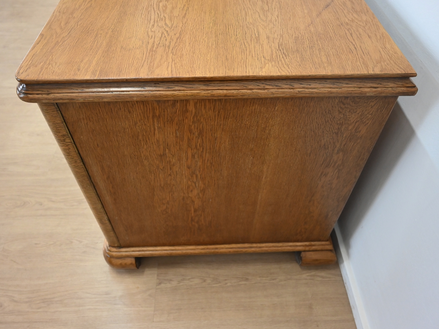 Stan dobry, mebel ma już swoje lata i widoczne ślady minionego czasu. Mebel przygotowany do użytkowania, można go wstawić do mieszkania. Drobne skazy, nierówności w kolorze.