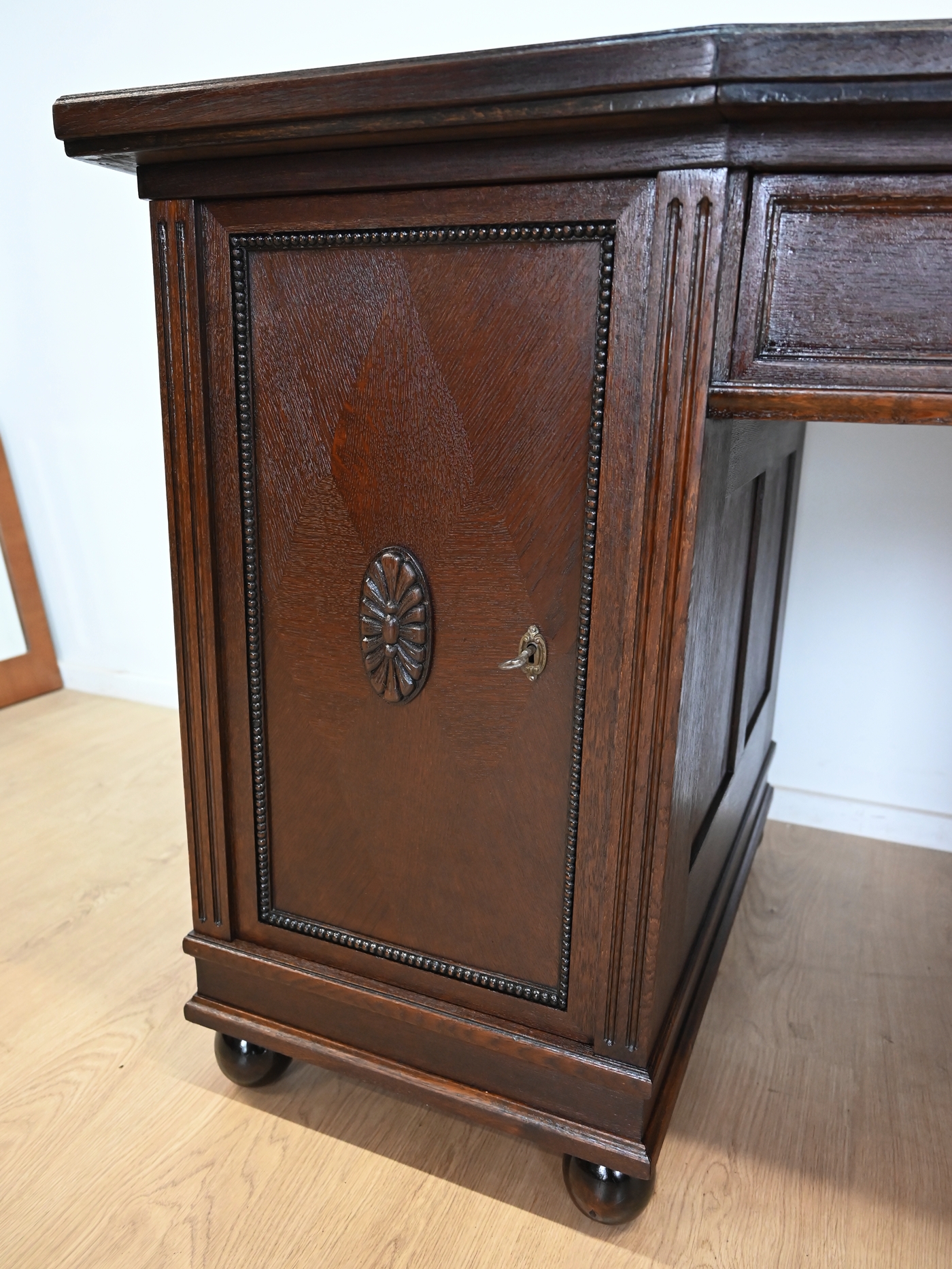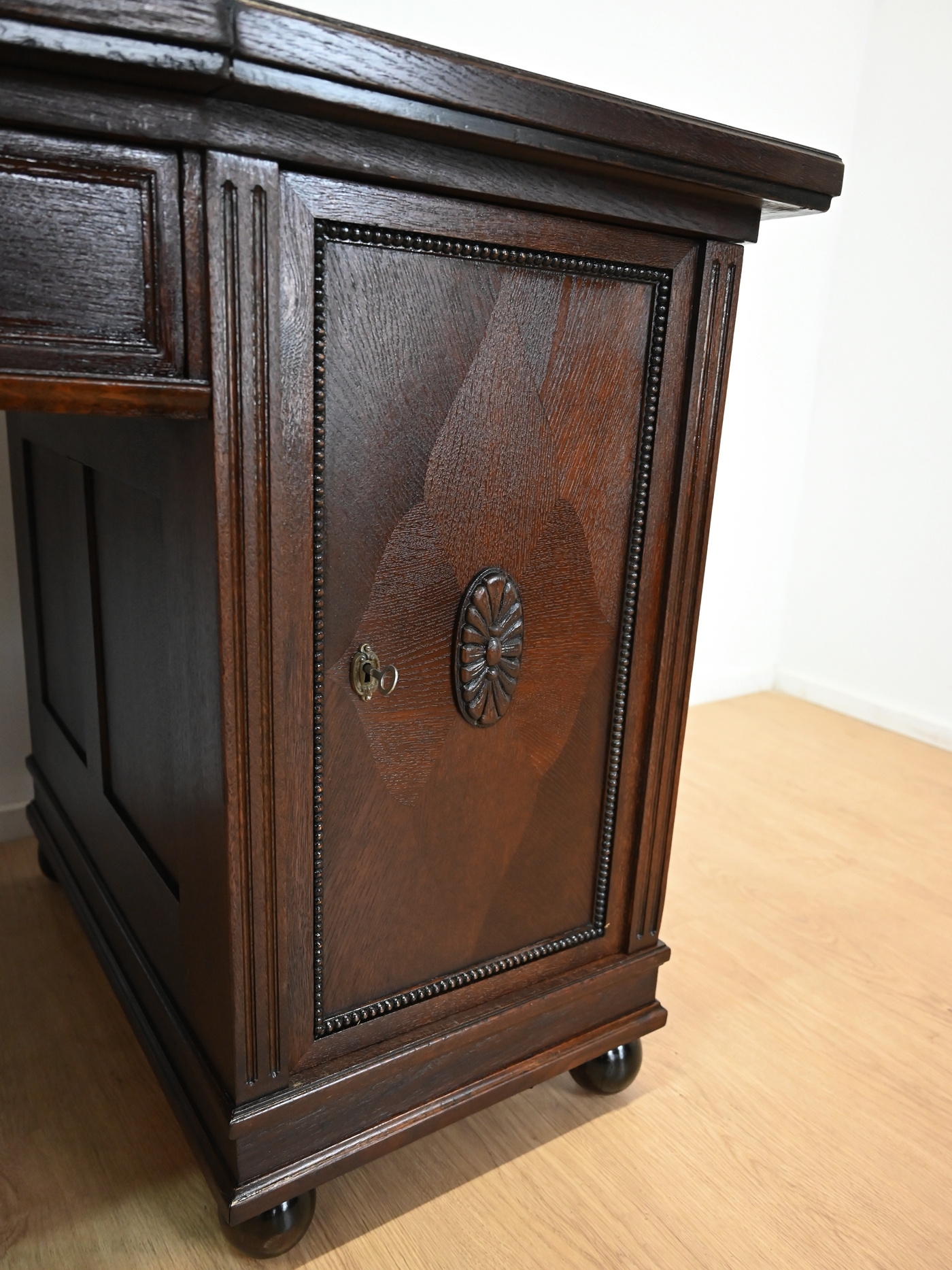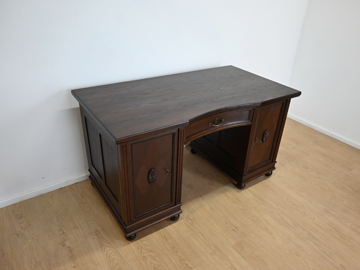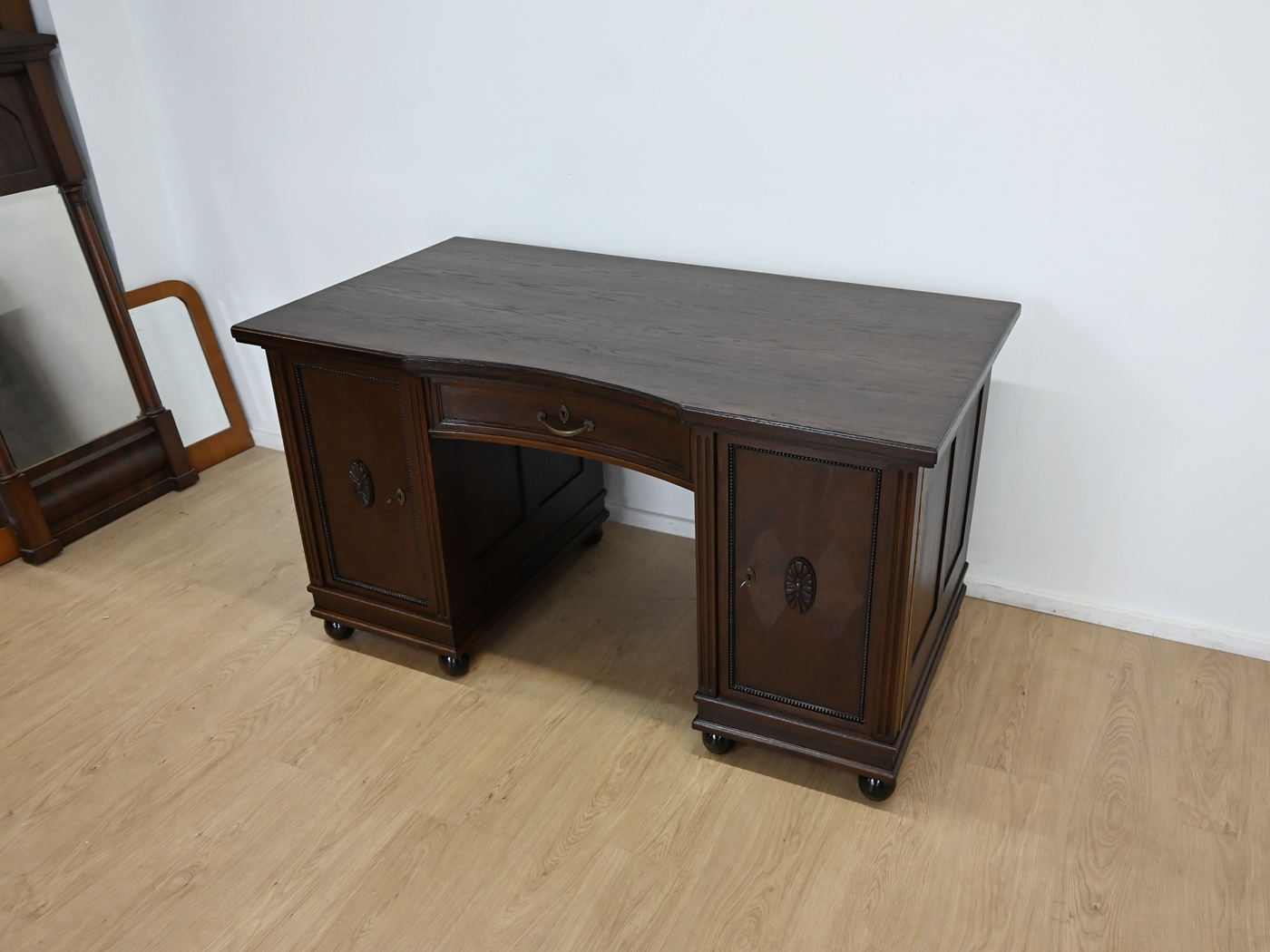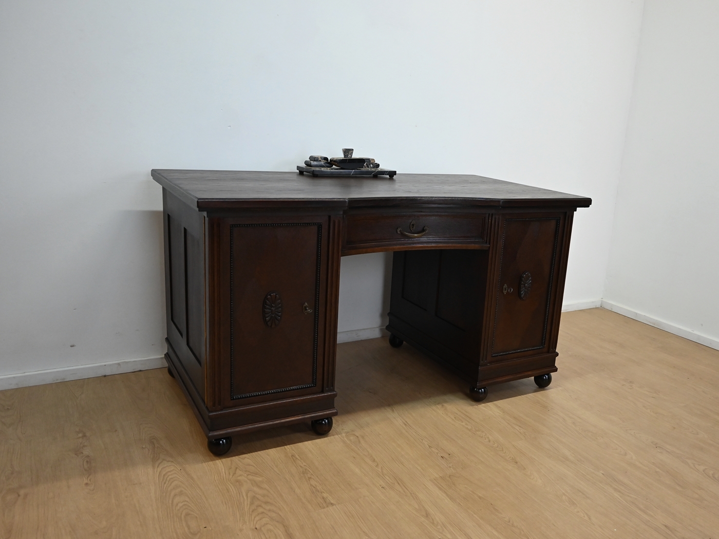 Stan bardzo dobry. Mebel przygotowany do użytkowania. Odświeżone zostały powierzchnie zewnętrzne jak i środek mebla. Mebel ma już swoje lata i ślady minionego czasu, które nie wpływają na jego odbiór estetyczny, są świadectwem autentyczności mebla. Biurko od razu można wstawić do mieszkania.