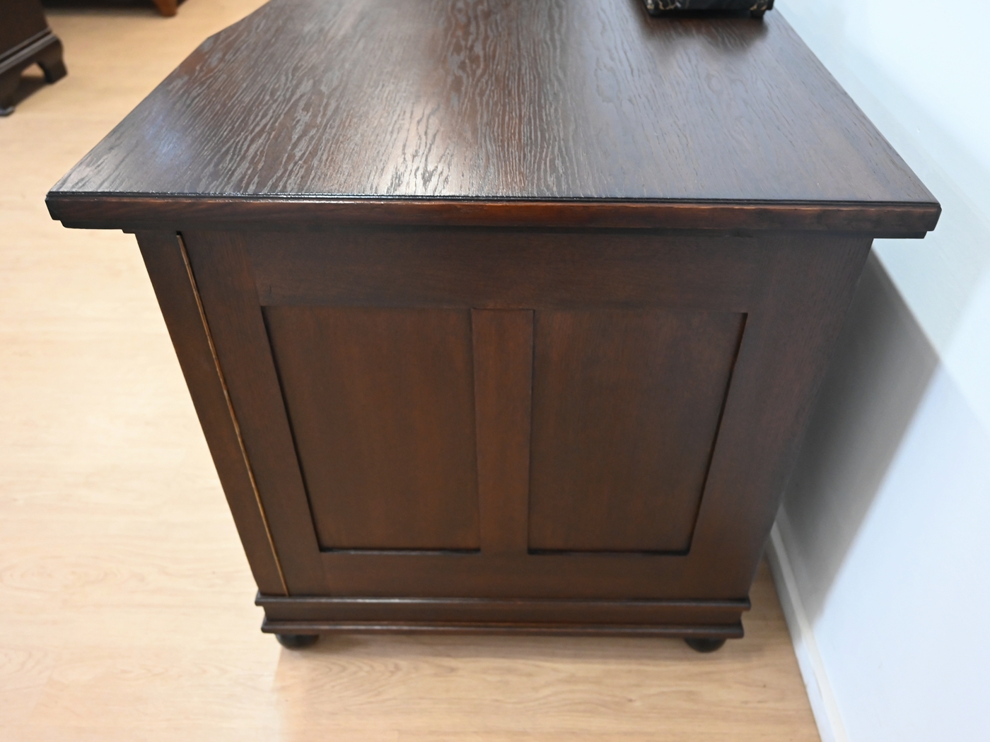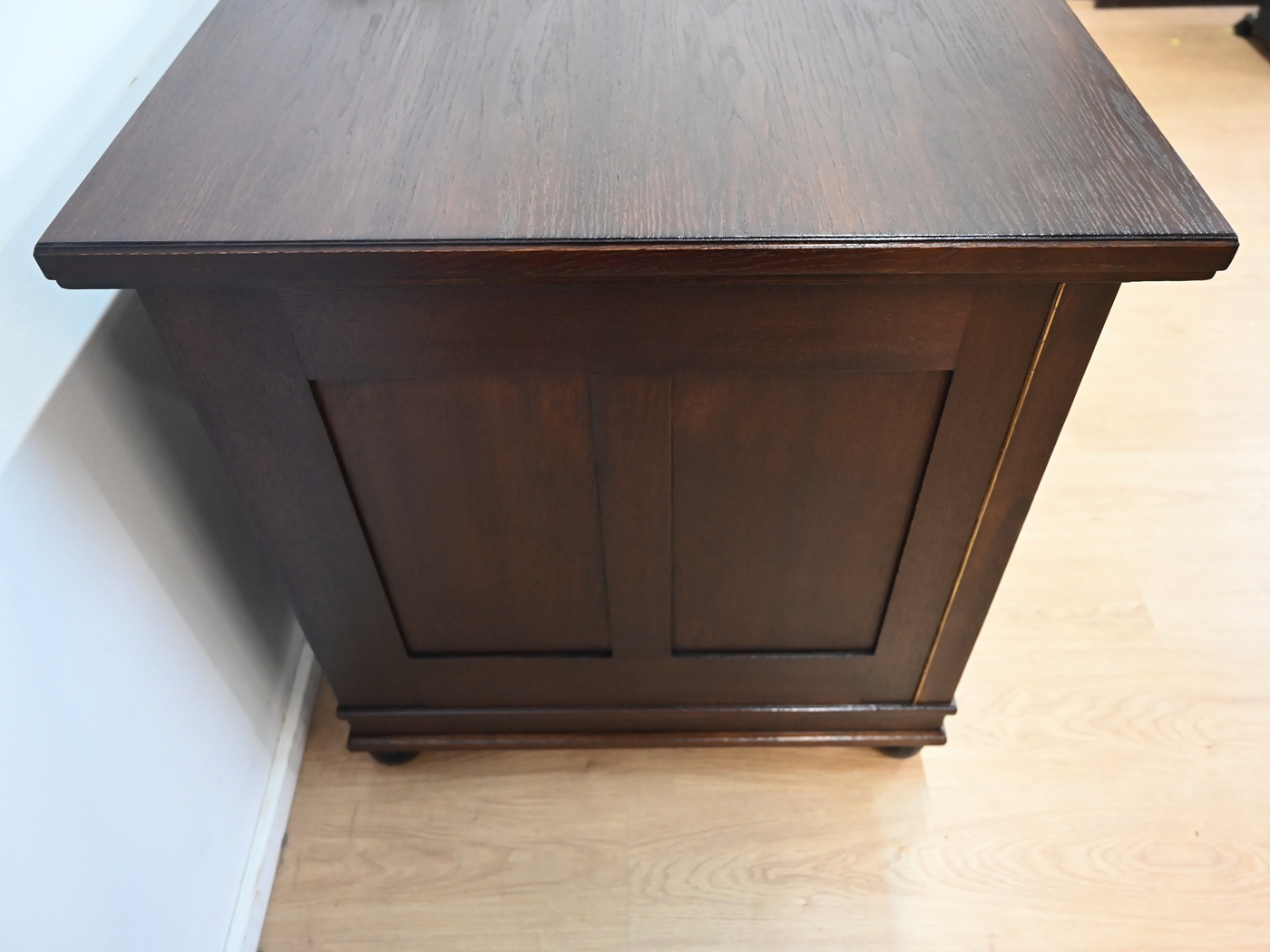 Wykonany jest w całości z drewna, fornirowany dębem.