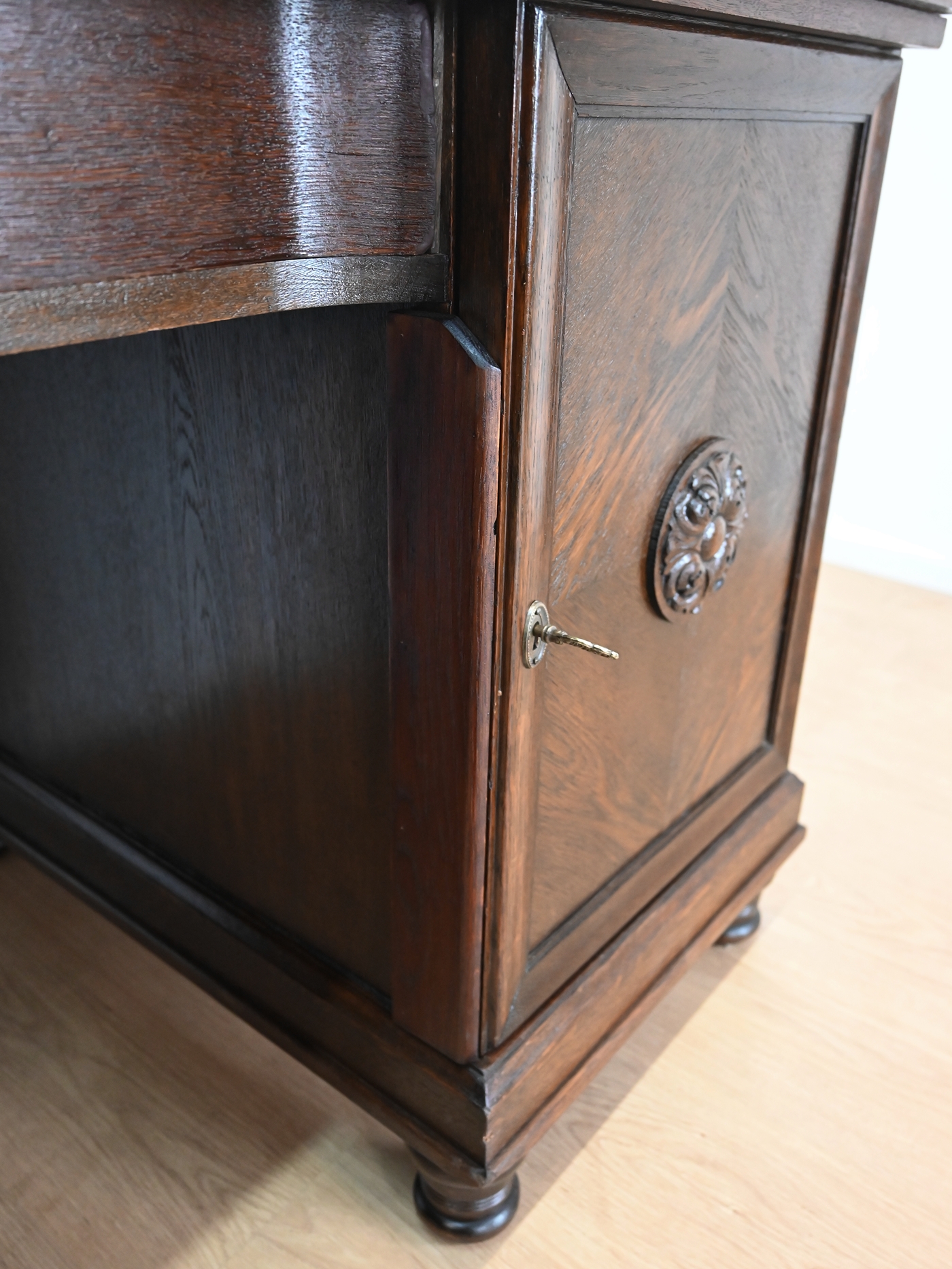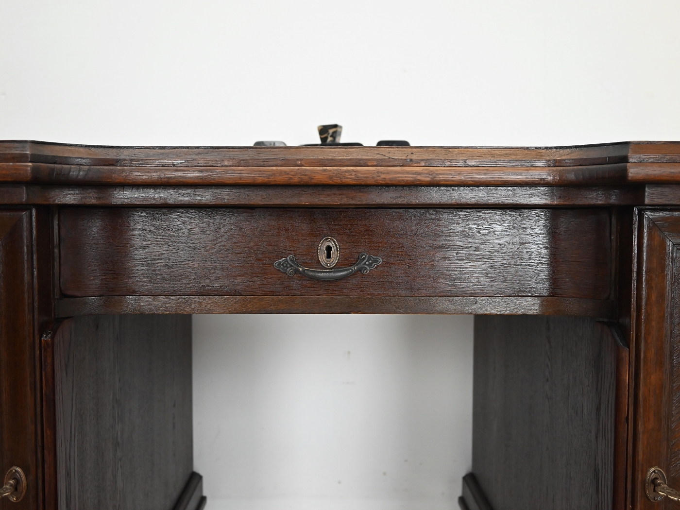 Zamki przy drzwiczkach sprawne, dwa oryginalne kluczyki w komplecie. Okucia – mosiężne repliki.