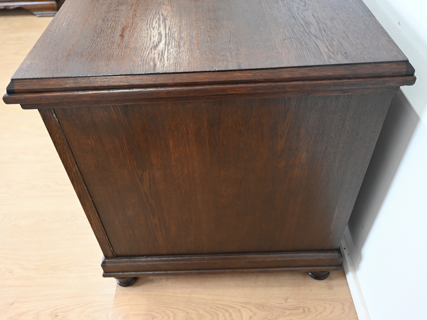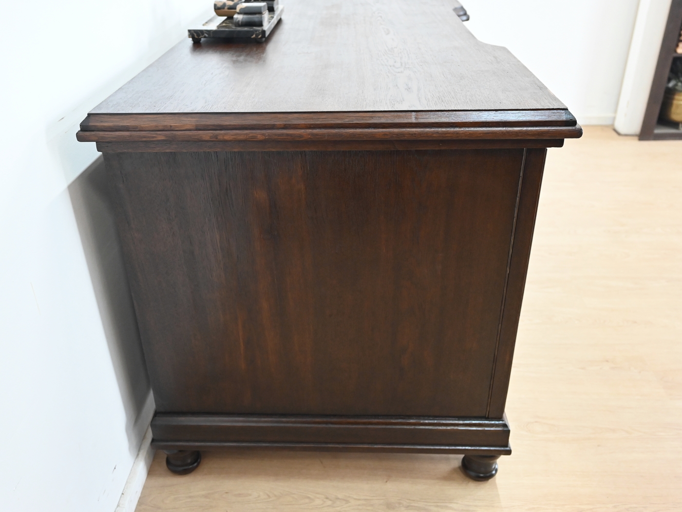 Stan dobry. Mebel przygotowany do użytkowania. Odświeżone zostały powierzchnie zewnętrzne jak i środek mebla. Mebel ma już swoje lata i ślady minionego czasu, które nie wpływają na jego odbiór estetyczny, są świadectwem autentyczności mebla. Biurko od razu można wstawić do mieszkania.