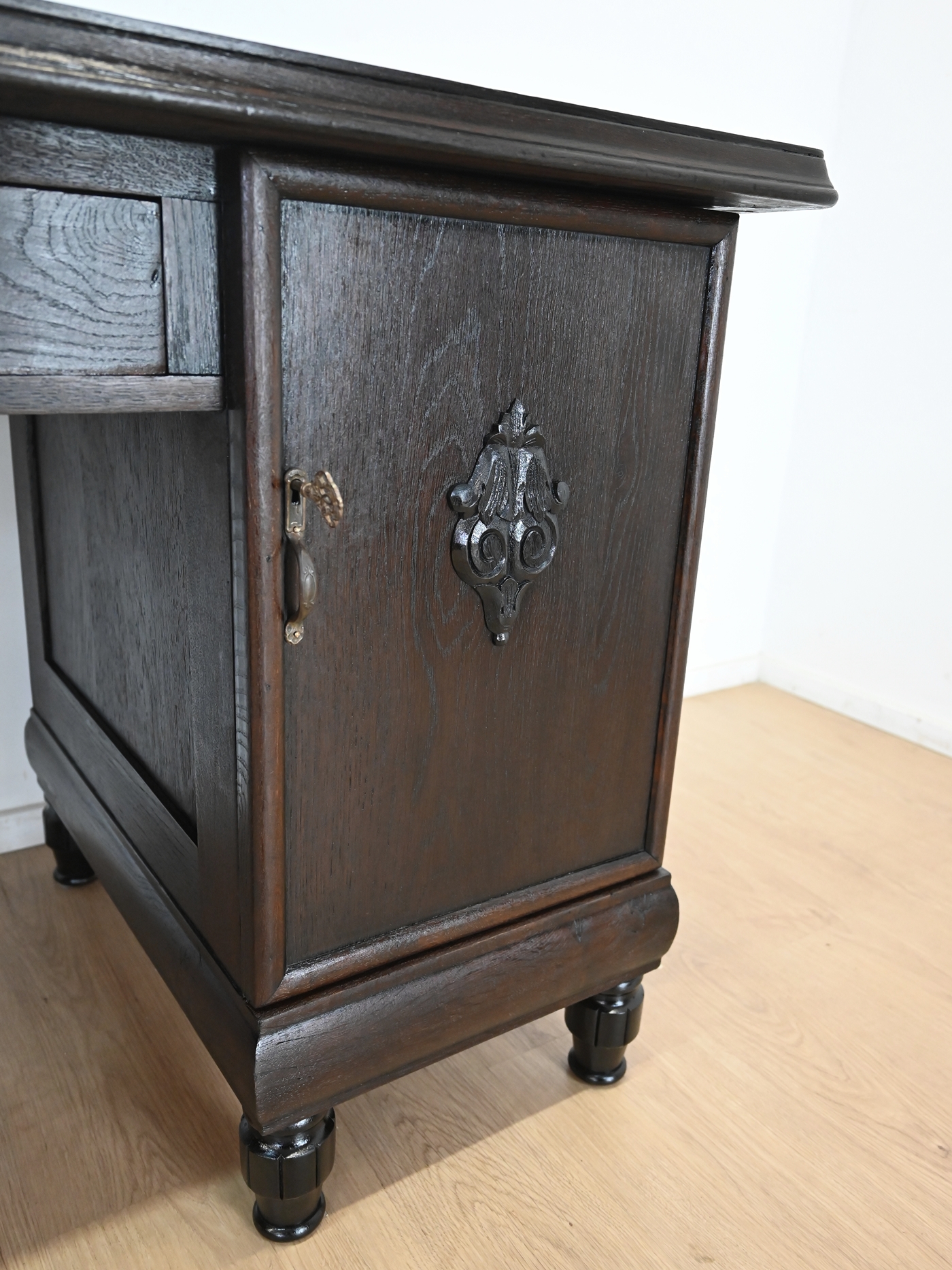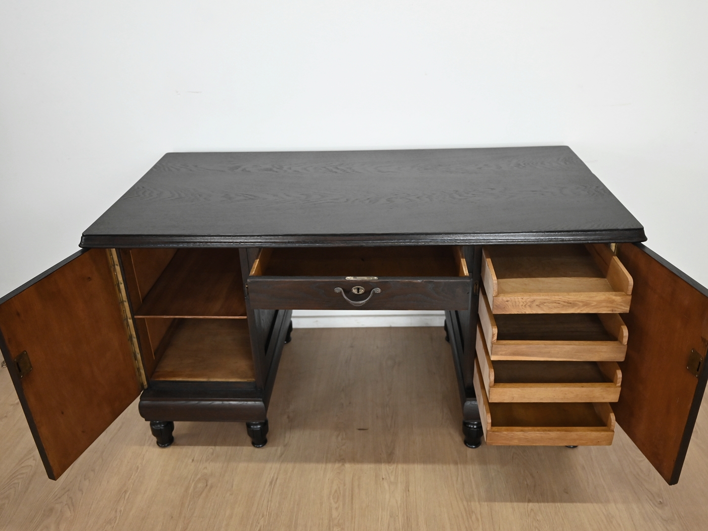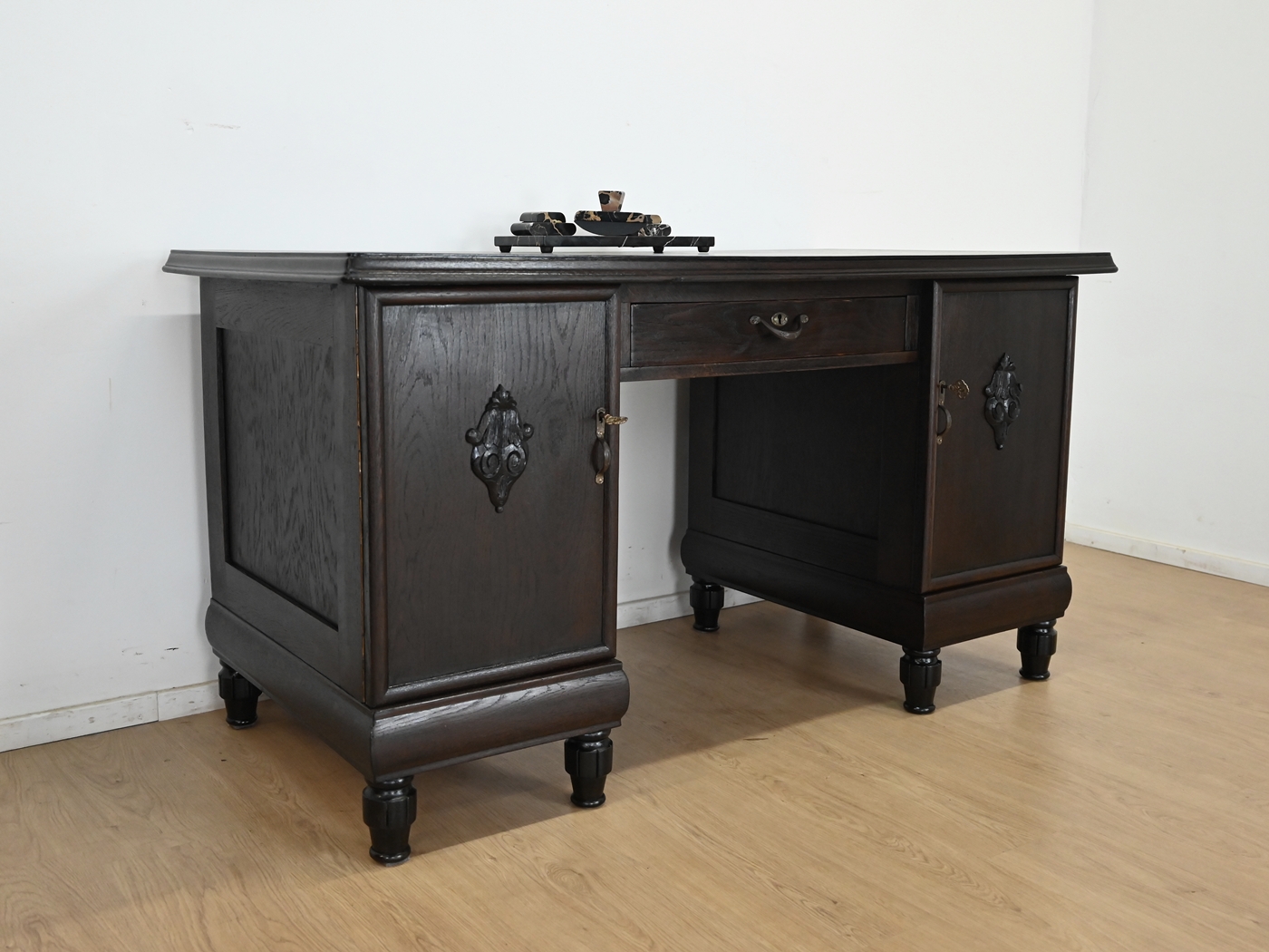 Stan bardzo dobry. Mebel przygotowany do użytkowania. Odświeżone zostały powierzchnie zewnętrzne jak i środek mebla. Mebel ma już swoje lata i ślady minionego czasu, które nie wpływają na jego odbiór estetyczny, są świadectwem autentyczności mebla. Biurko od razu można wstawić do mieszkania.