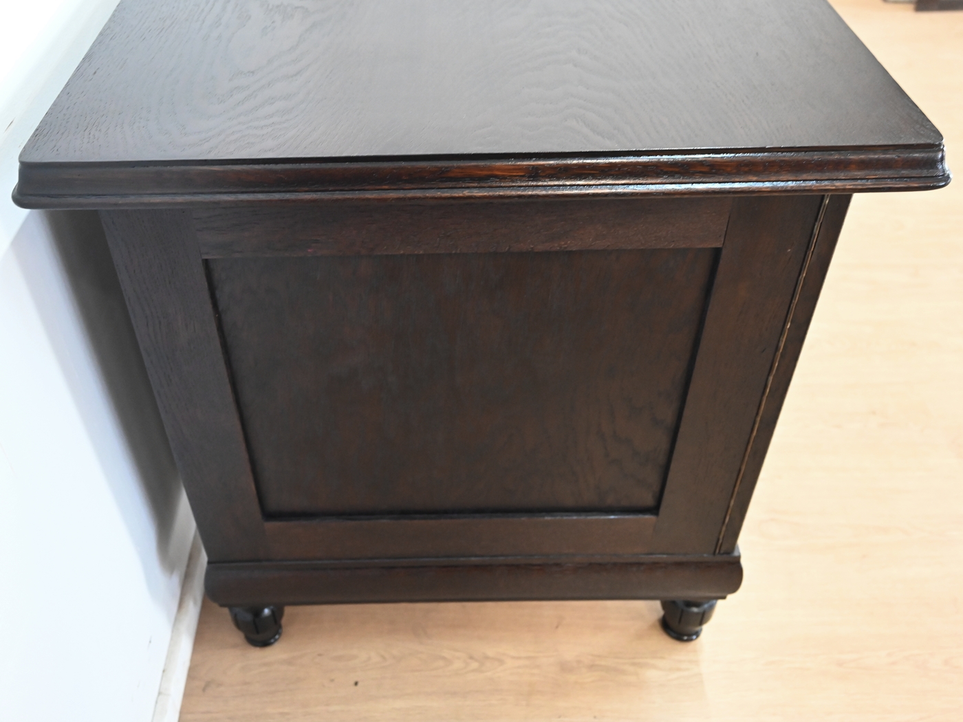 Wykonany jest w całości z drewna, fornirowany dębem.