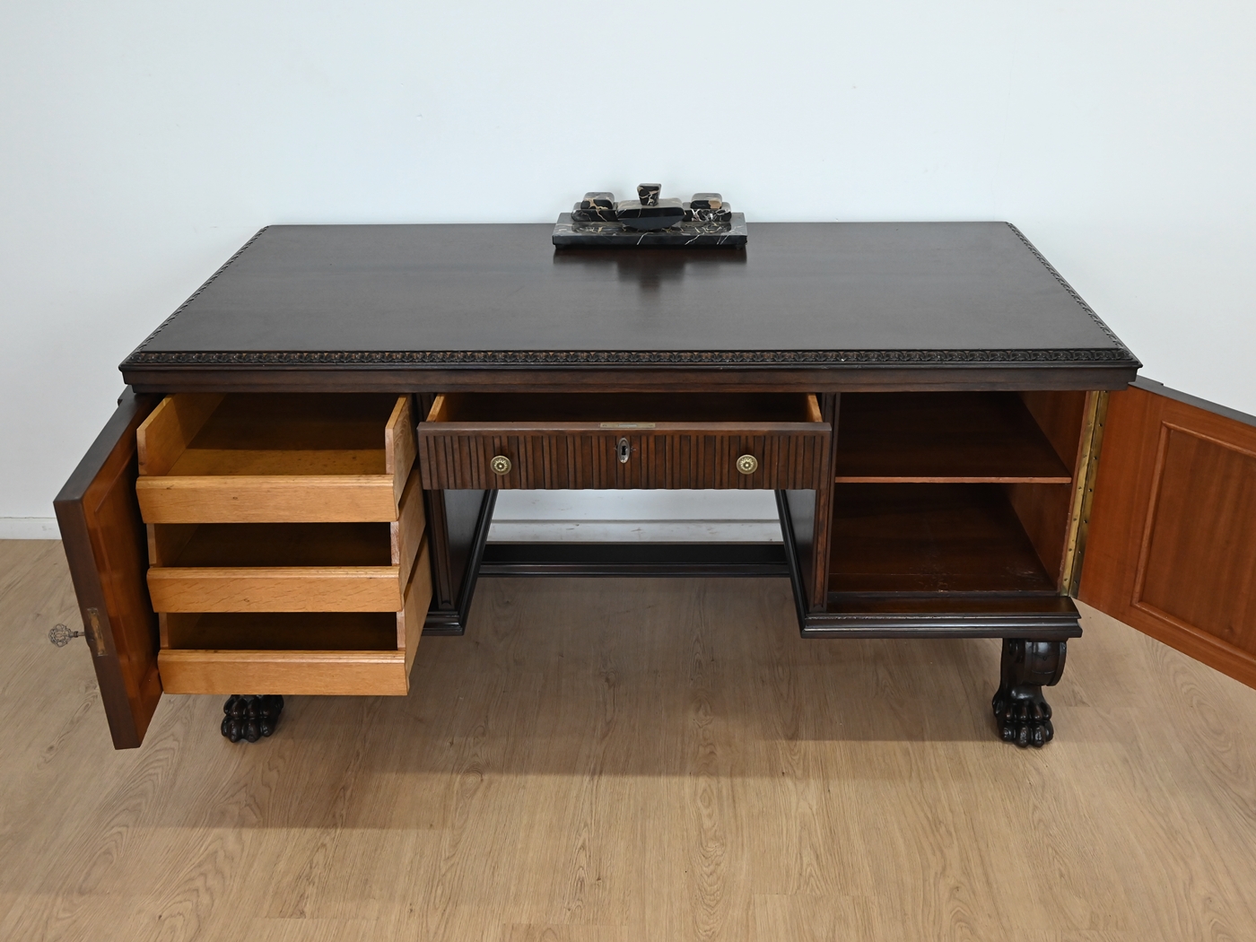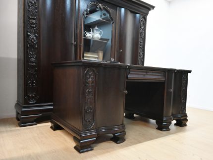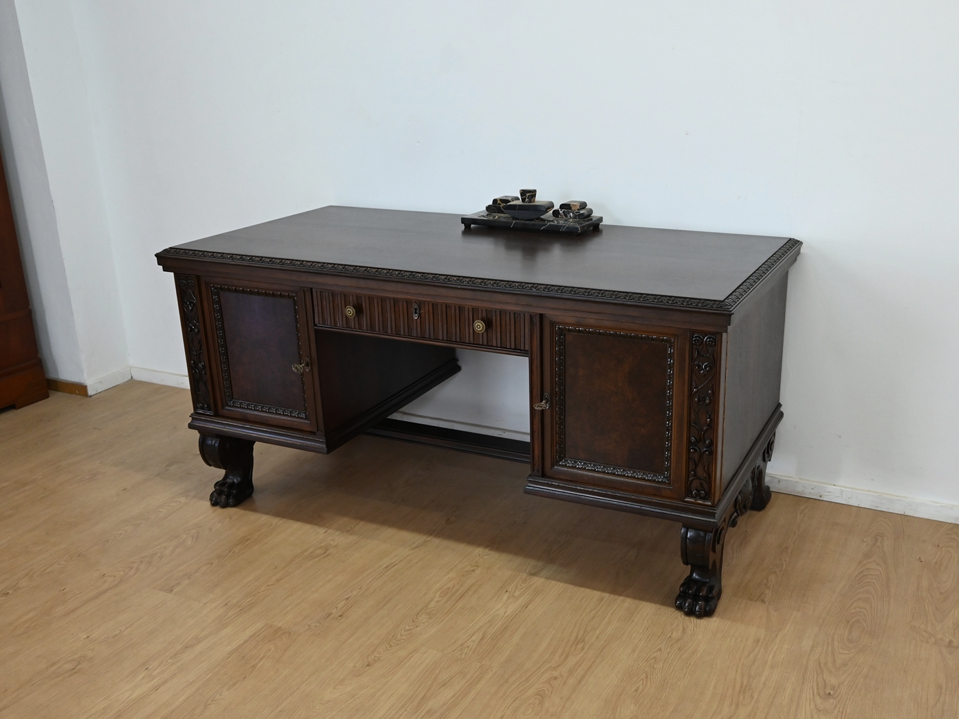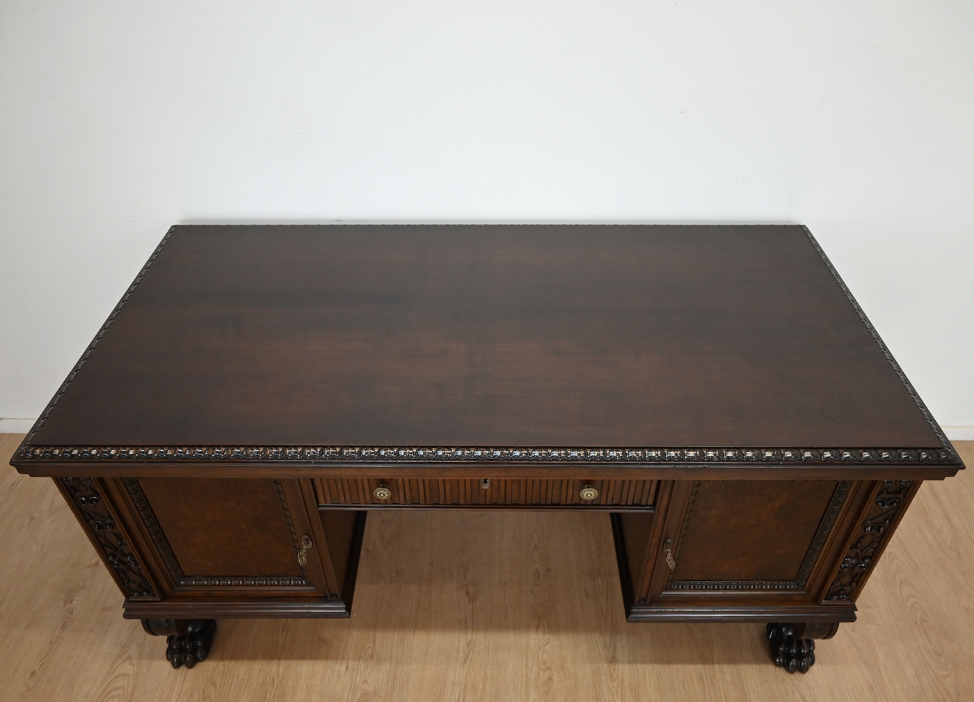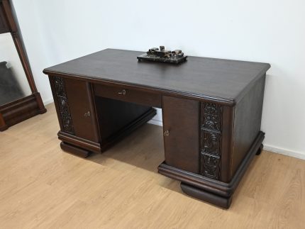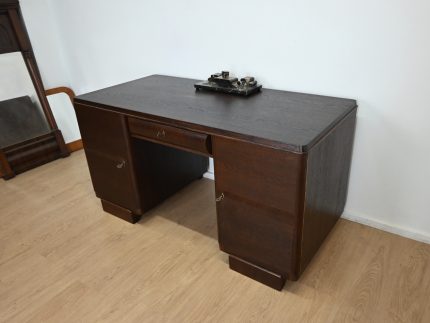 Stan bardzo dobry. Mebel przygotowany do użytkowania. Odświeżone zostały powierzchnie zewnętrzne jak i środek mebla. Mebel ma już swoje lata i ślady minionego czasu, które nie wpływają na jego odbiór estetyczny, są świadectwem autentyczności mebla. Biurko od razu można wstawić do mieszkania.