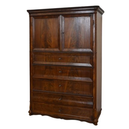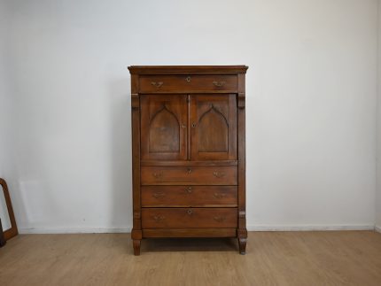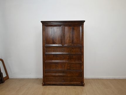 Wykonany jest w całości z drewna, fornirowany orzechem.