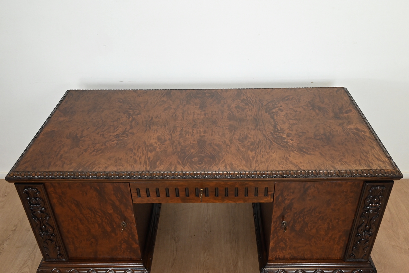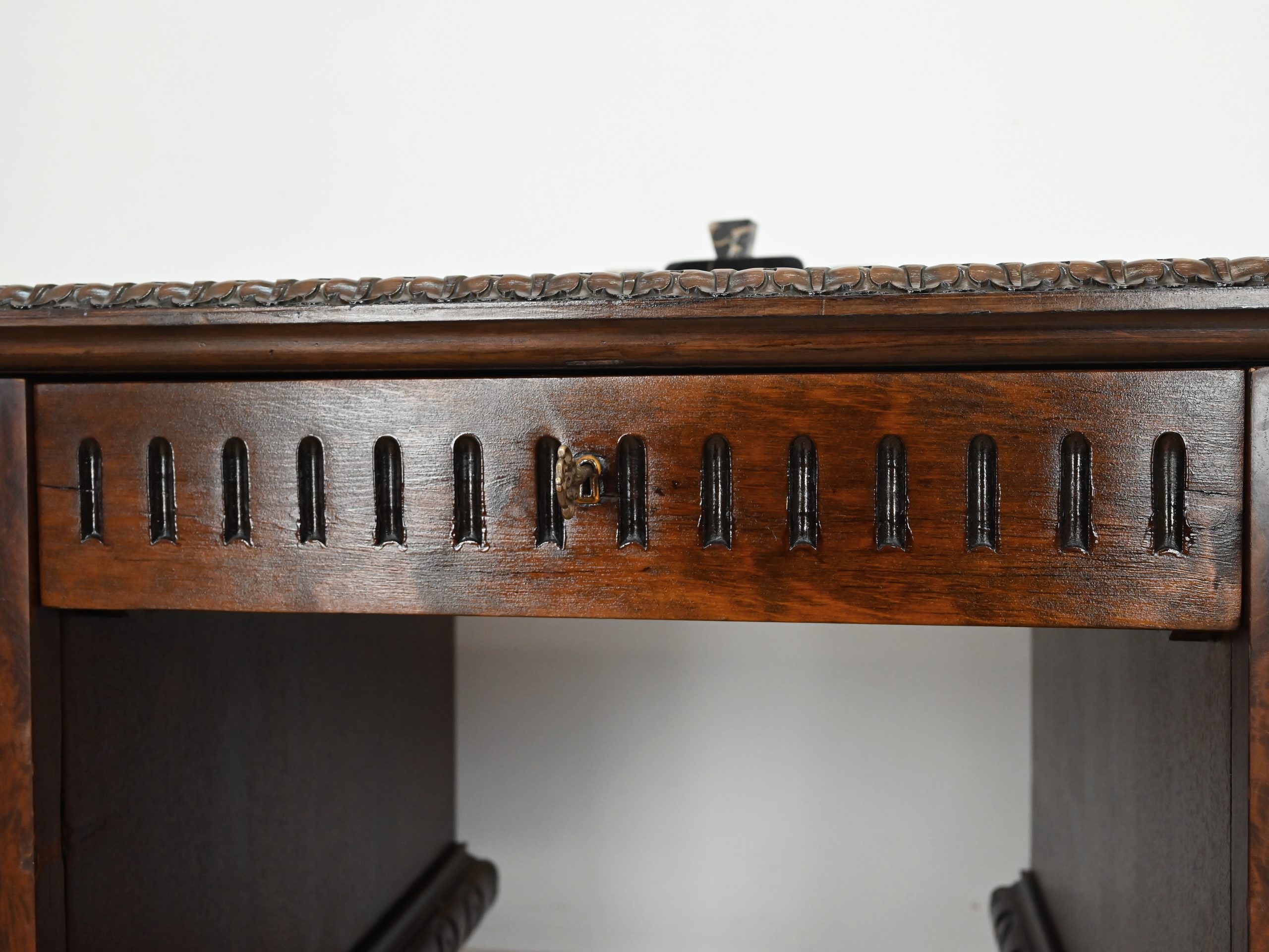 Wykończony jest politurą szelakową w półmacie.