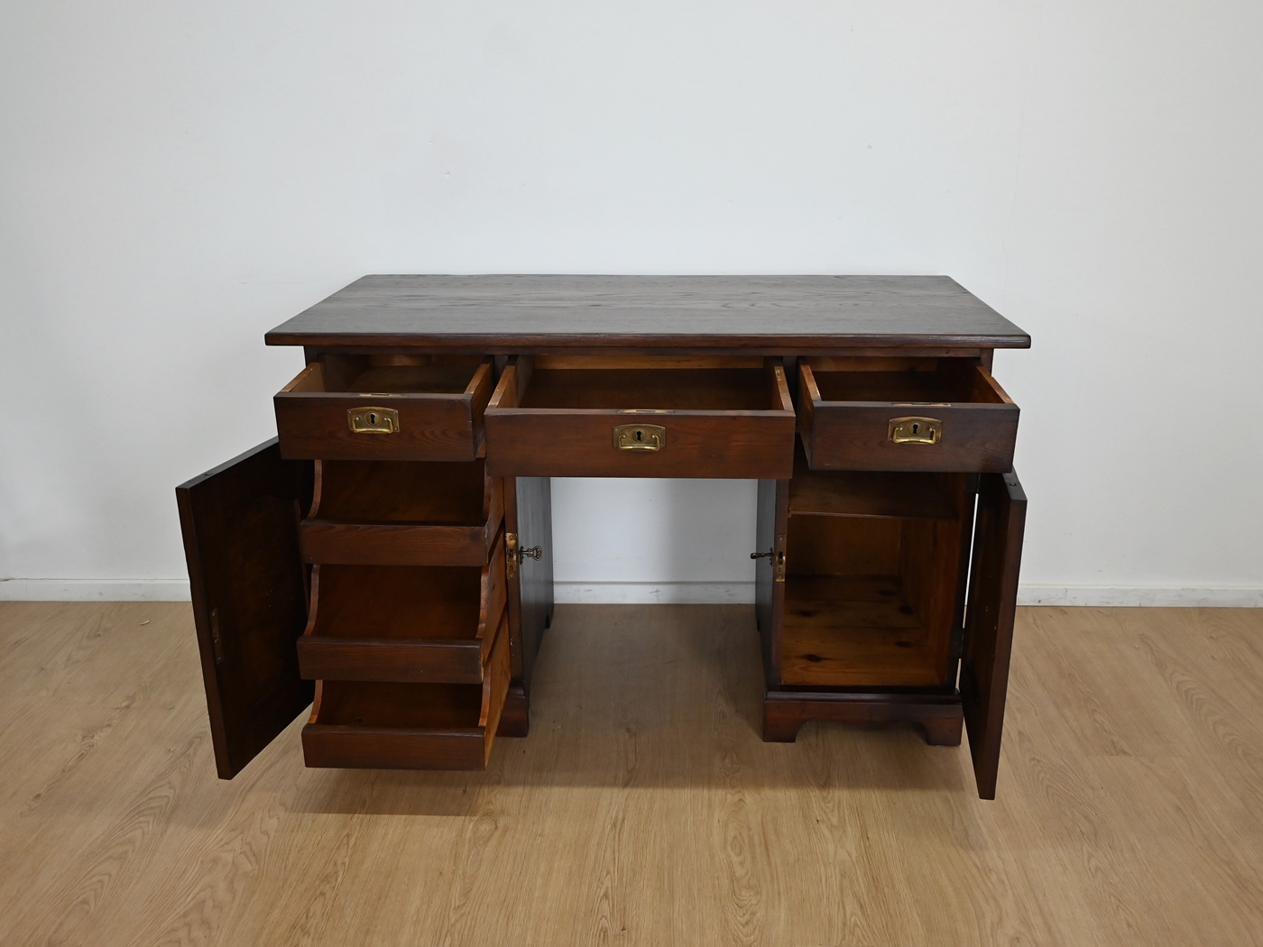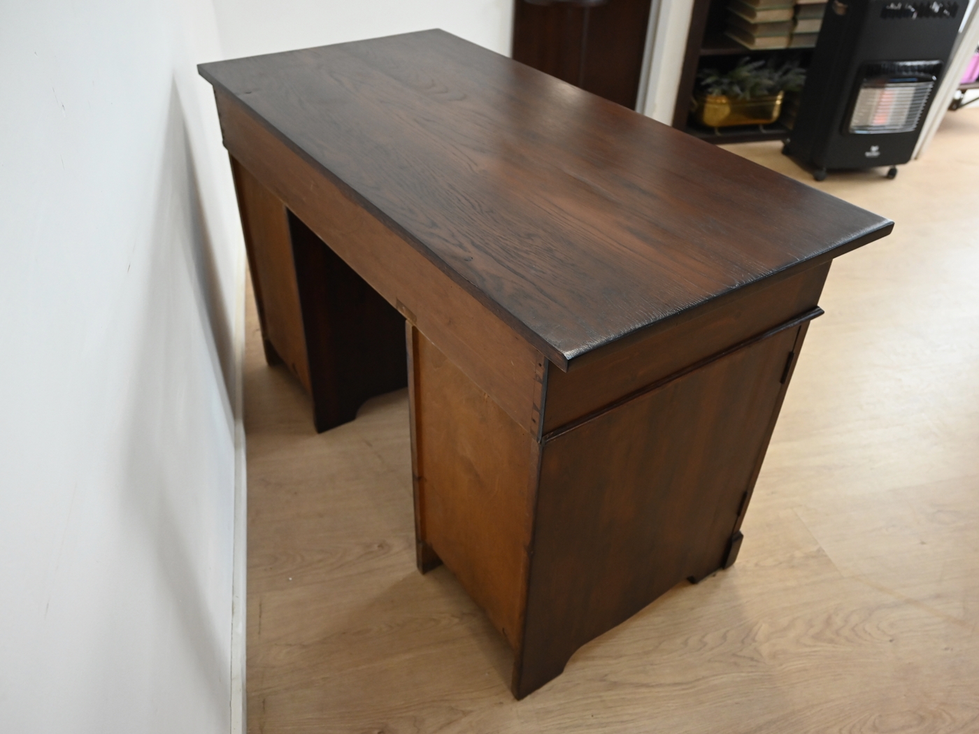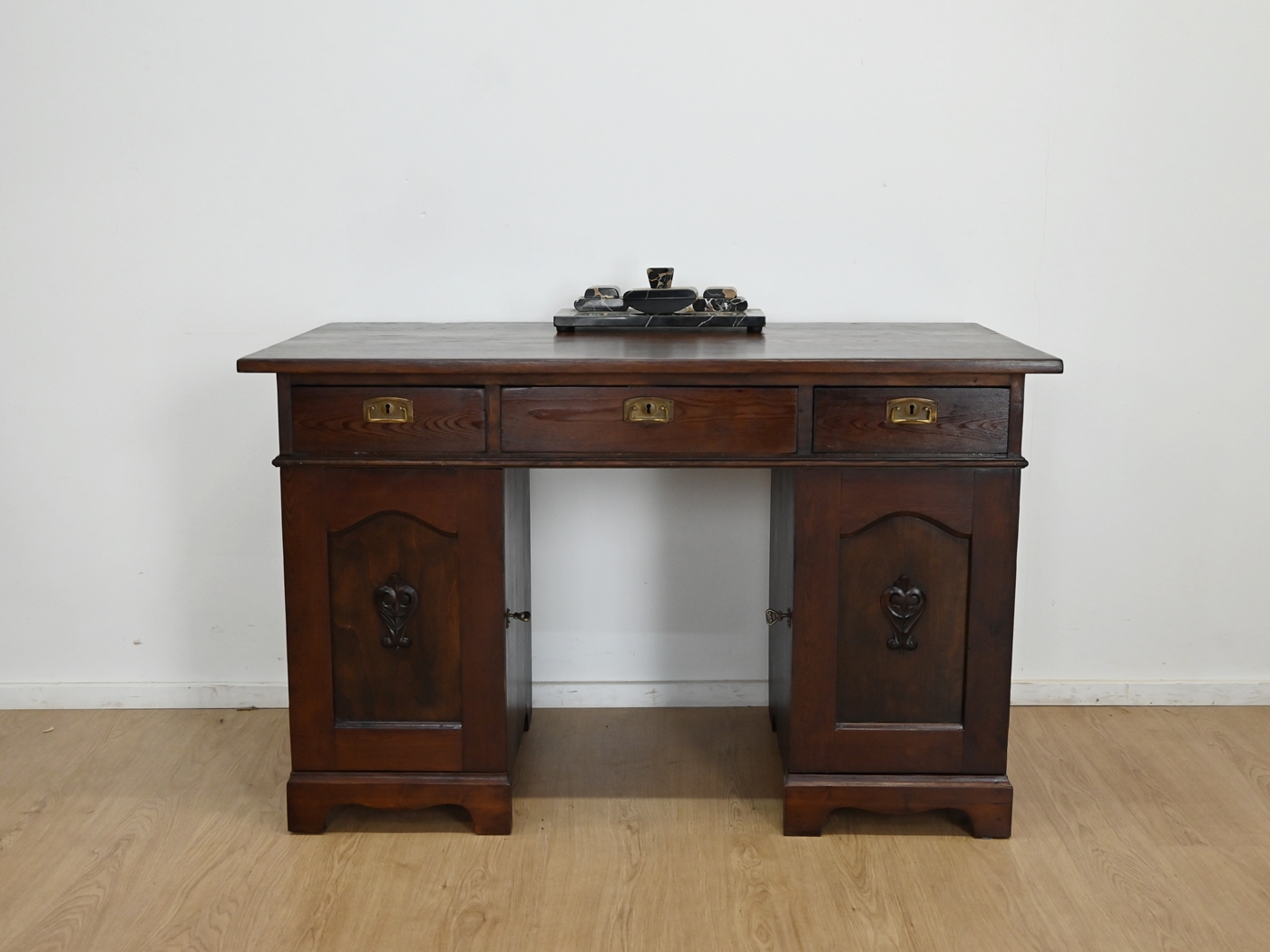 Stan dobry. Mebel przygotowany do użytkowania. Odświeżone zostały powierzchnie zewnętrzne jak i środek mebla. Mebel ma już swoje lata i ślady minionego czasu, które nie wpływają na jego odbiór estetyczny, są świadectwem autentyczności mebla. Biurko od razu można wstawić do mieszkania.