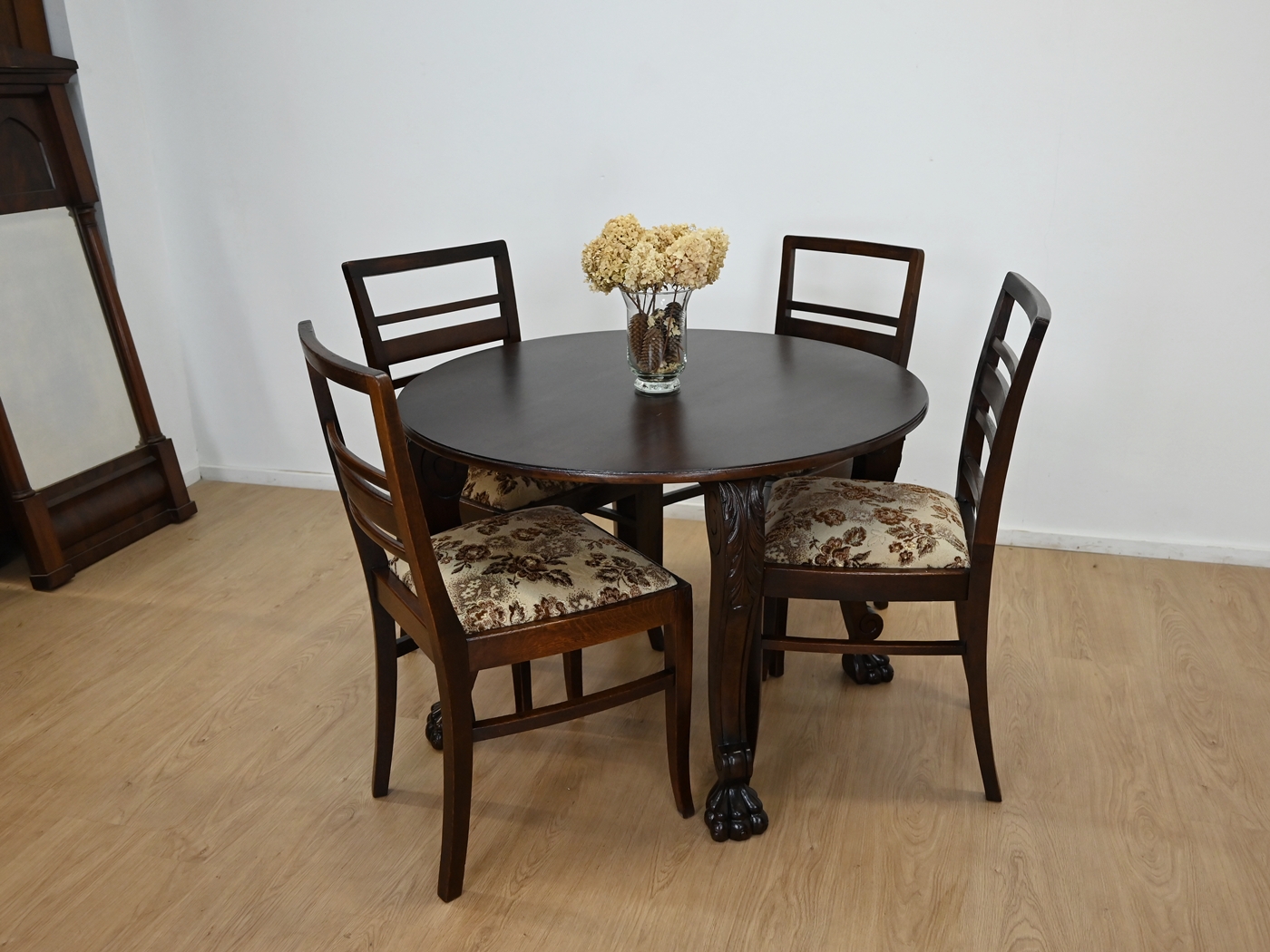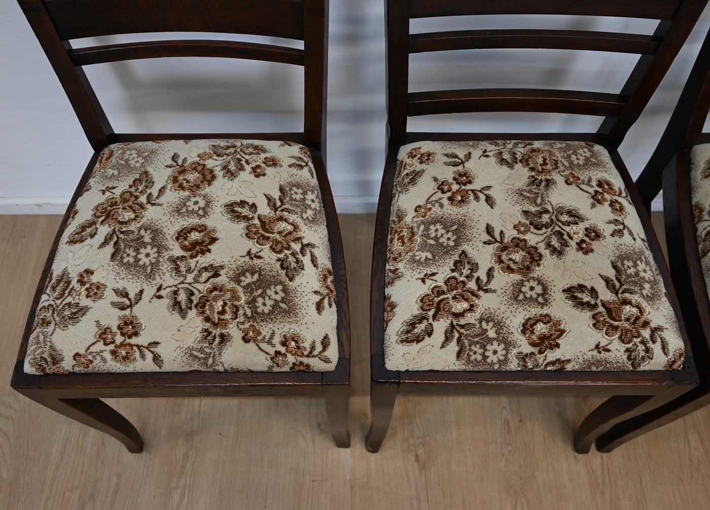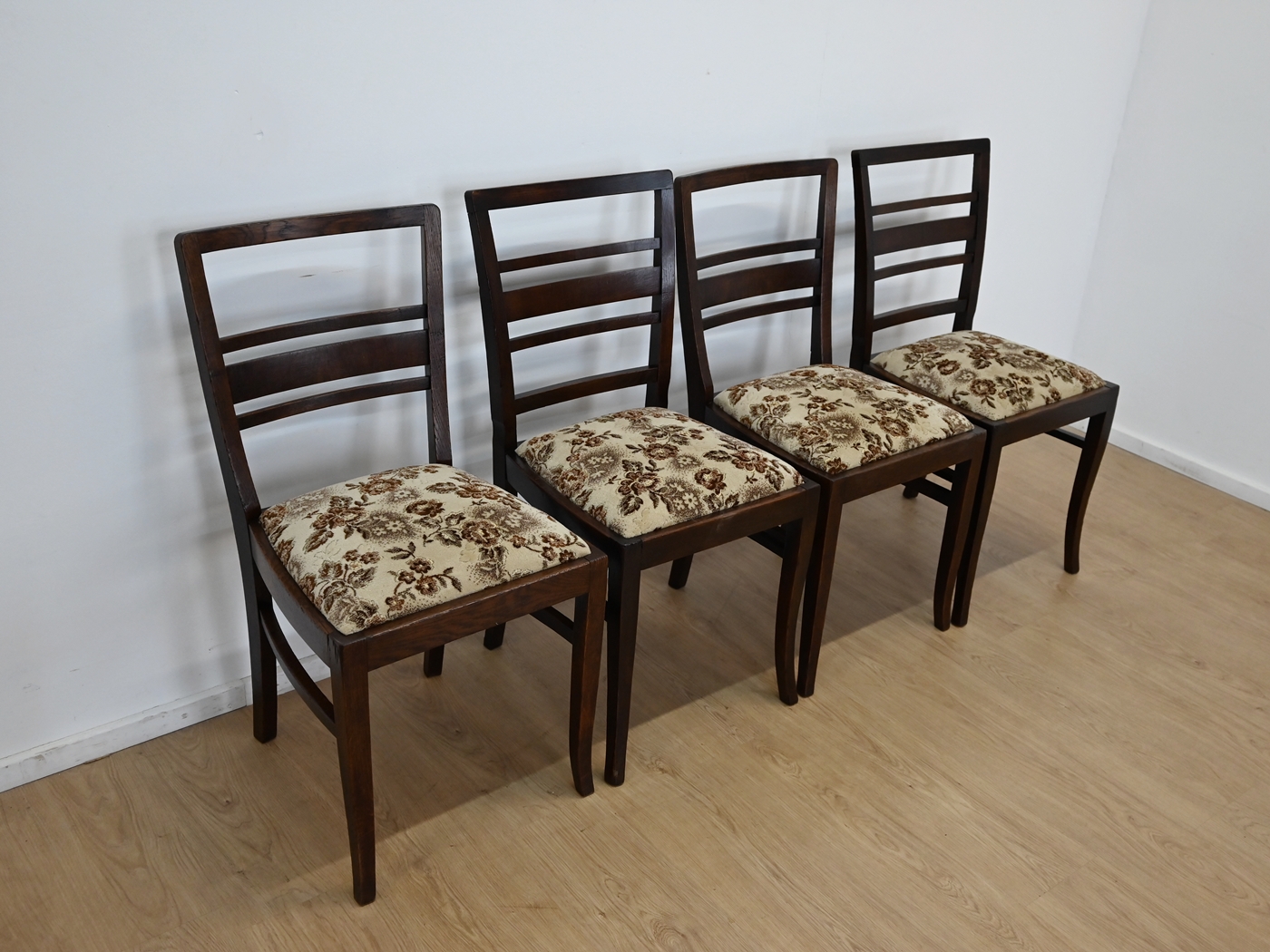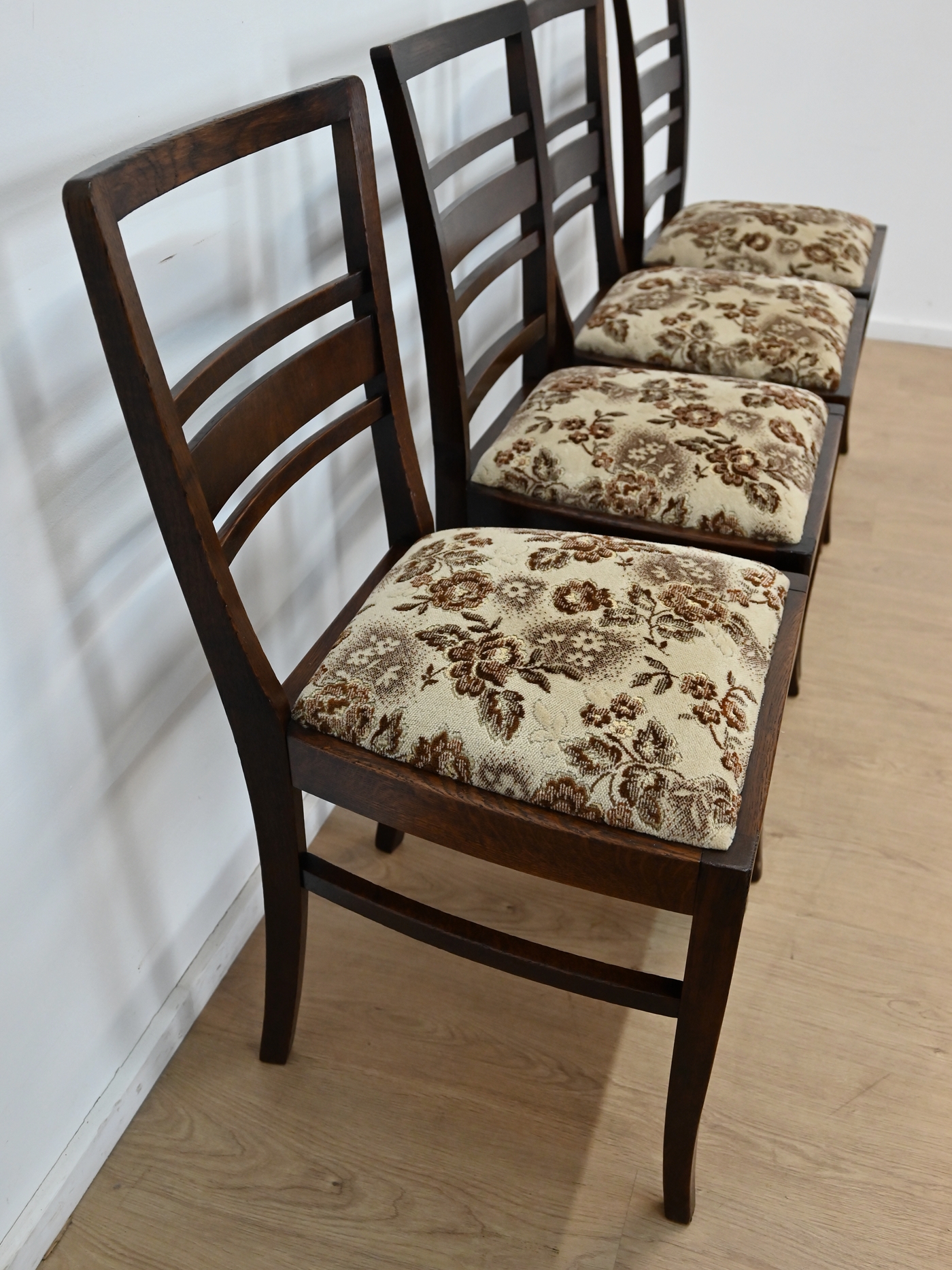 Stan bardzo dobry. Meble przygotowane do użytkowania. Odświeżone. Meble mają już swoje lata i ślady minionego czasu, które nie wpływają na ich odbiór estetyczny, są świadectwem autentyczności mebli. Krzesła od razu można wstawić do mieszkania.
