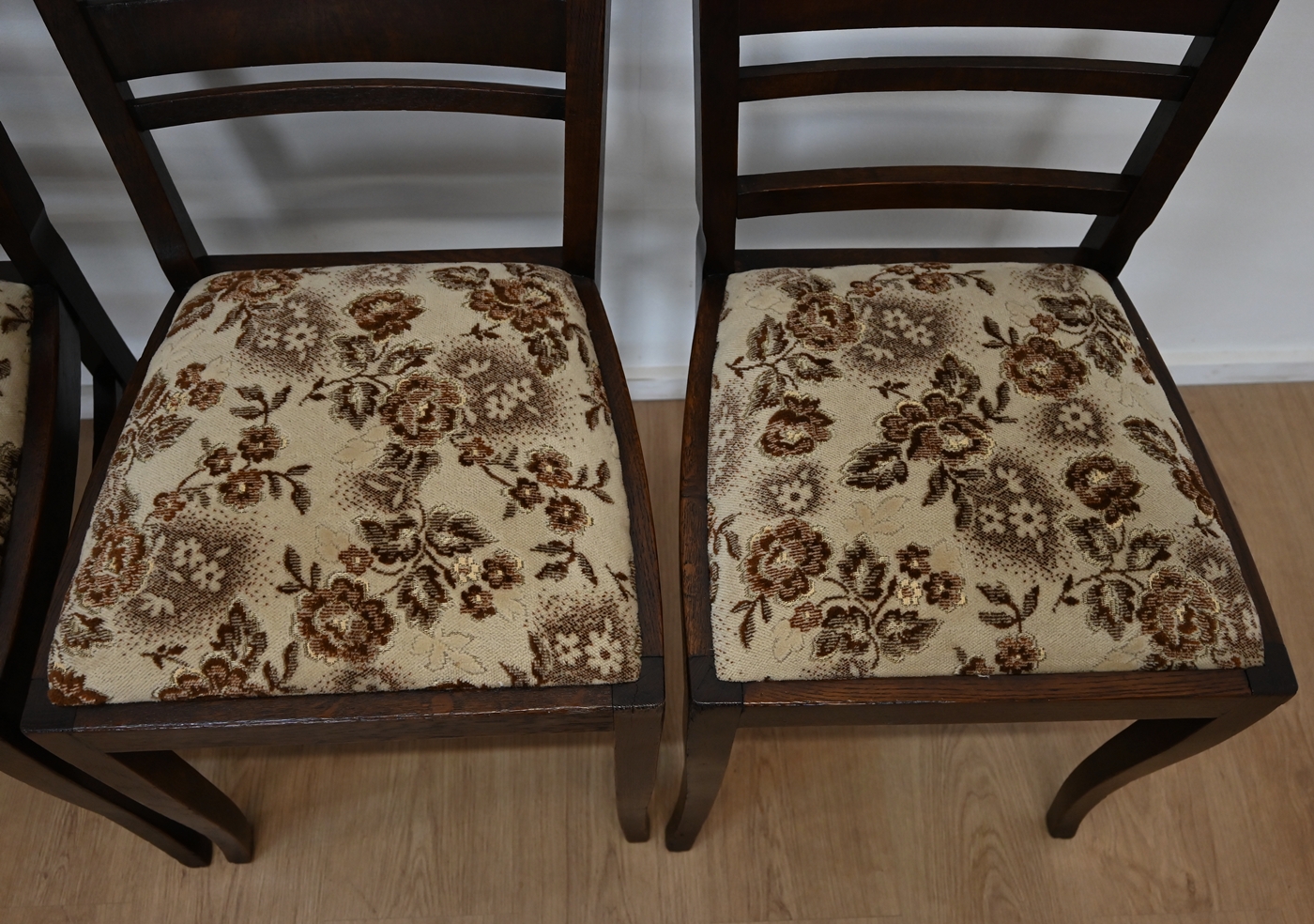 Krzesła stabilne. Siedzisko na sprężynach. Tapicerka nie wymieniana, bez przetarć, dziur.