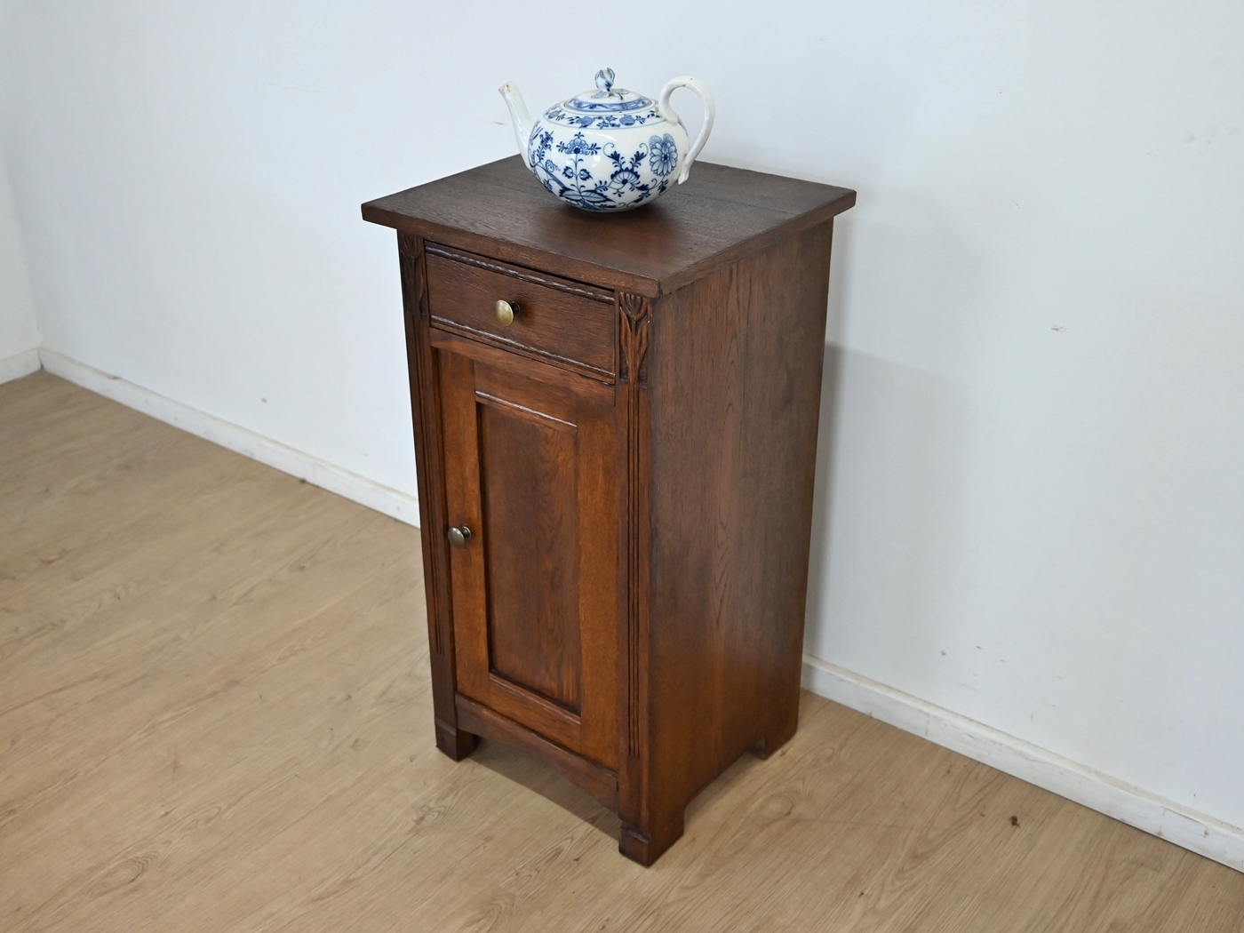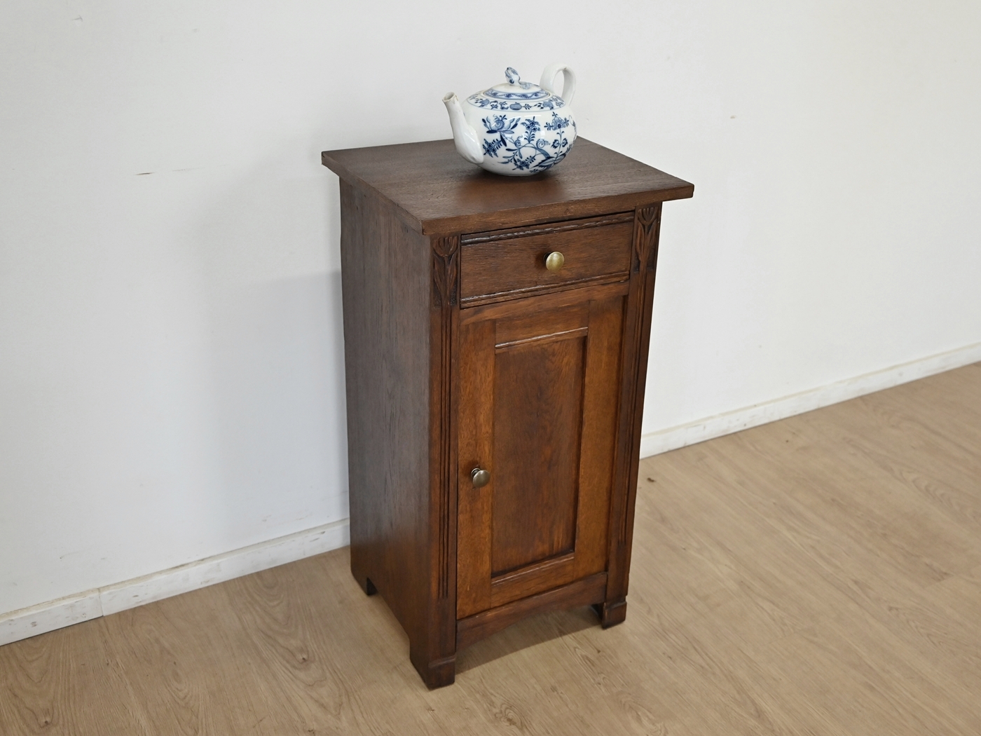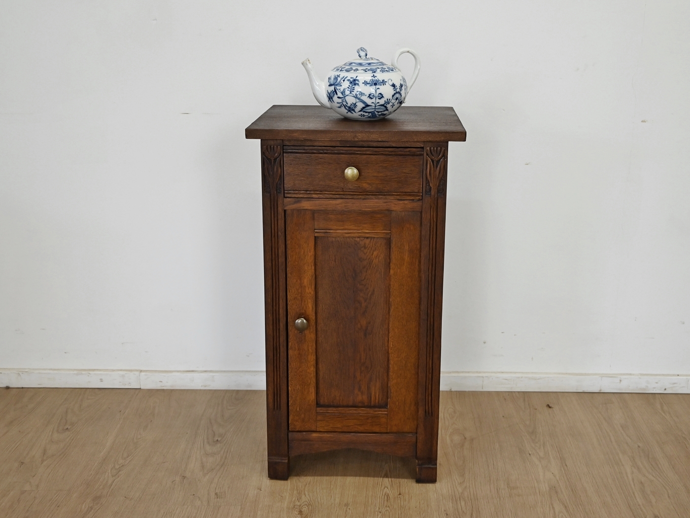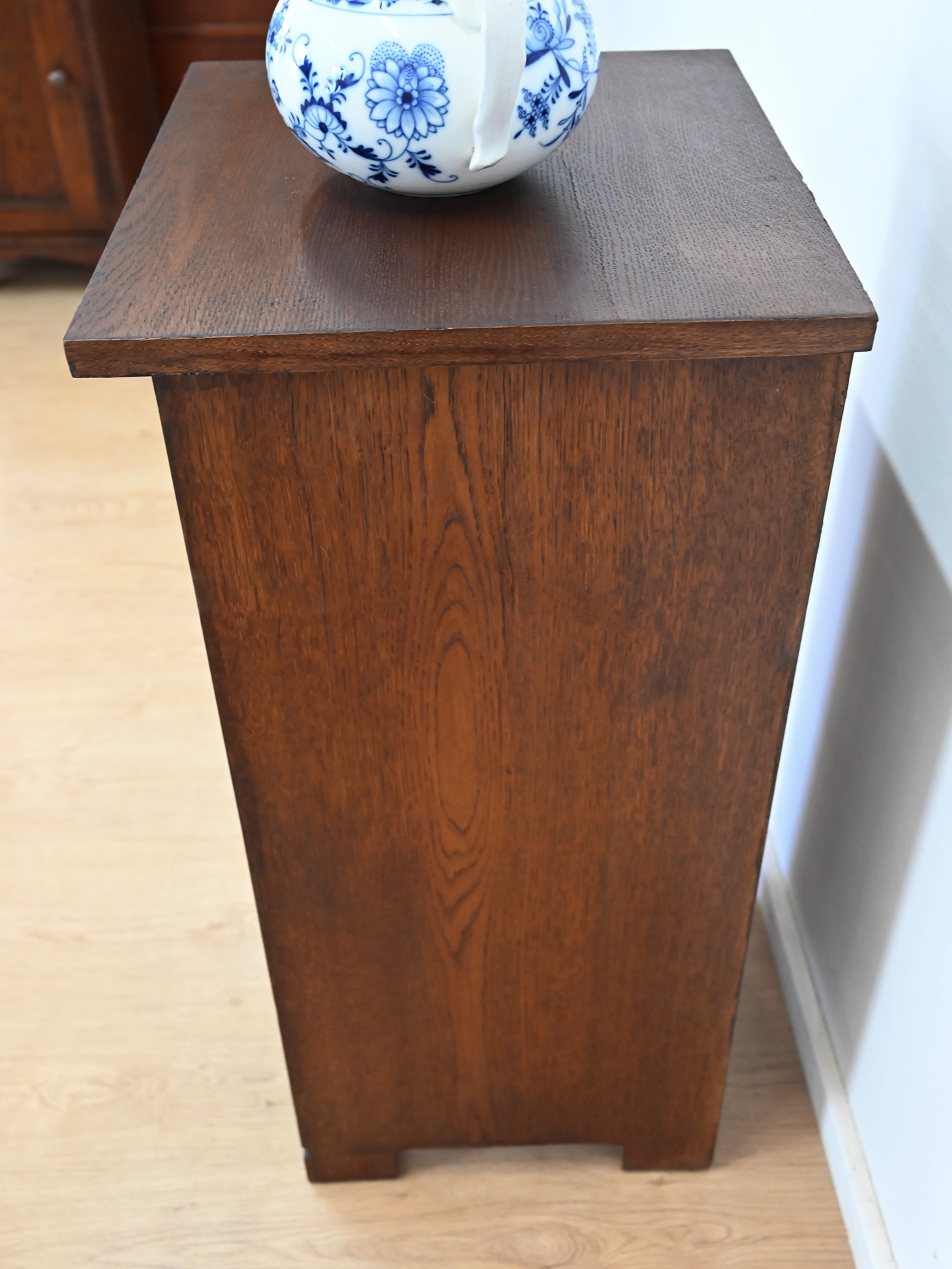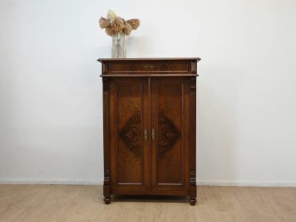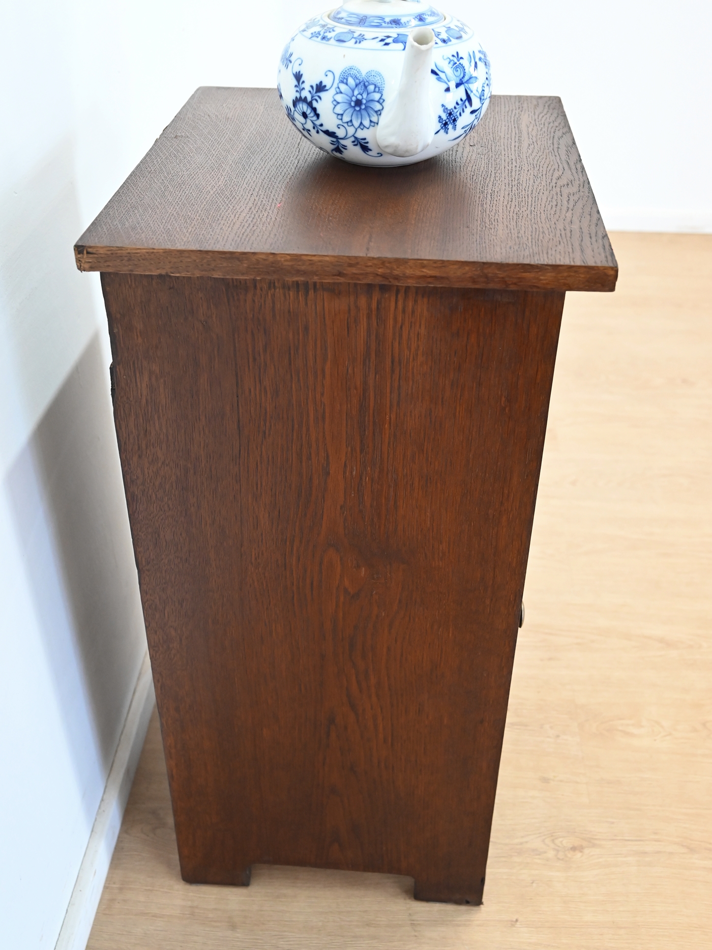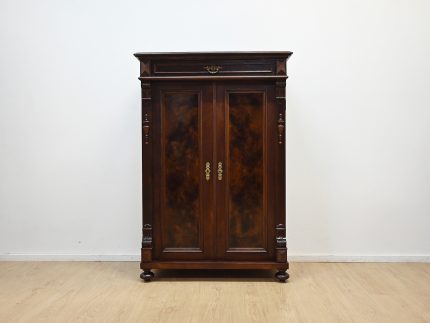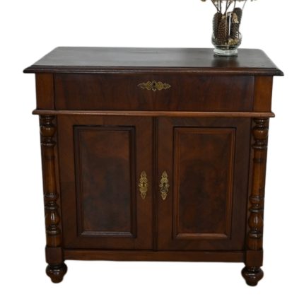 Stan bardzo dobry. Mebel przygotowany do użytkowania. Odświeżone zostały powierzchnie zewnętrzne jak i środek mebla. Mebel ma już swoje lata i ślady minionego czasu, które nie wpływają na jego odbiór estetyczny, są świadectwem autentyczności mebla. Szafkę od razu można wstawić do mieszkania.