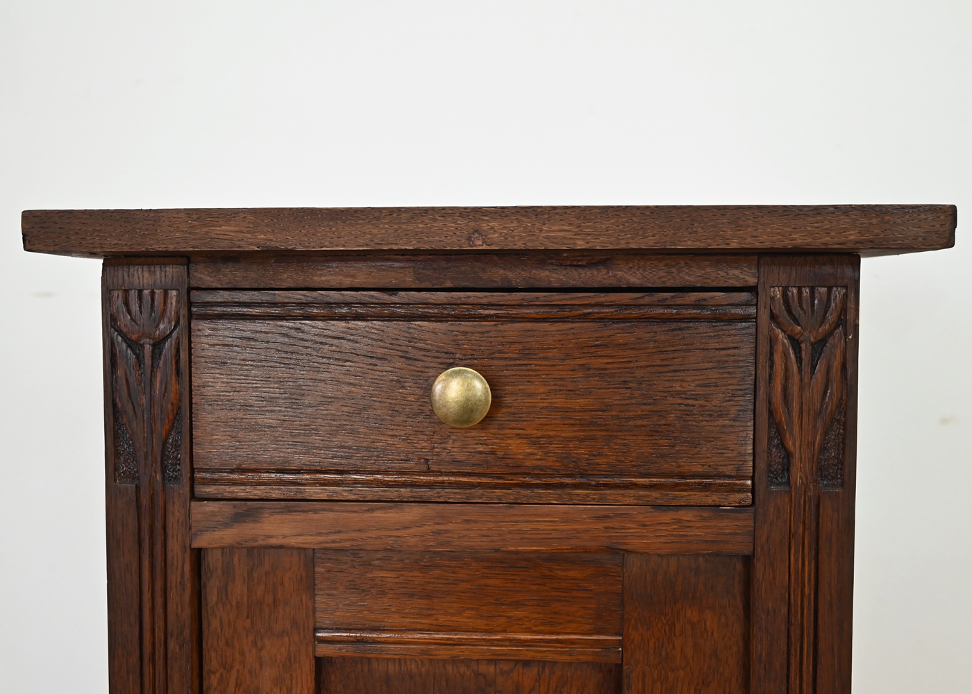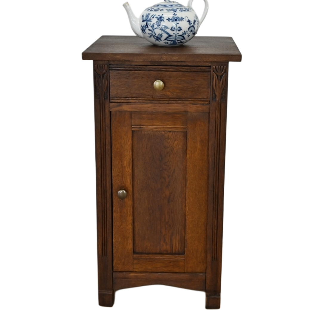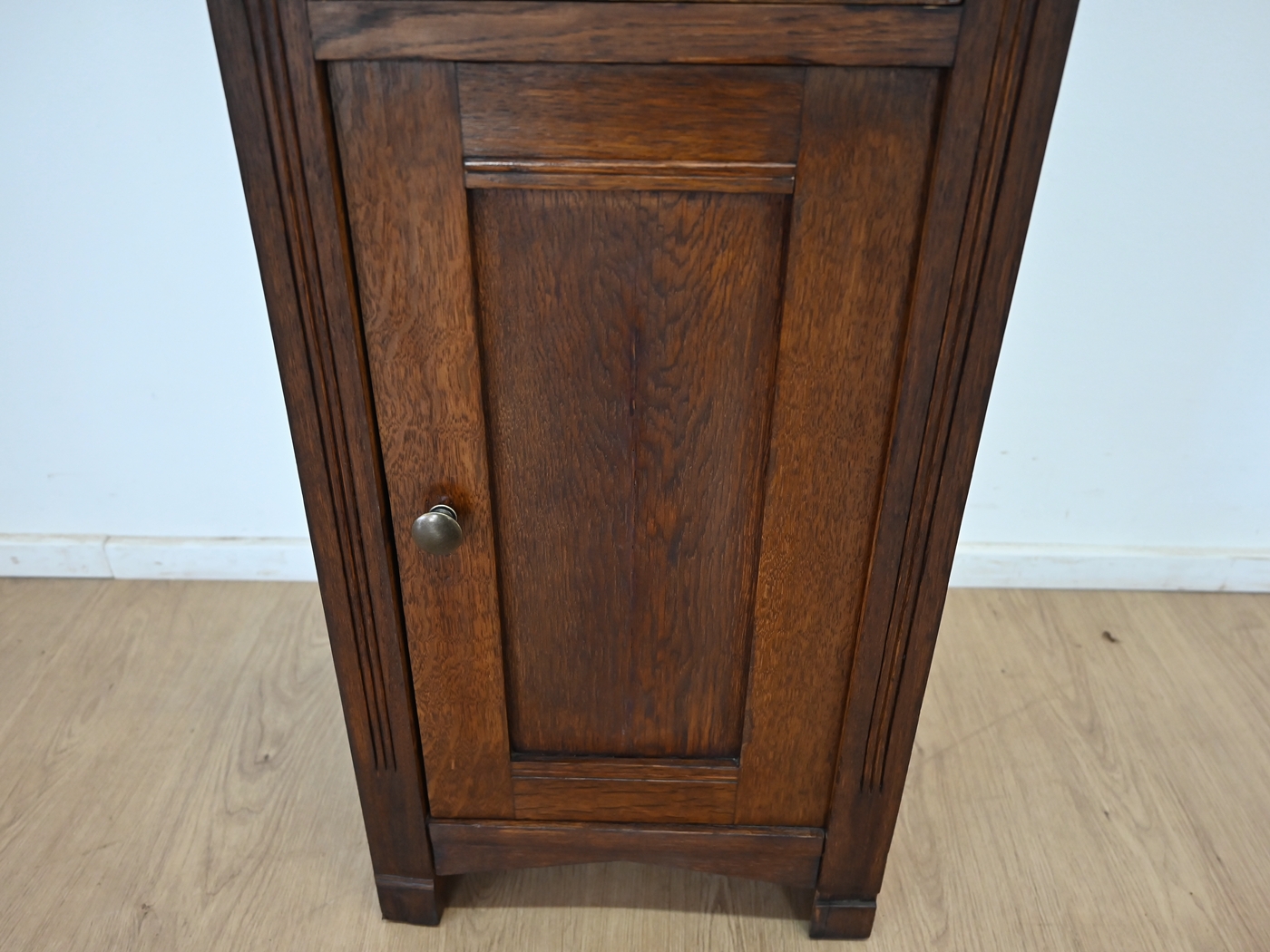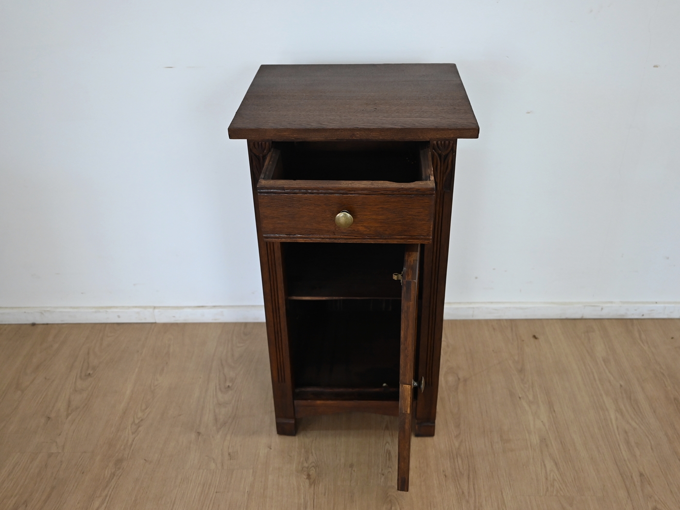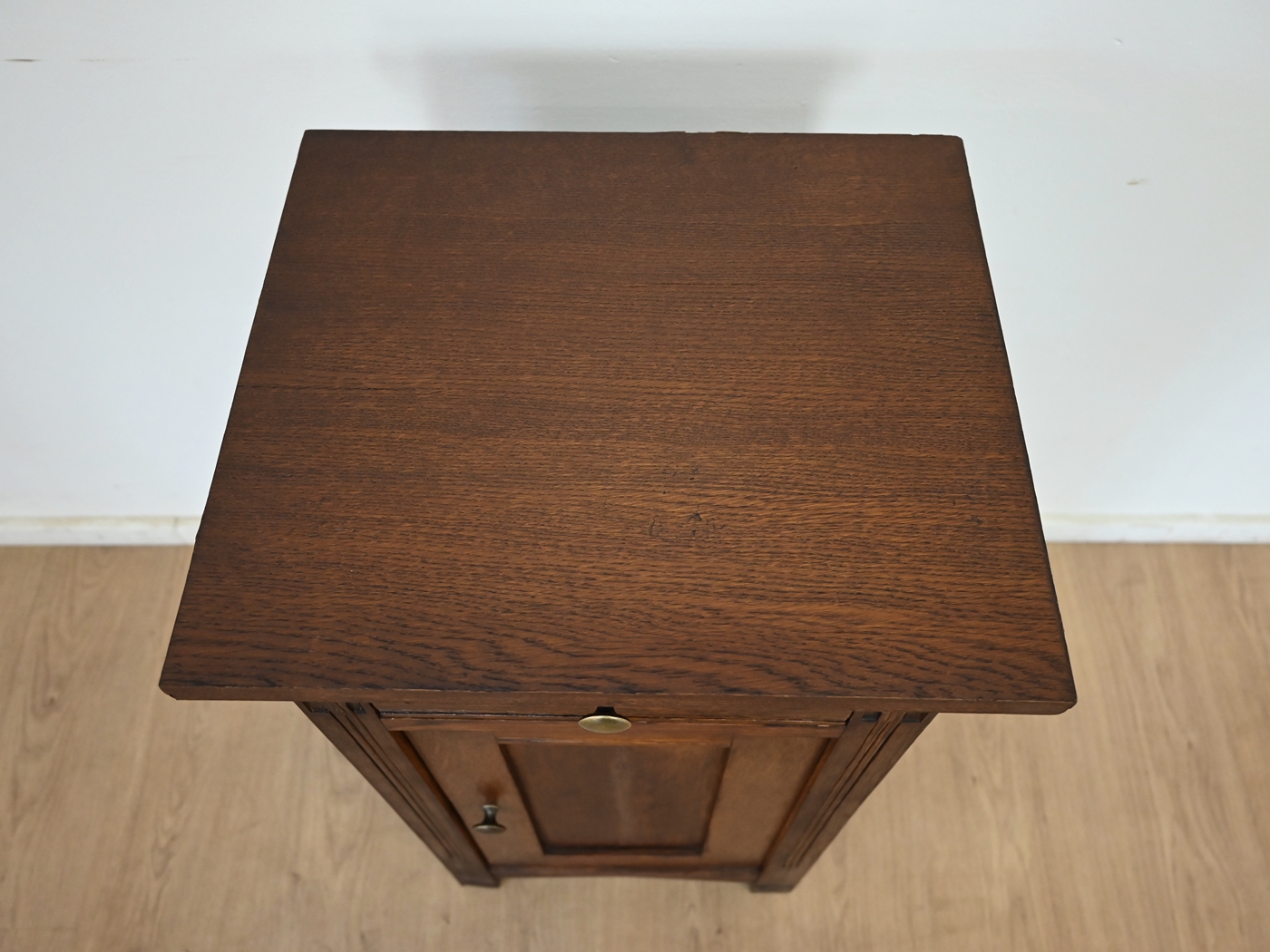 Stan bardzo dobry. Mebel przygotowany do użytkowania. Odświeżone zostały powierzchnie zewnętrzne jak i środek mebla. Mebel ma już swoje lata i ślady minionego czasu, które nie wpływają na jego odbiór estetyczny, są świadectwem autentyczności mebla. Szafkę od razu można wstawić do mieszkania.