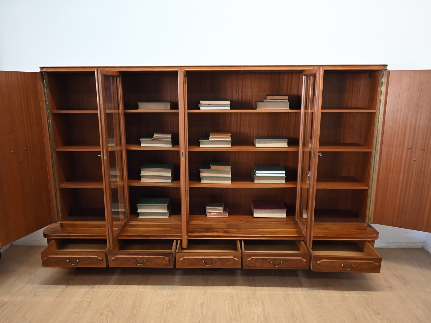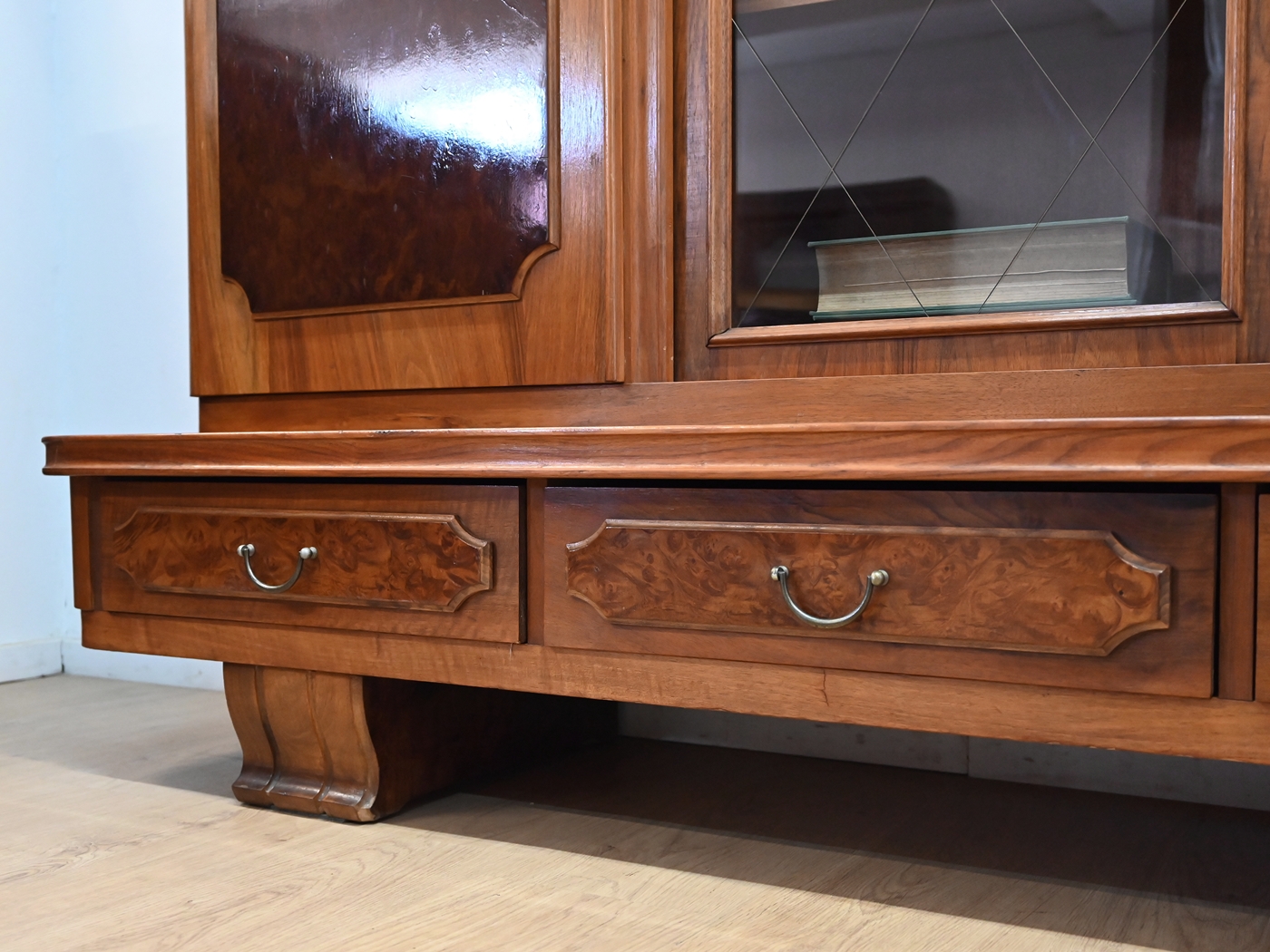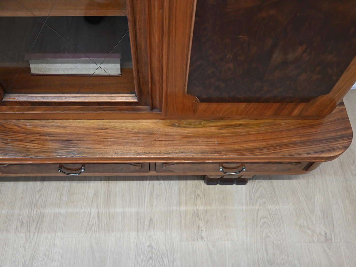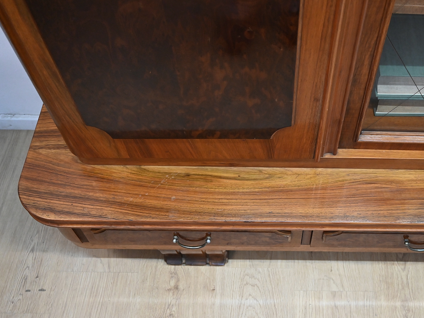 Stan bardzo dobry. Mebel przygotowany do użytkowania. Odświeżone zostały powierzchnie zewnętrzne jak i środek mebla. Mebel ma już swoje lata i ślady minionego czasu, które nie wpływają na jego odbiór estetyczny, są świadectwem autentyczności mebla. Bibliotekę od razu można wstawić do mieszkania.