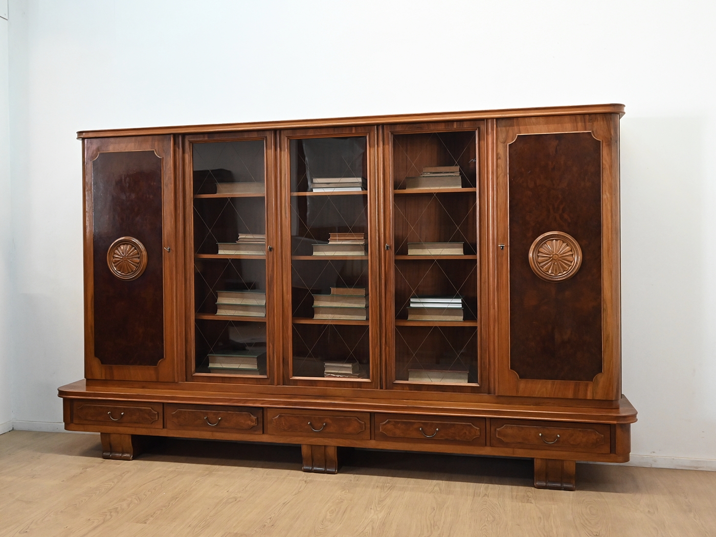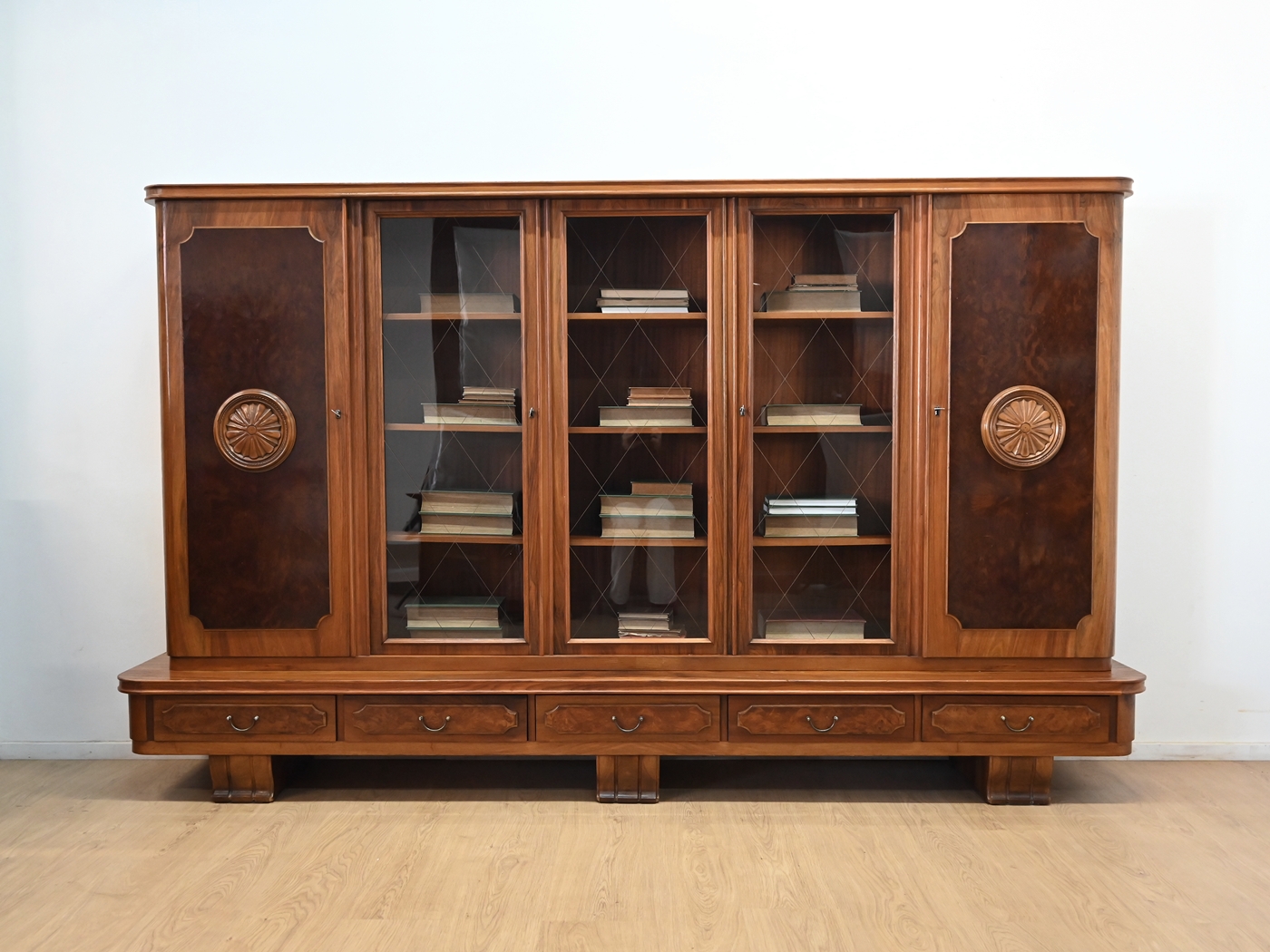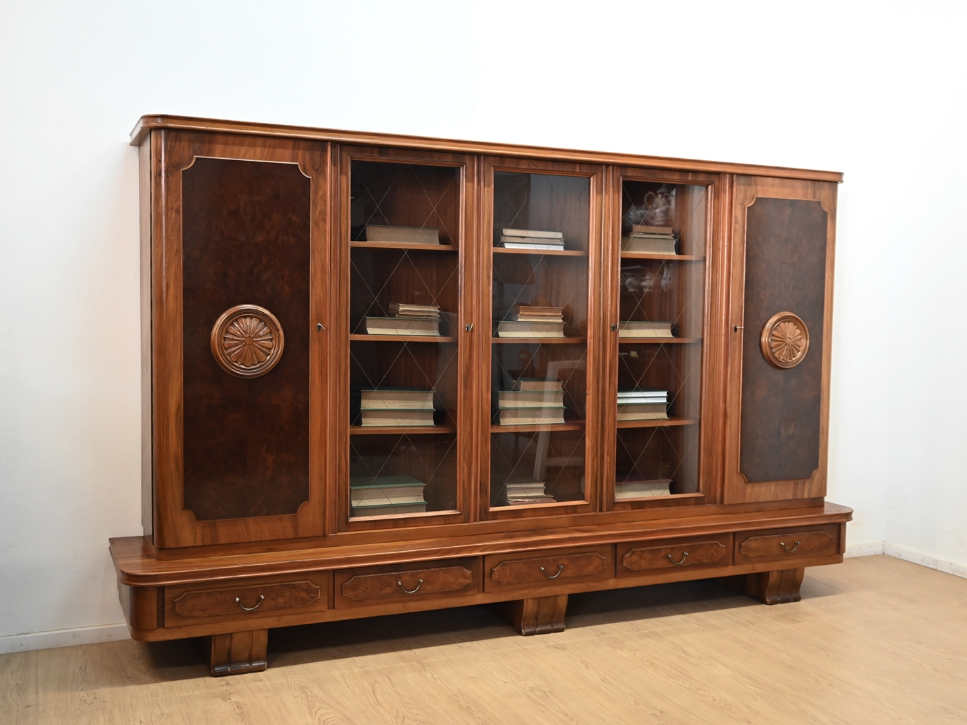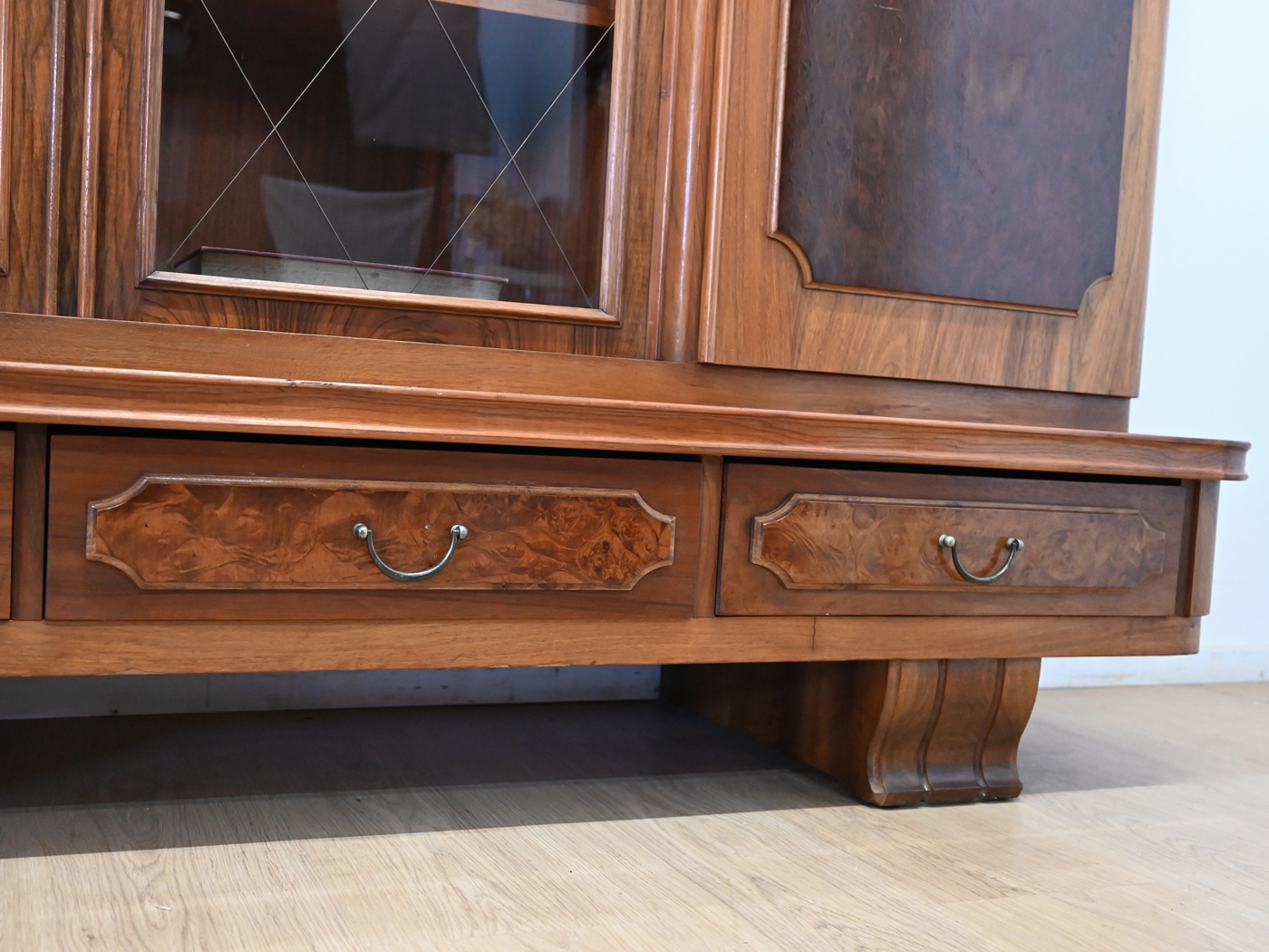 Stan bardzo dobry. Mebel przygotowany do użytkowania. Odświeżone zostały powierzchnie zewnętrzne jak i środek mebla. Mebel ma już swoje lata i ślady minionego czasu, które nie wpływają na jego odbiór estetyczny, są świadectwem autentyczności mebla. Bibliotekę od razu można wstawić do mieszkania.