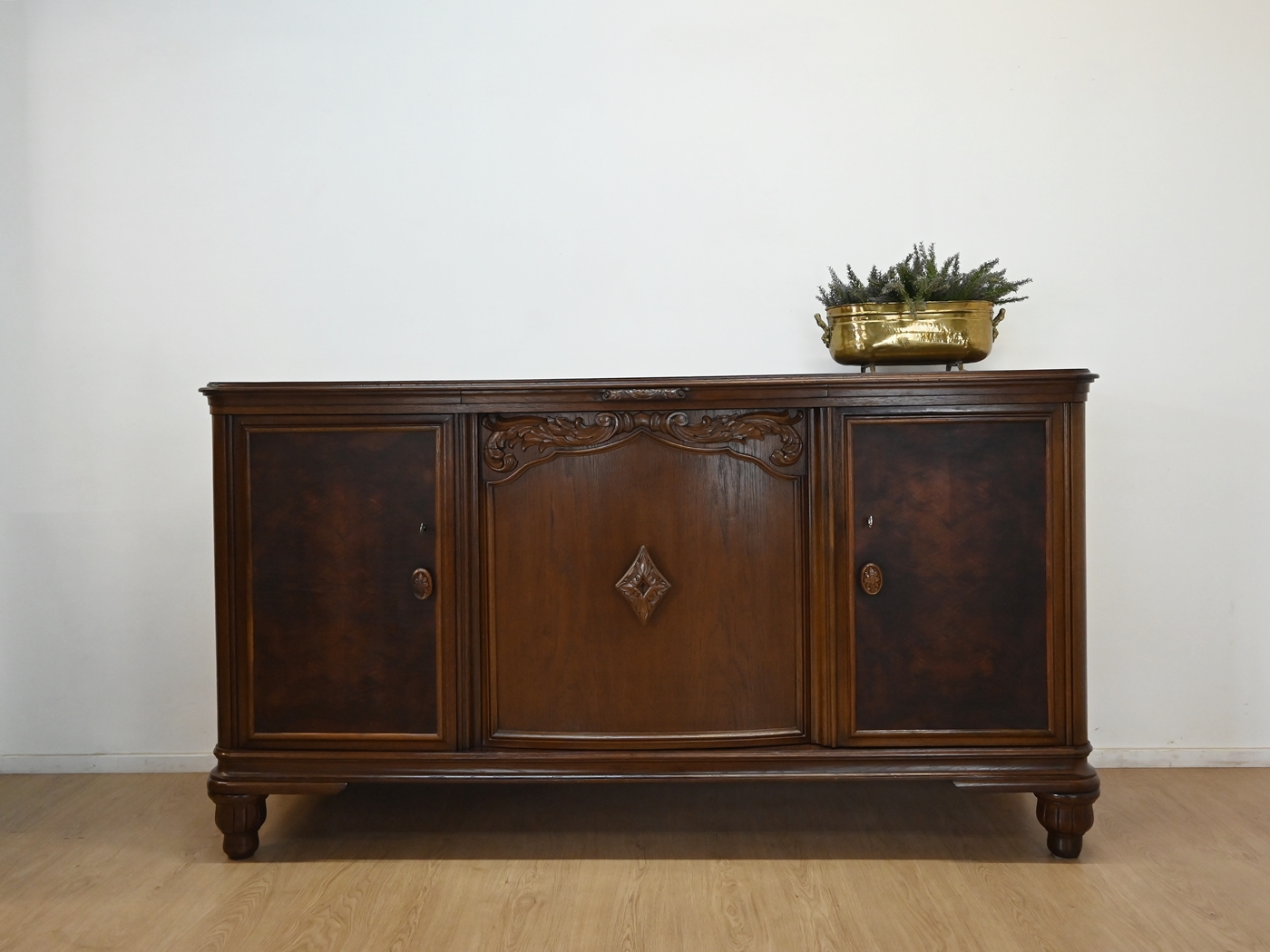 Stan bardzo dobry. Mebel przygotowany do użytkowania. Odświeżone zostały powierzchnie zewnętrzne jak i środek mebla. Mebel ma już swoje lata i ślady minionego czasu, które nie wpływają na jego odbiór estetyczny, są świadectwem autentyczności mebla. Komodę od razu można wstawić do mieszkania.
