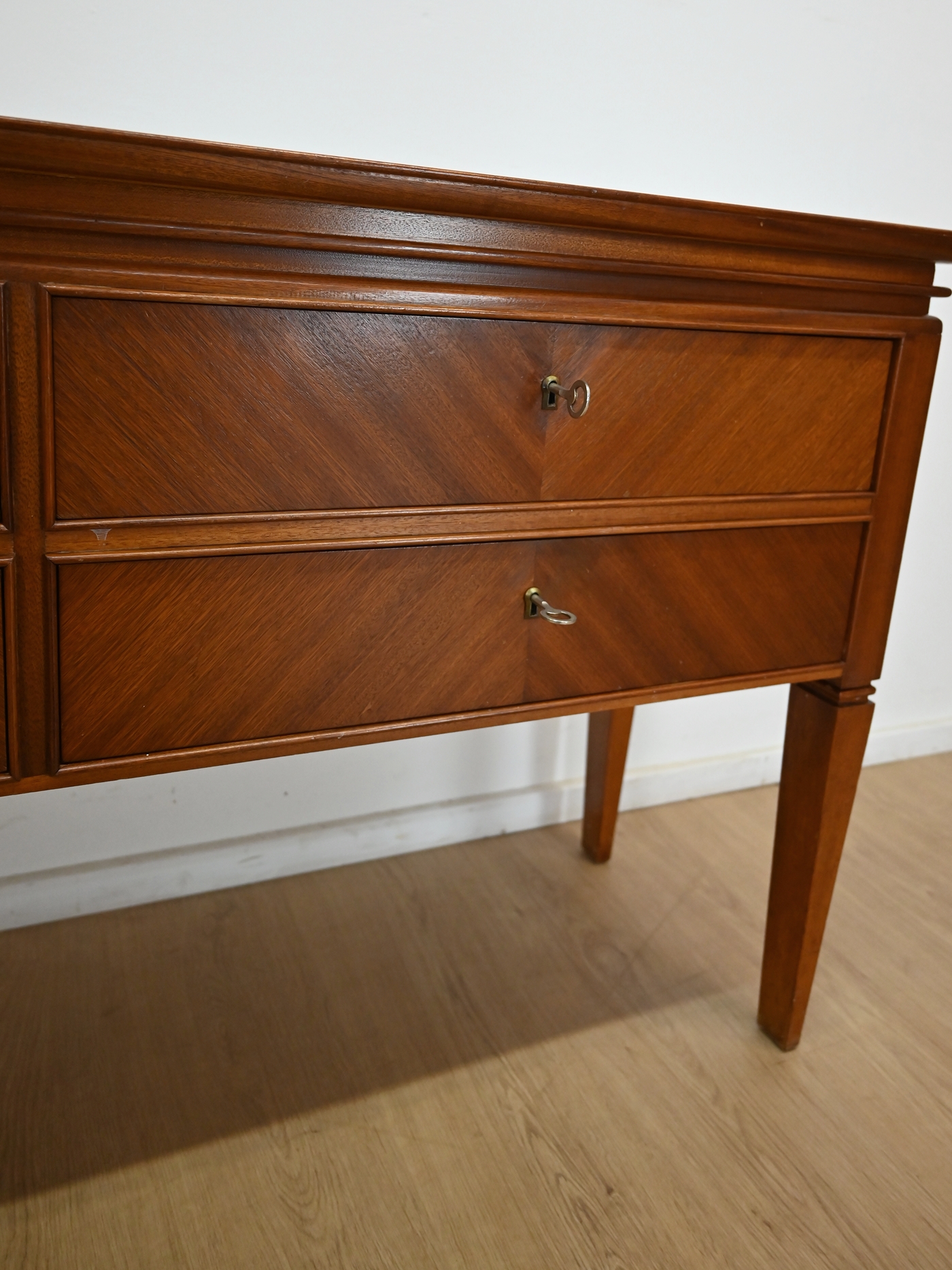 Stan dobry. Mebel przygotowany do użytkowania. Odświeżone zostały powierzchnie zewnętrzne jak i środek mebla. Mebel ma już swoje lata i ślady minionego czasu, które nie wpływają na jego odbiór estetyczny, są świadectwem autentyczności mebla. Szafkę od razu można wstawić do mieszkania.