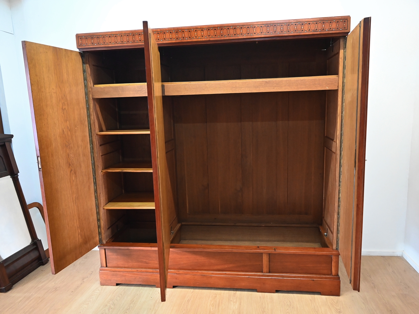 Wykonany jest w całości z drewna, fornirowany orzechem.