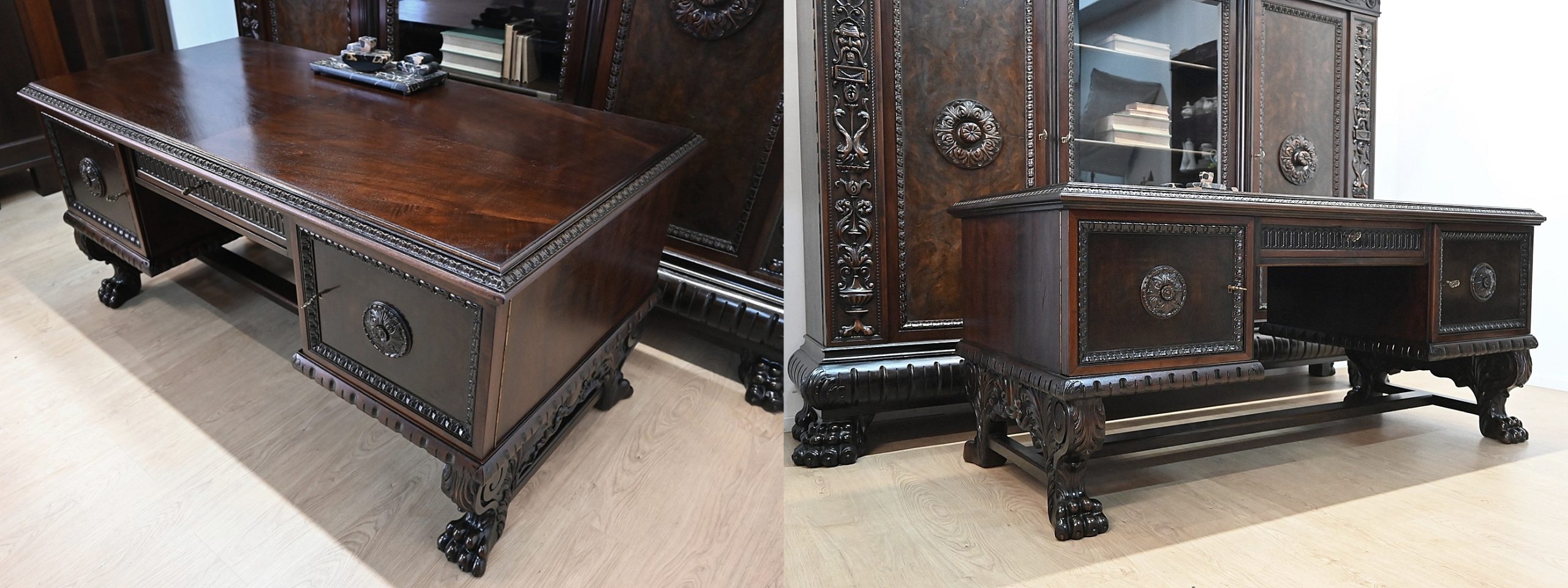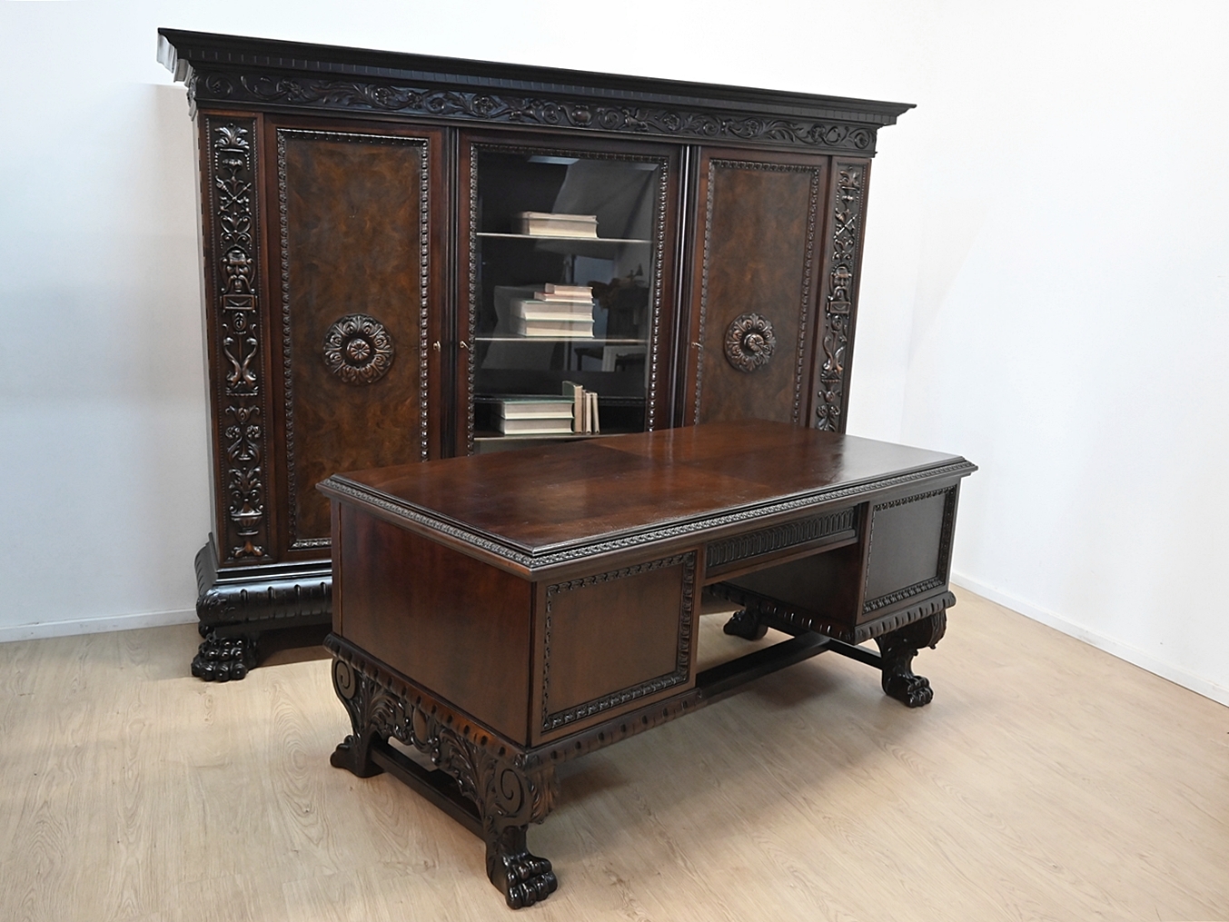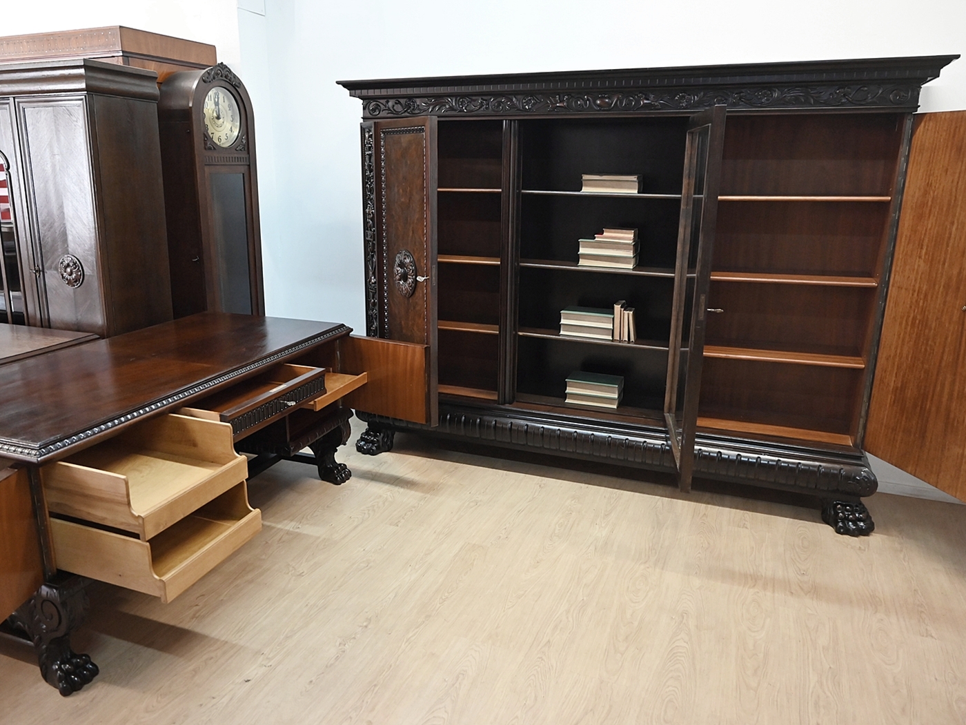 Stan bardzo dobry. Meble przygotowane do użytkowania. Odświeżone zostały powierzchnie zewnętrzne jak i środki mebli. Meble mają już swoje lata i ślady minionego czasu, które nie wpływają na ich odbiór estetyczny, są świadectwem autentyczności mebli. Gabinet od razu można wstawić do mieszkania.