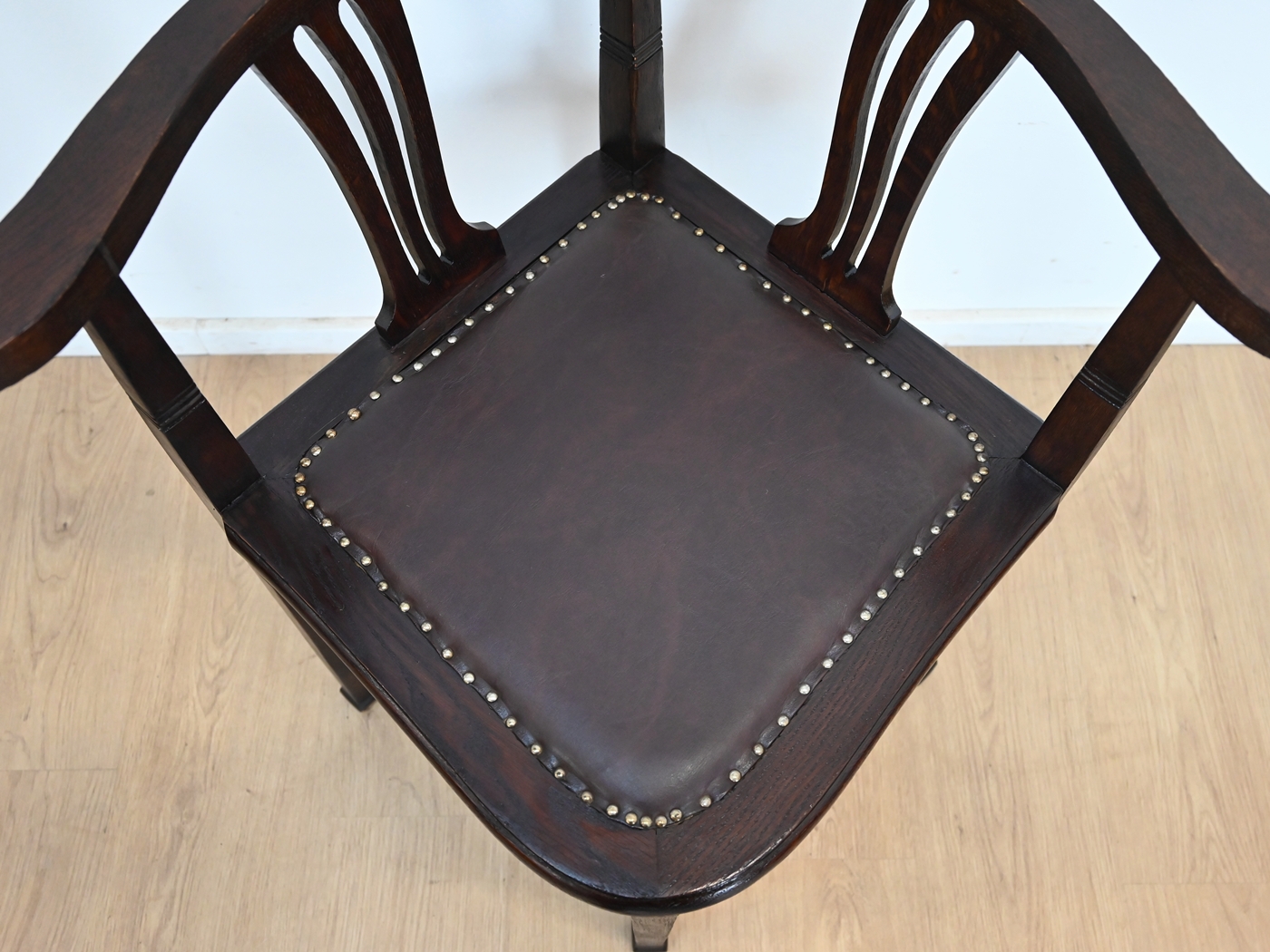 Fotel stabilny. Siedzisko na pasach. Tapicerka skórzana nie wymieniana, bez przetarć, dziur.