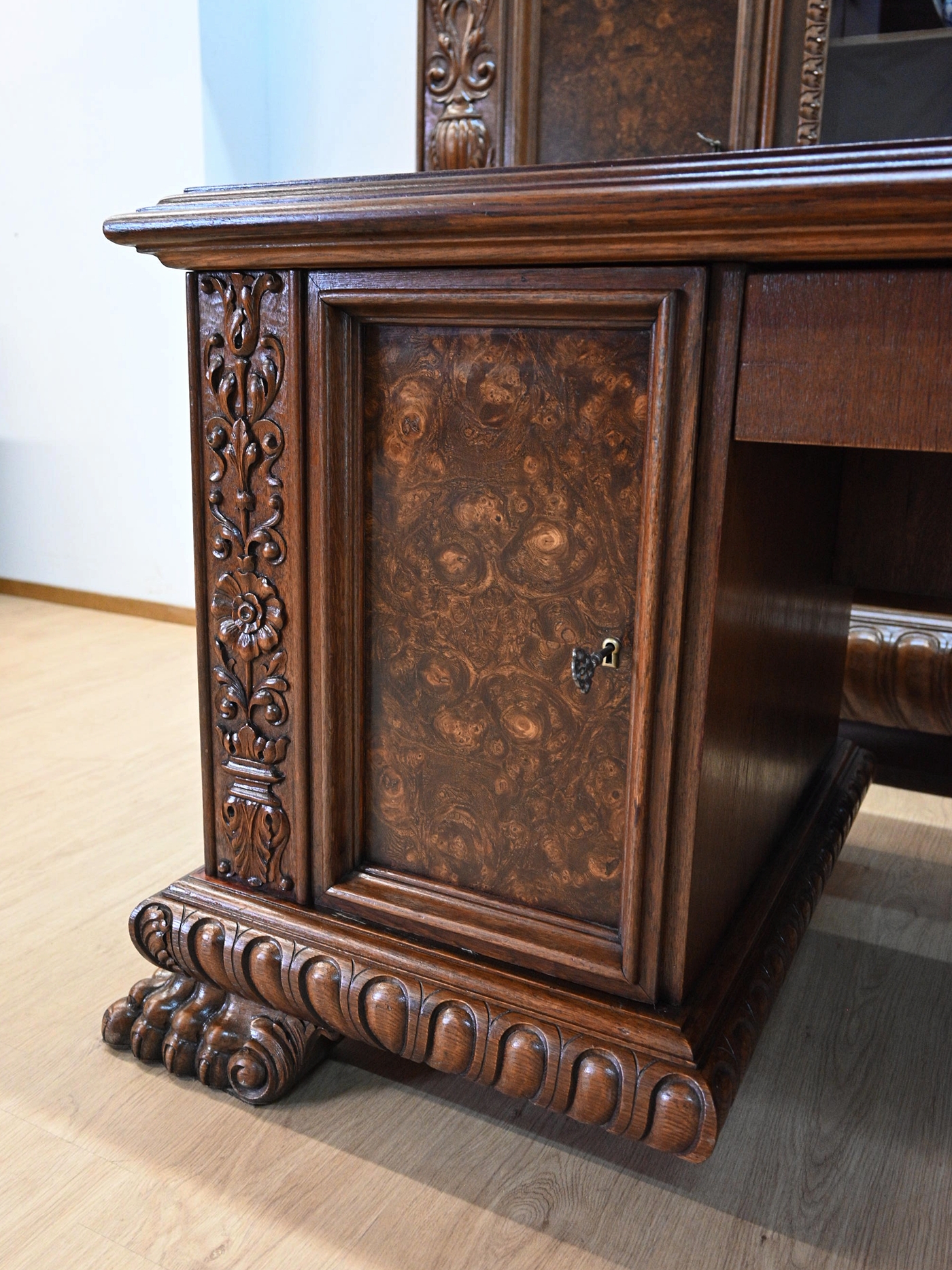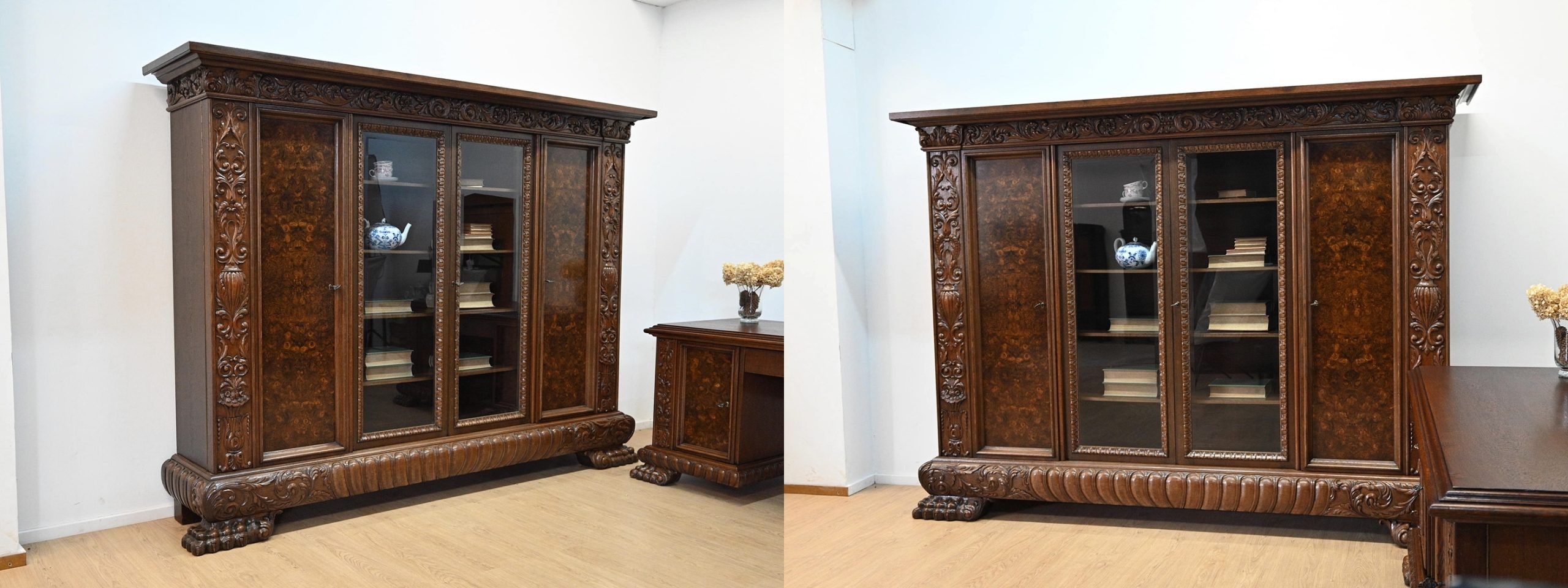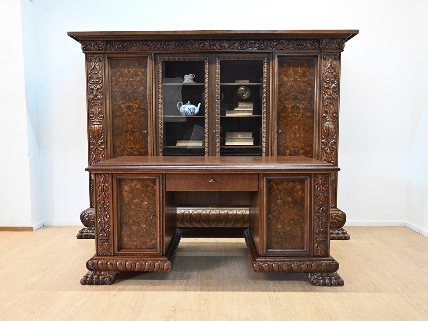 Stan bardzo dobry. Meble przygotowane do użytkowania. Odświeżone zostały powierzchnie zewnętrzne jak i środki mebli. Meble mają już swoje lata i ślady minionego czasu, które nie wpływają na ich odbiór estetyczny, są świadectwem autentyczności mebli. Gabinet od razu można wstawić do mieszkania.