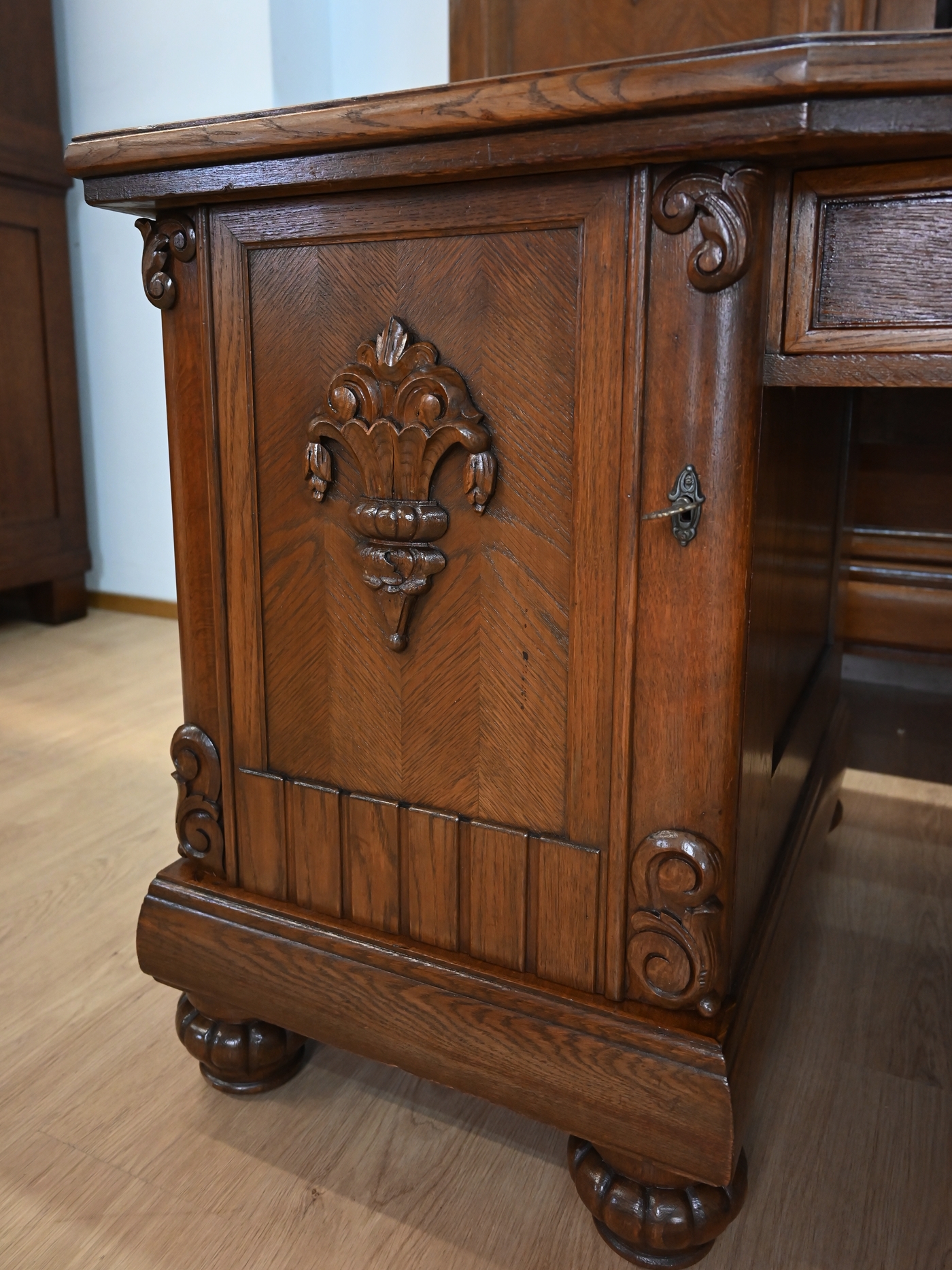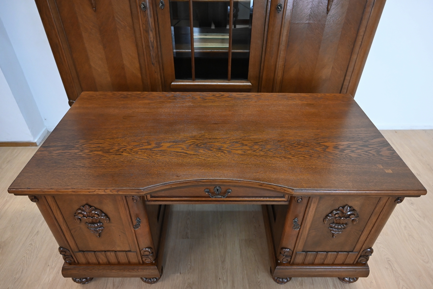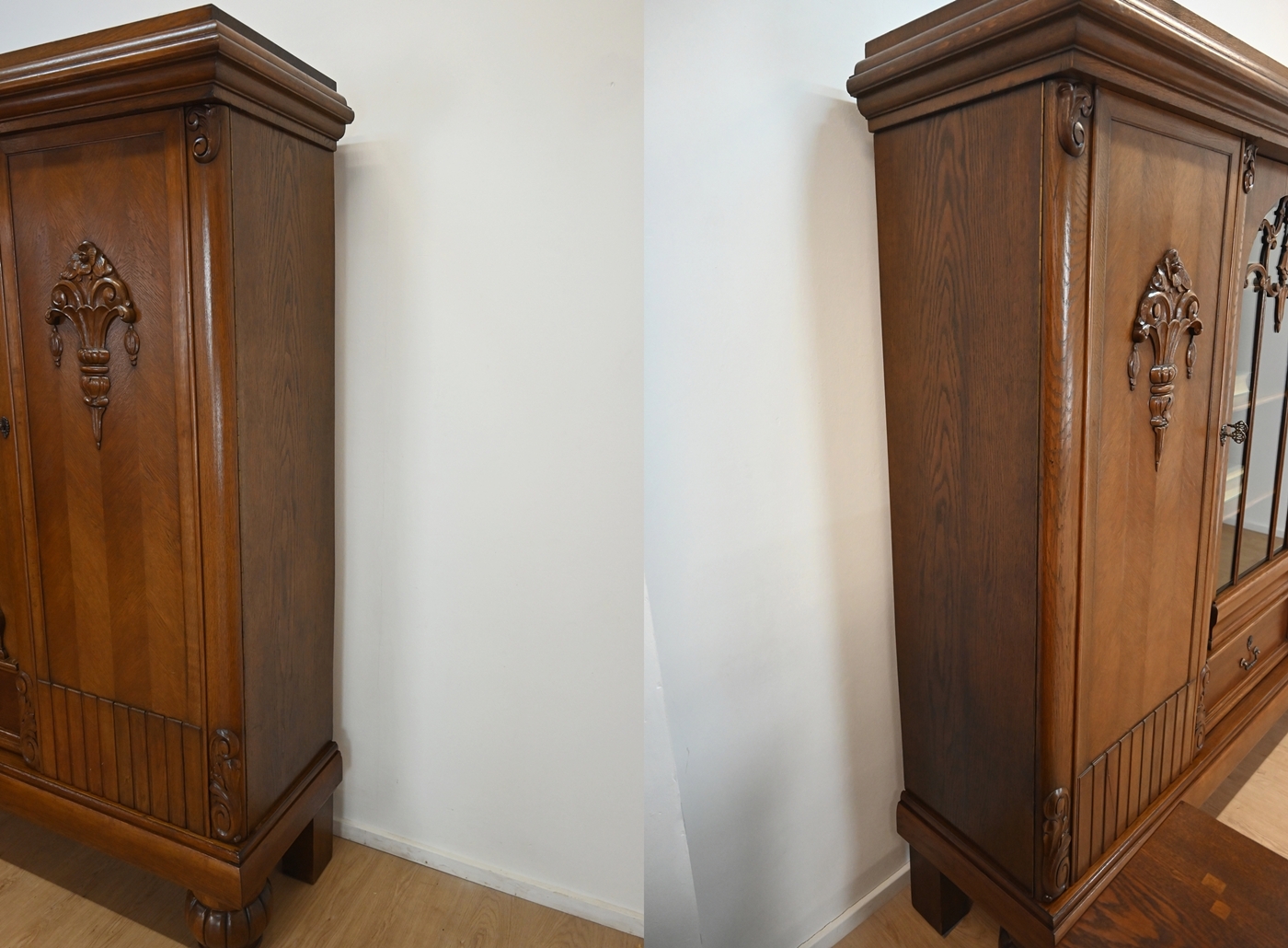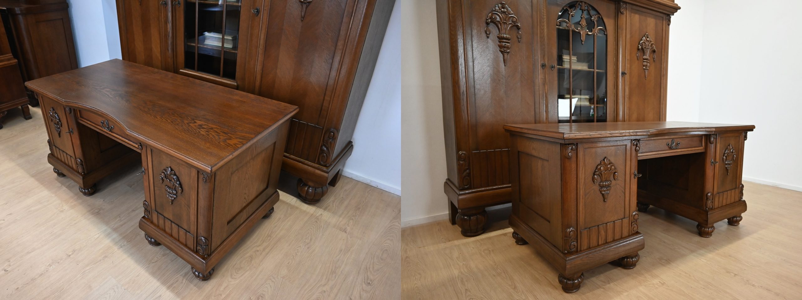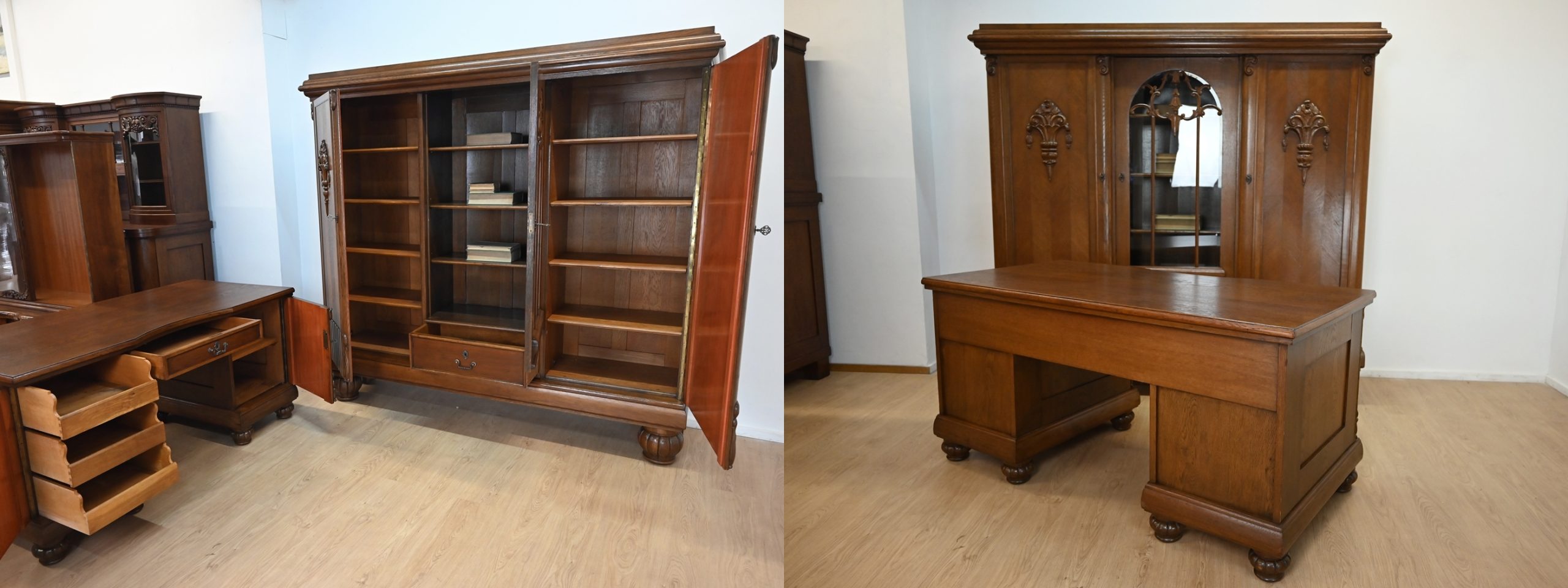 Stan bardzo dobry. Meble przygotowane do użytkowania. Odświeżone zostały powierzchnie zewnętrzne jak i środki mebli. Meble mają już swoje lata i ślady minionego czasu, które nie wpływają na ich odbiór estetyczny, są świadectwem autentyczności mebli. Gabinet od razu można wstawić do mieszkania.