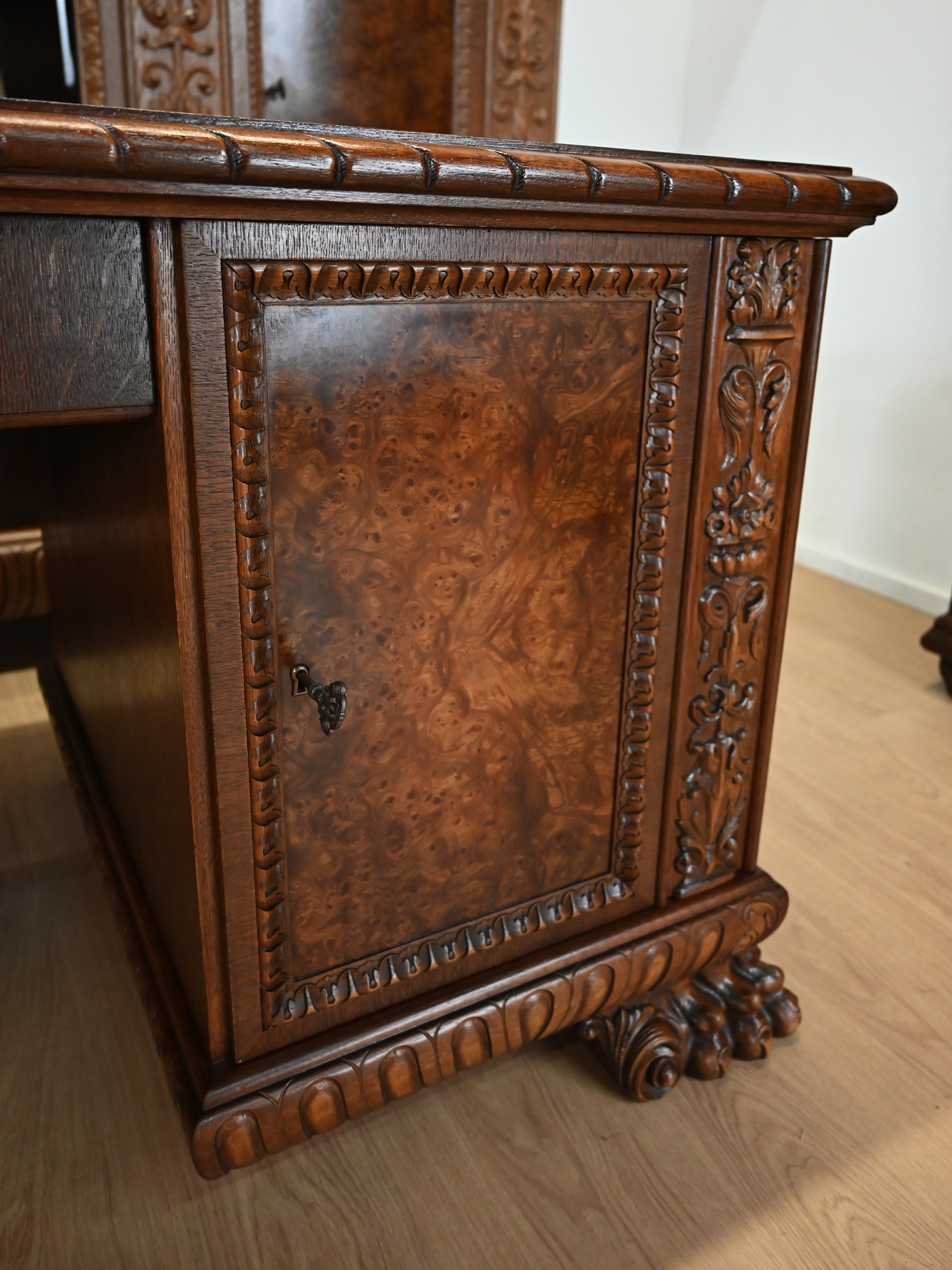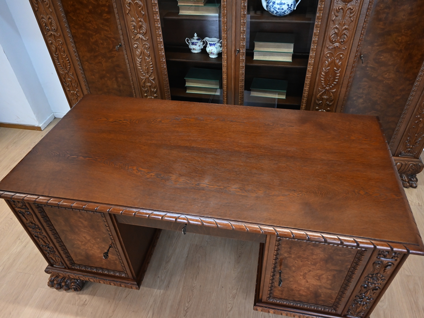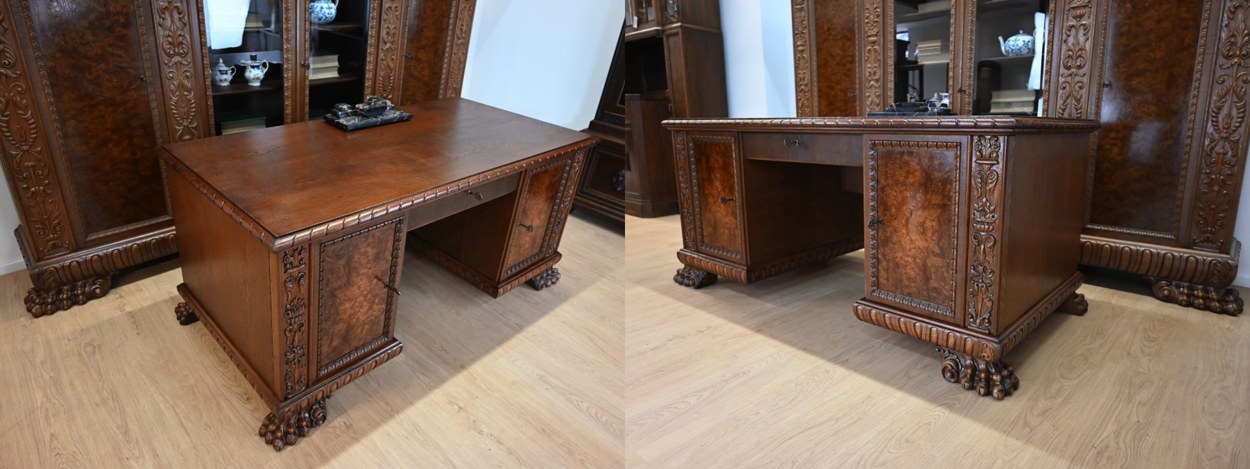 Stan bardzo dobry. Meble przygotowane do użytkowania. Odświeżone zostały powierzchnie zewnętrzne jak i środki mebli. Meble mają już swoje lata i ślady minionego czasu, które nie wpływają na ich odbiór estetyczny, są świadectwem autentyczności mebli. Gabinet od razu można wstawić do mieszkania.