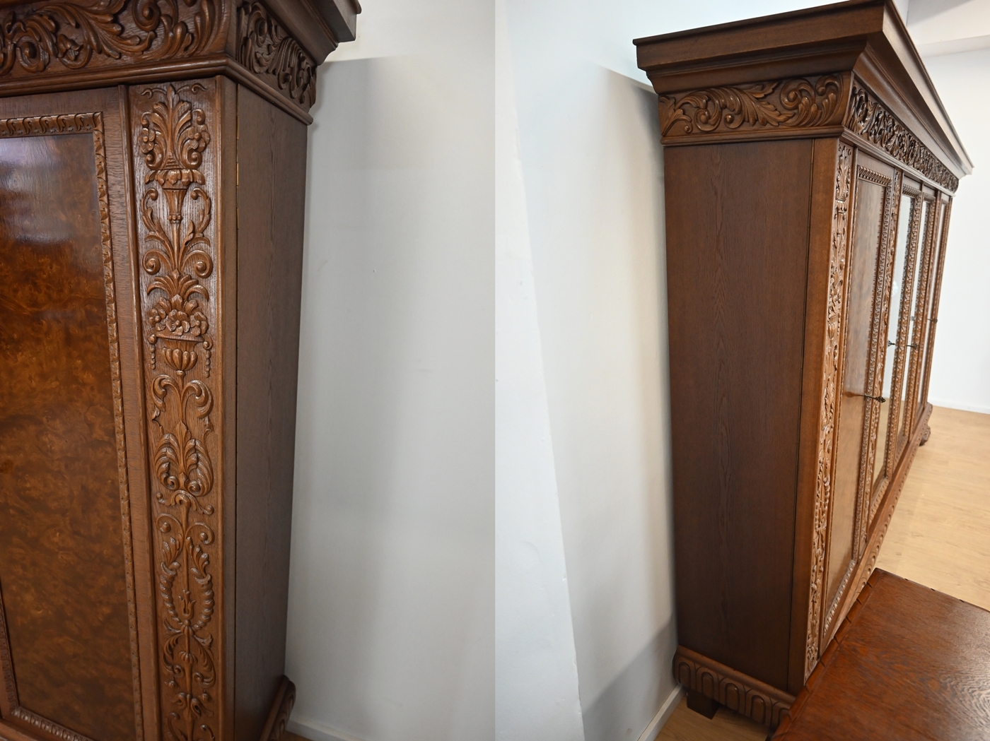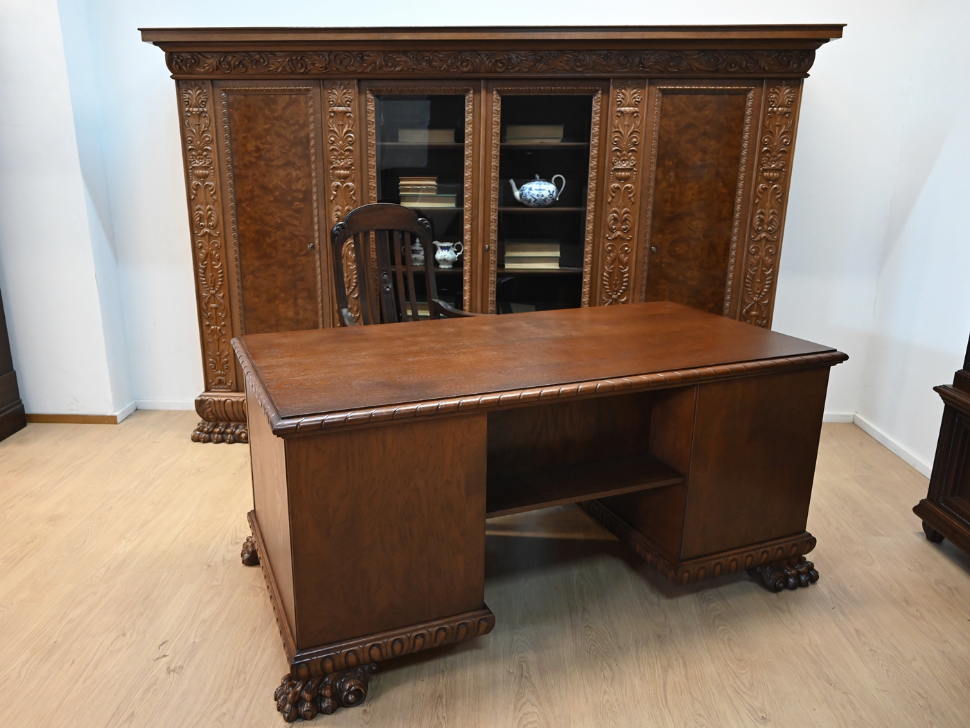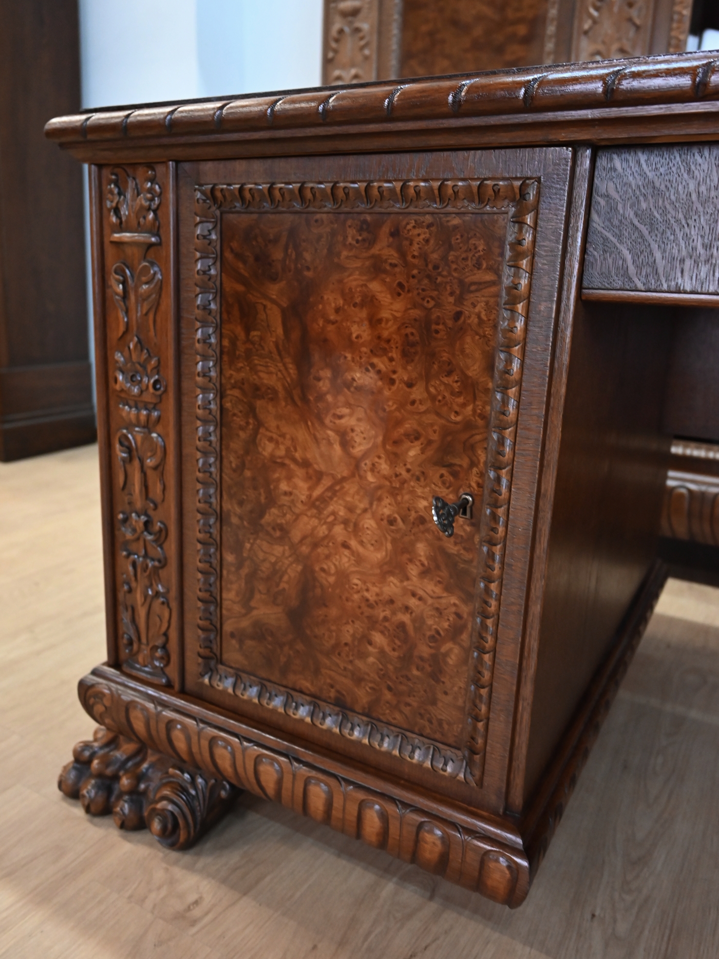 Stan bardzo dobry. Meble przygotowane do użytkowania. Odświeżone zostały powierzchnie zewnętrzne jak i środki mebli. Meble mają już swoje lata i ślady minionego czasu, które nie wpływają na ich odbiór estetyczny, są świadectwem autentyczności mebli. Gabinet od razu można wstawić do mieszkania.