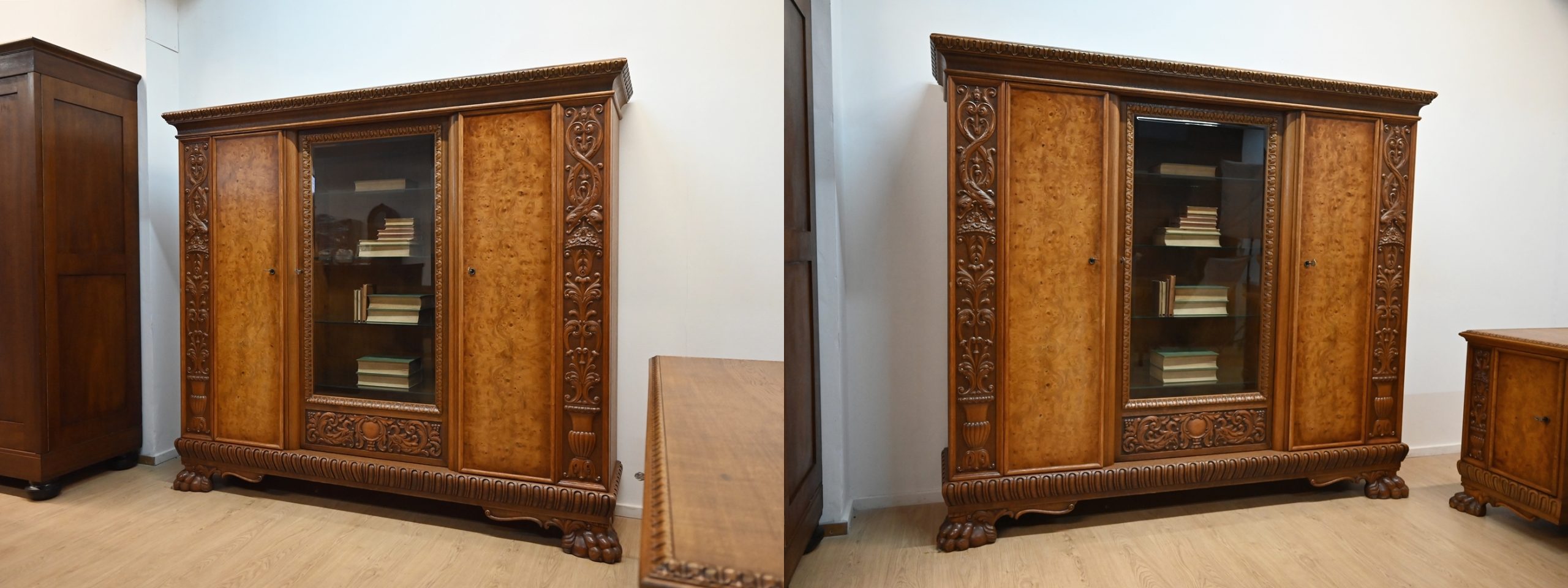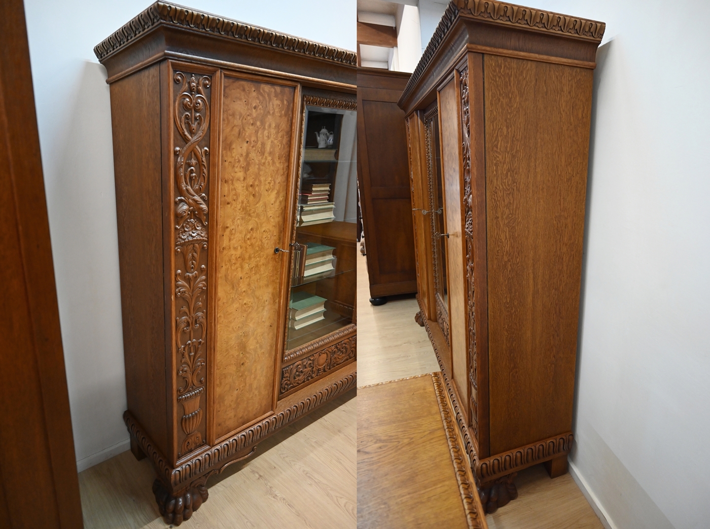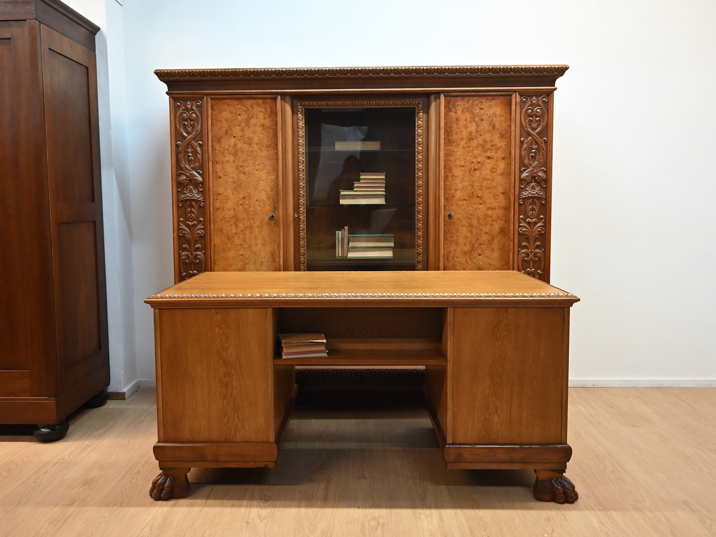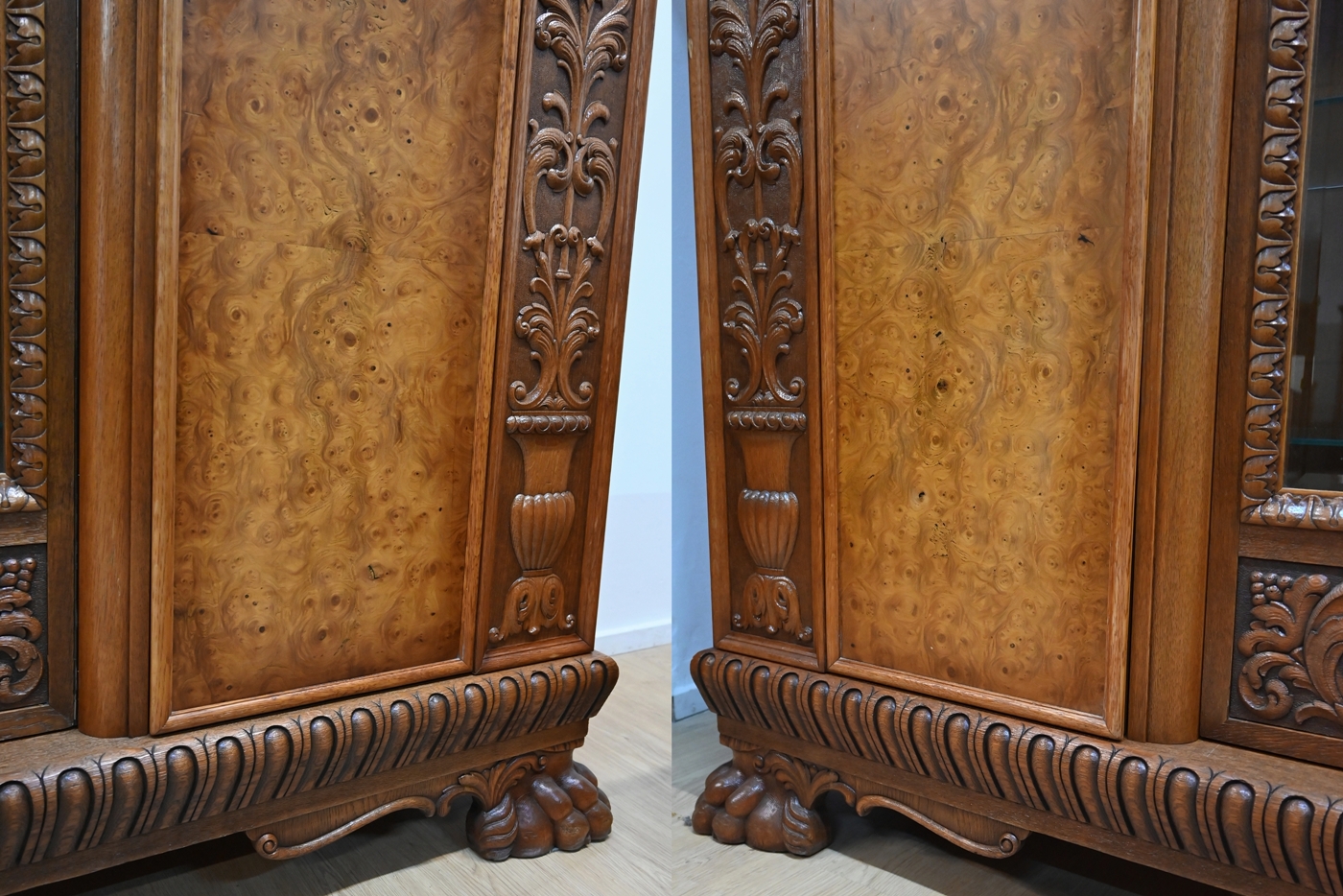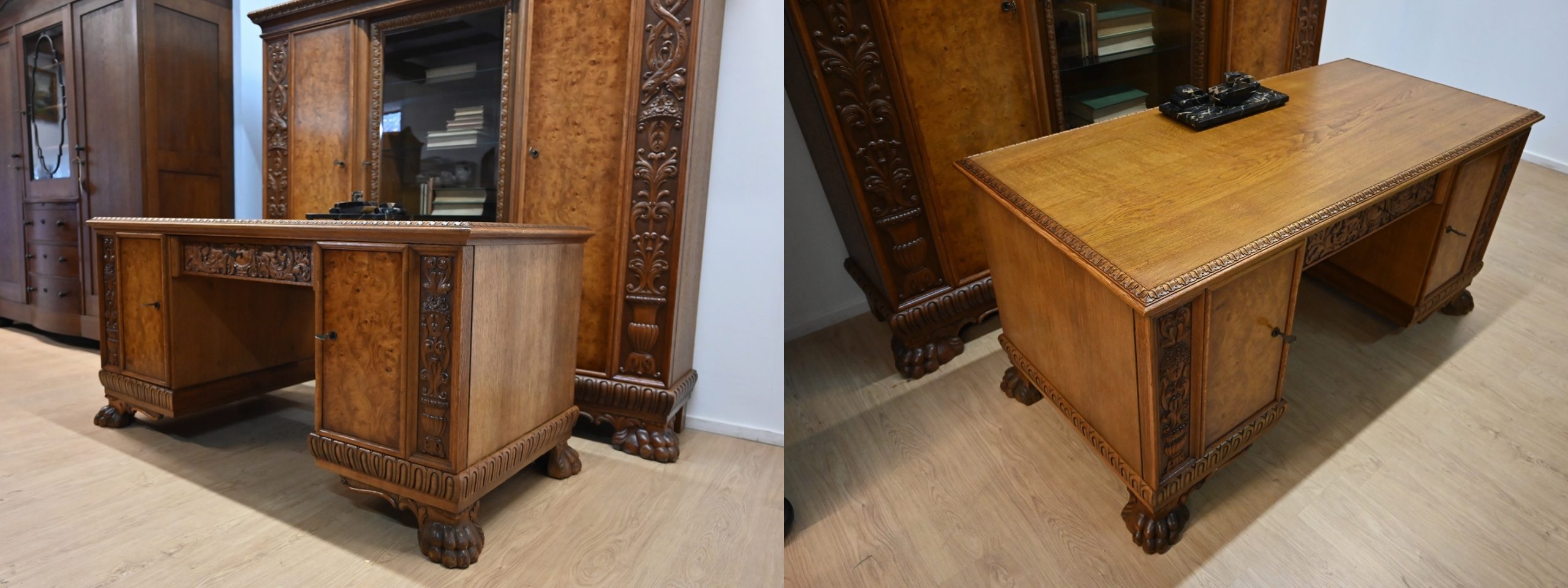 Stan bardzo dobry. Meble przygotowane do użytkowania. Odświeżone zostały powierzchnie zewnętrzne jak i środki mebli. Meble mają już swoje lata i ślady minionego czasu, które nie wpływają na ich odbiór estetyczny, są świadectwem autentyczności mebli. Gabinet od razu można wstawić do mieszkania.