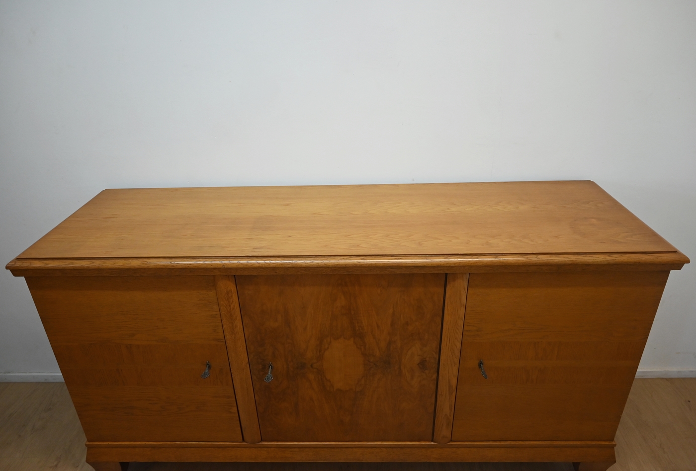 Stan bardzo dobry. Mebel przygotowany do użytkowania. Odświeżone zostały powierzchnie zewnętrzne jak i środek mebla. Mebel ma już swoje lata i ślady minionego czasu, które nie wpływają na jego odbiór estetyczny, są świadectwem autentyczności mebla. Komodę od razu można wstawić do mieszkania.
