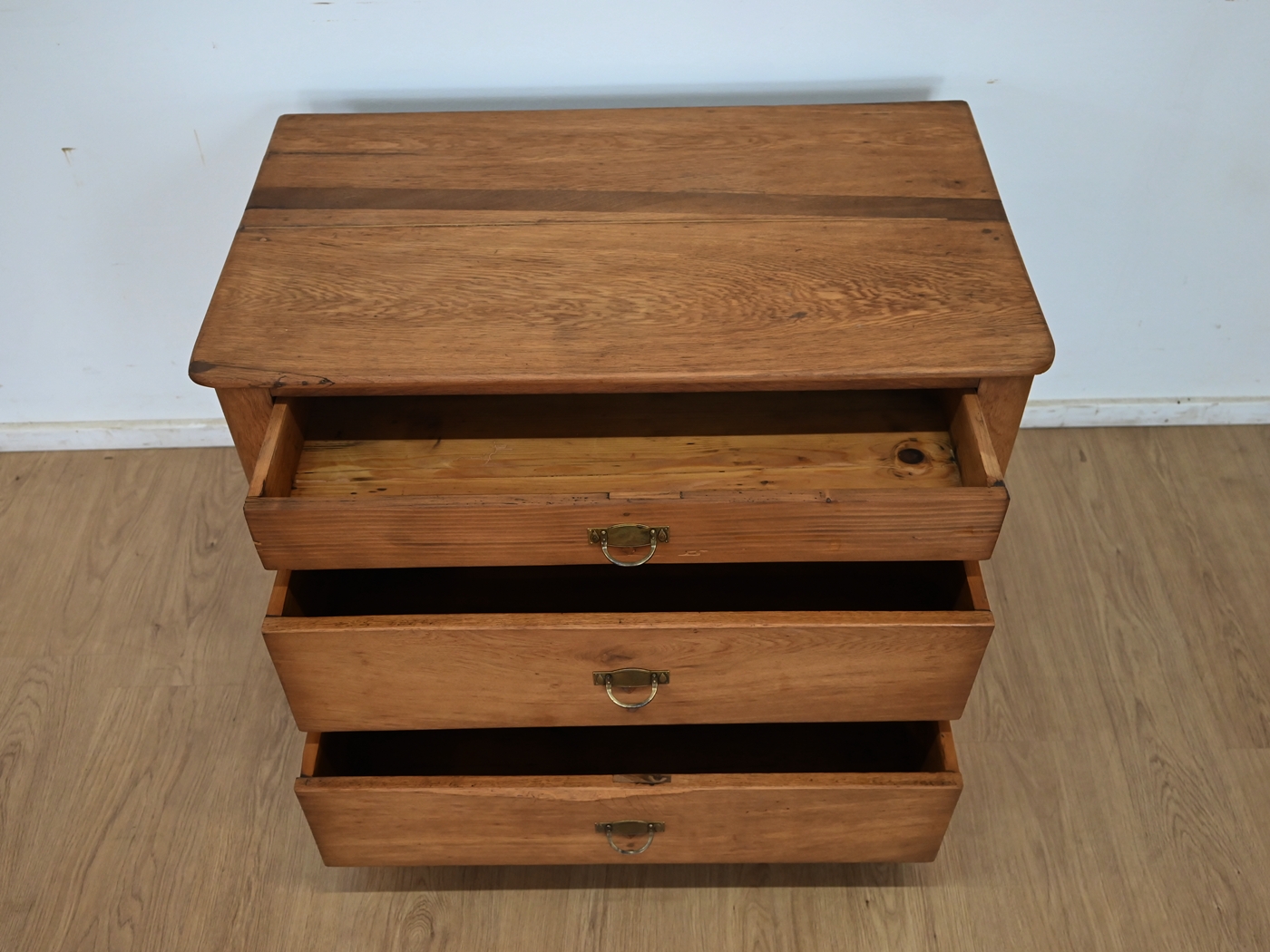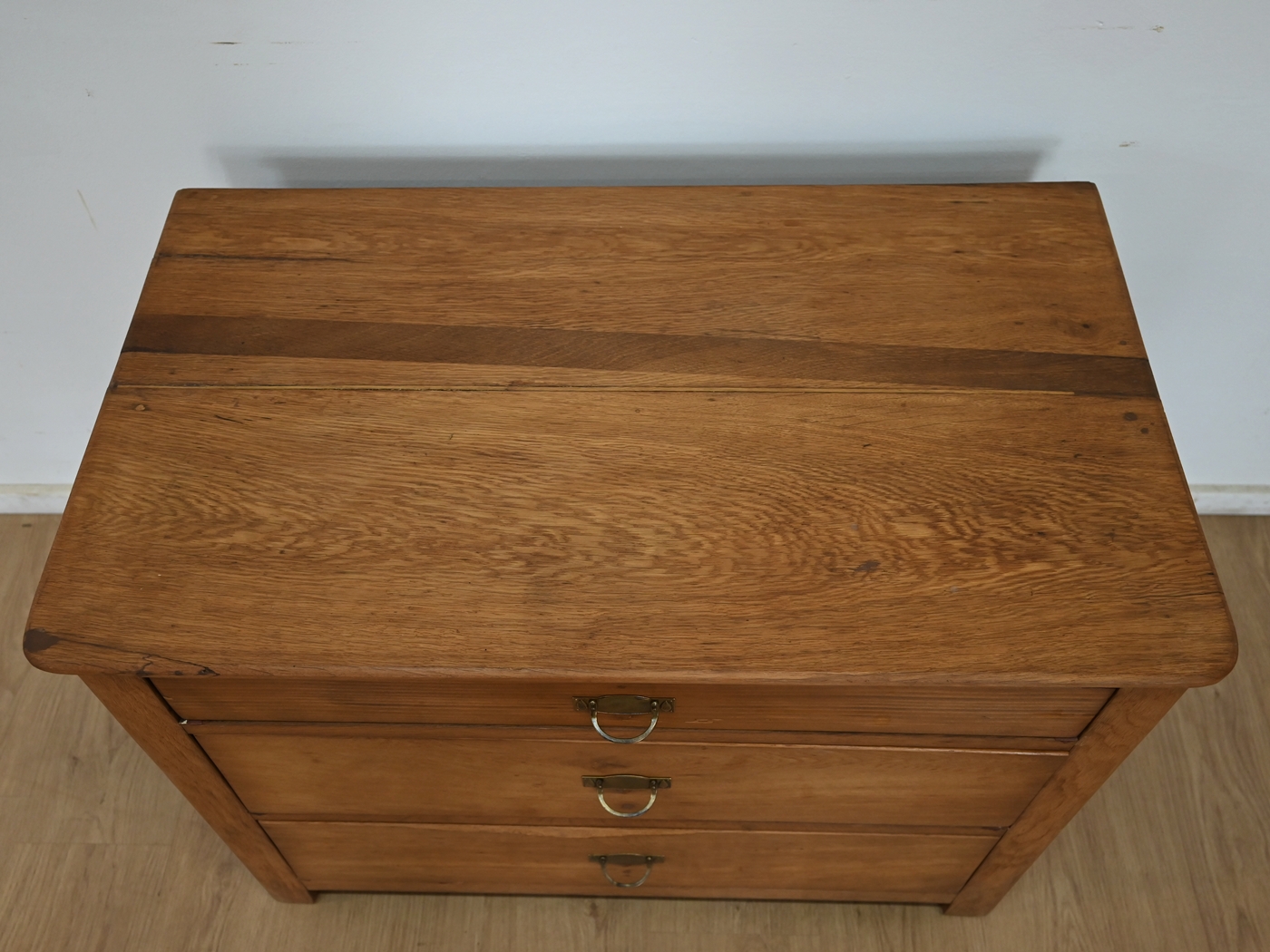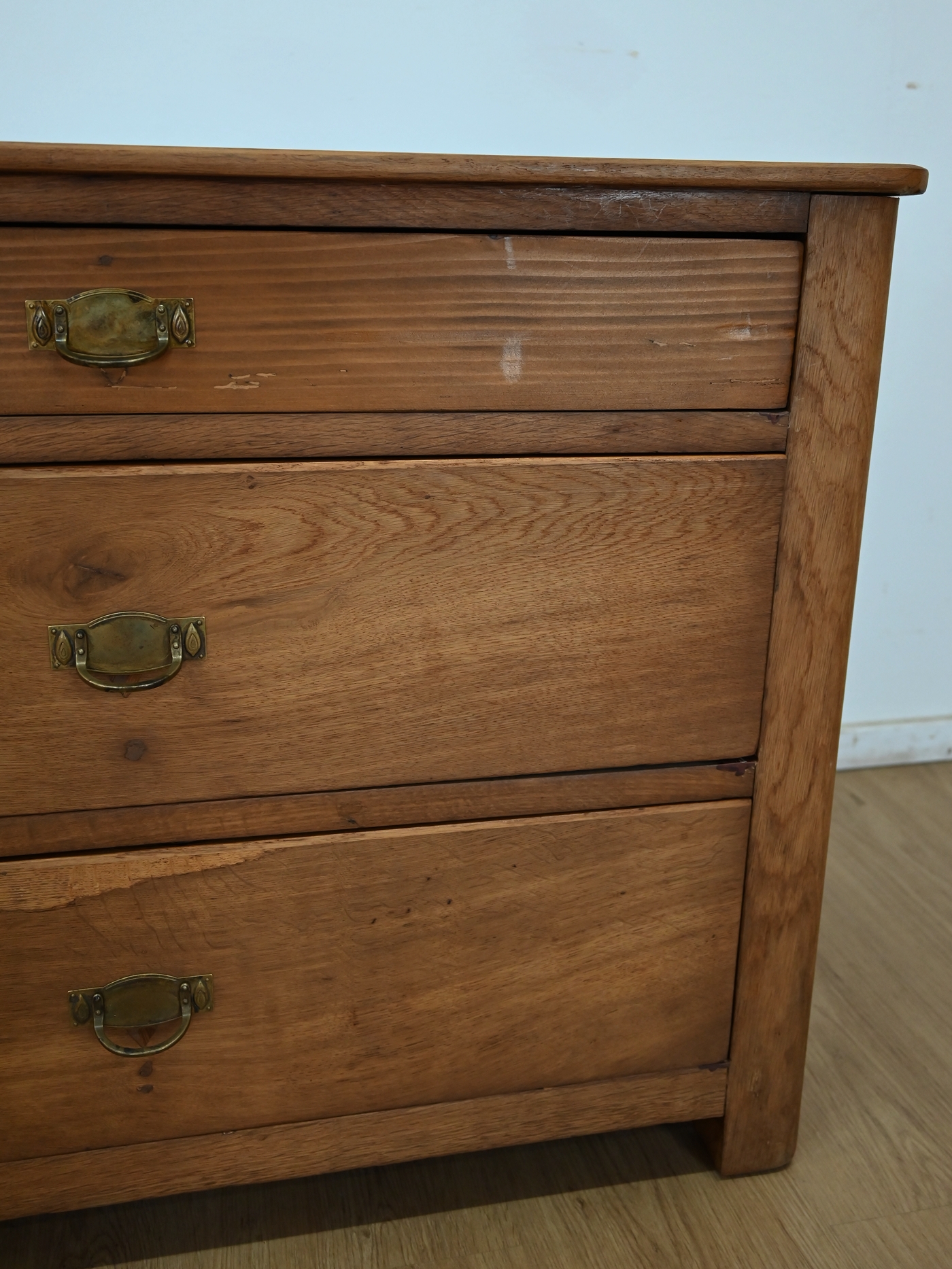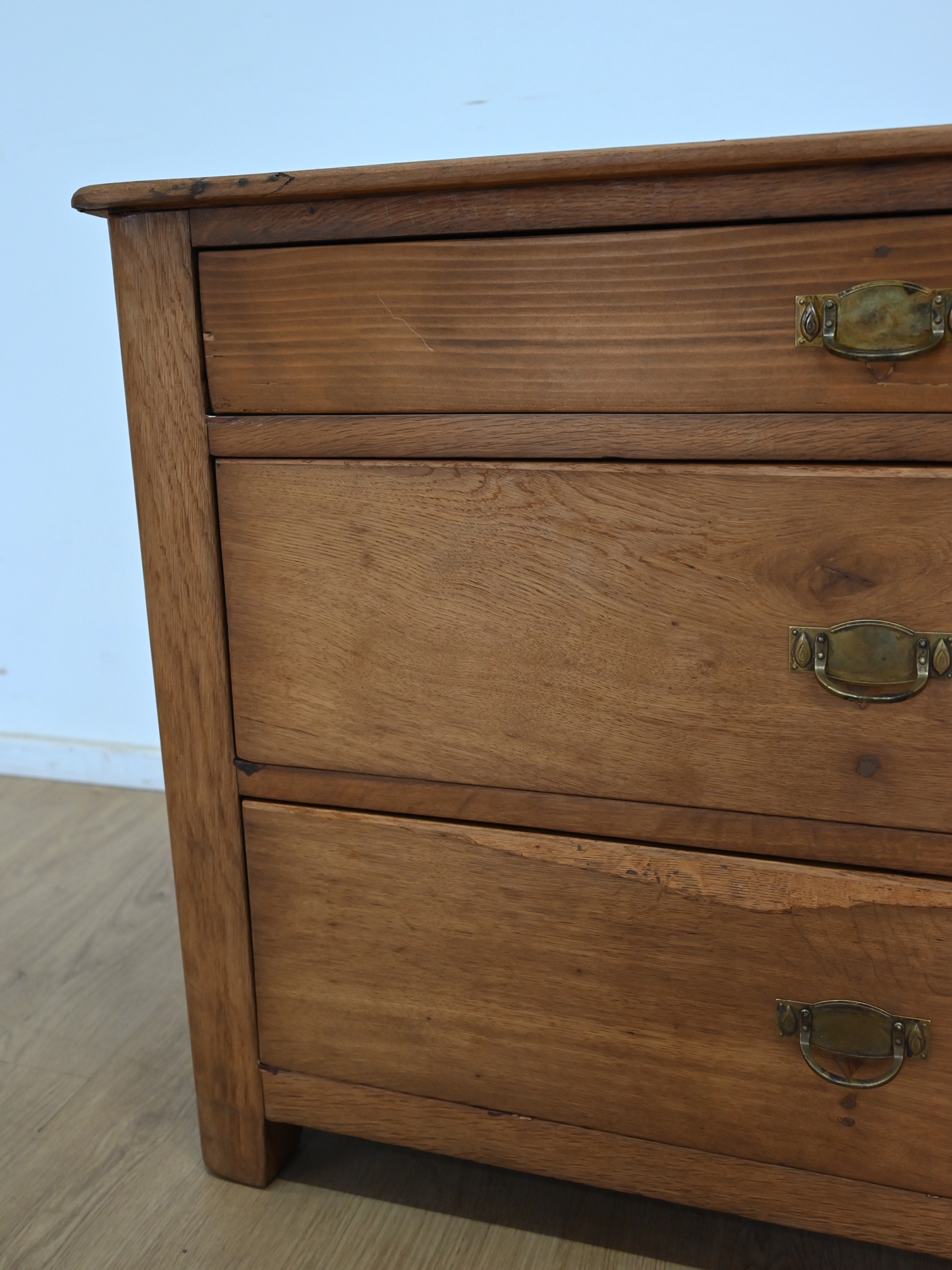 Wykonany jest w całości z drewna, fronty w litym dębie a środek, plecy i górna szuflada w sośnie.