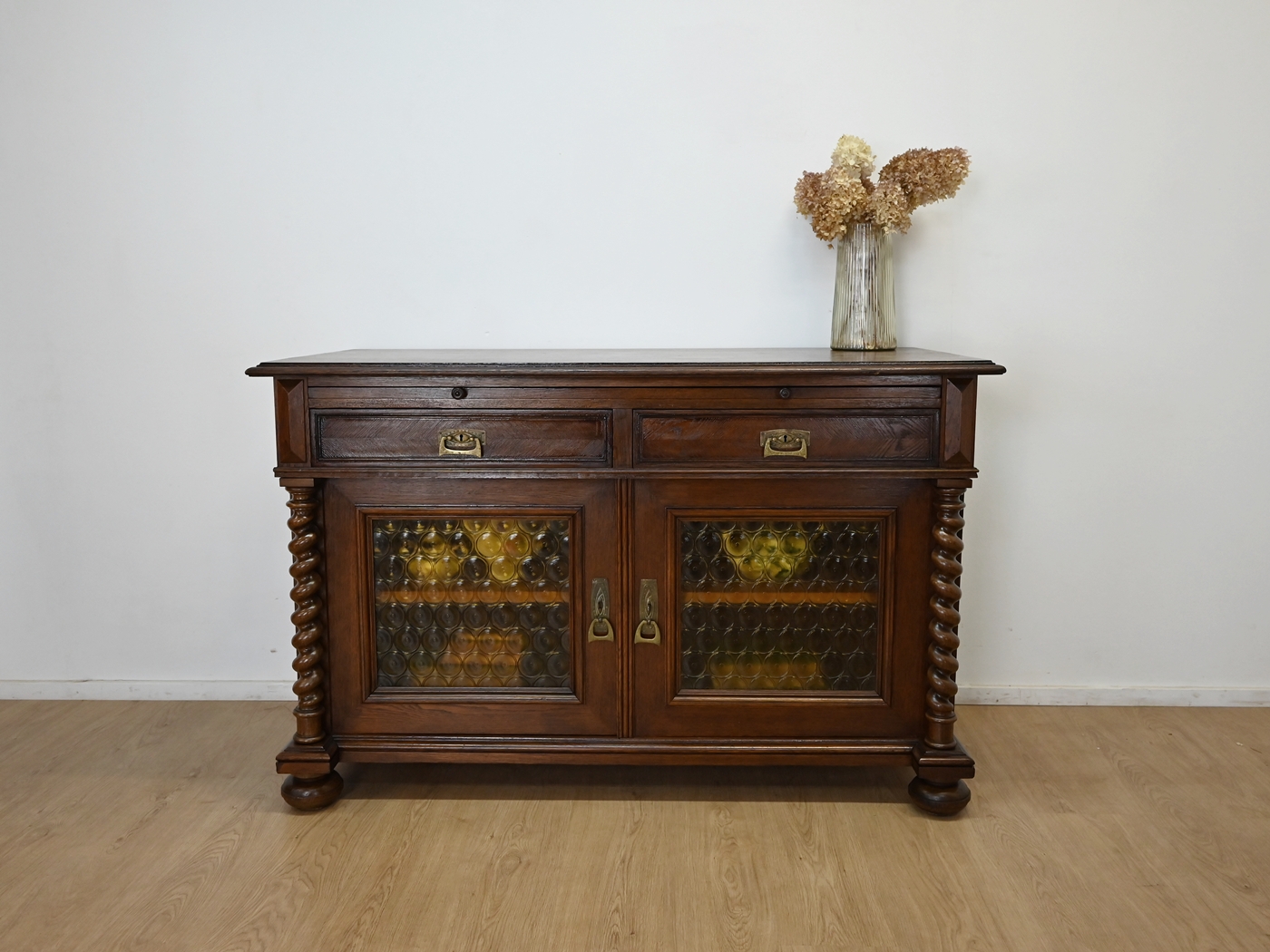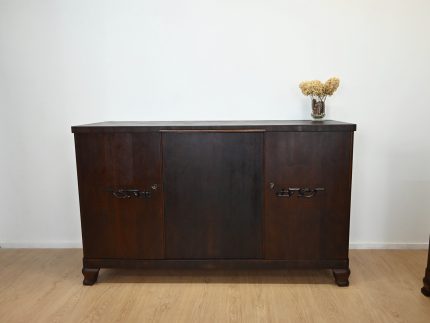 Stan bardzo dobry. Mebel przygotowany do użytkowania. Odświeżone zostały powierzchnie zewnętrzne jak i środek mebla. Mebel ma już swoje lata i ślady minionego czasu, które nie wpływają na jego odbiór estetyczny, są świadectwem autentyczności mebla. Komodę od razu można wstawić do mieszkania.