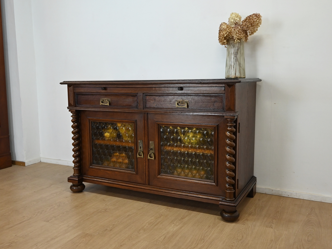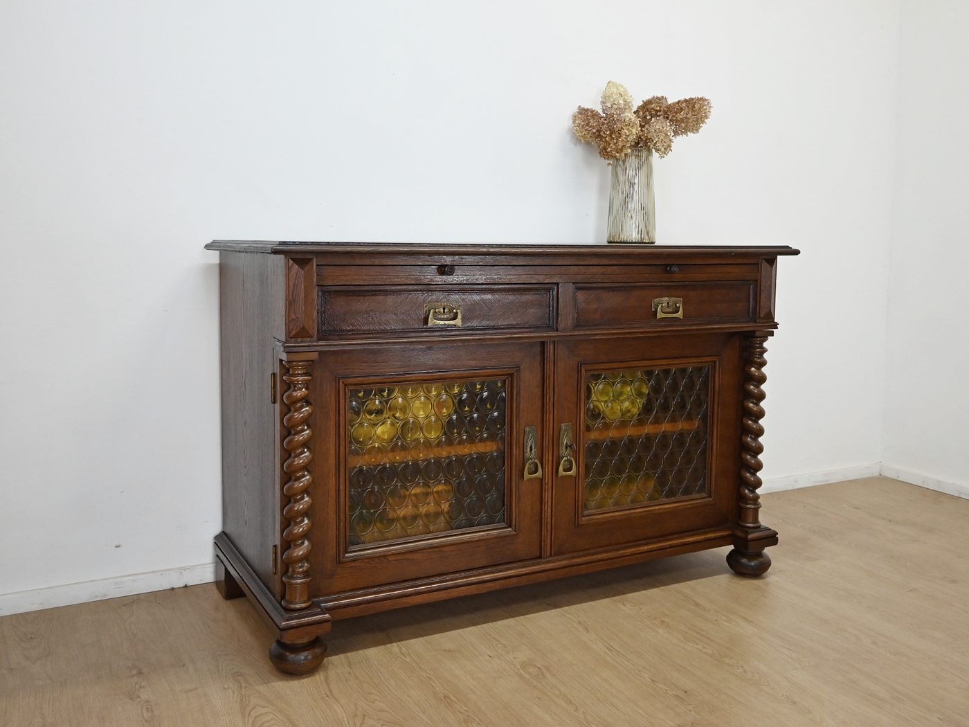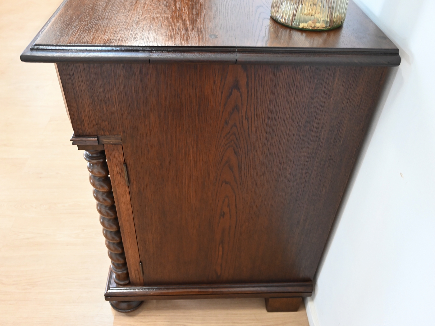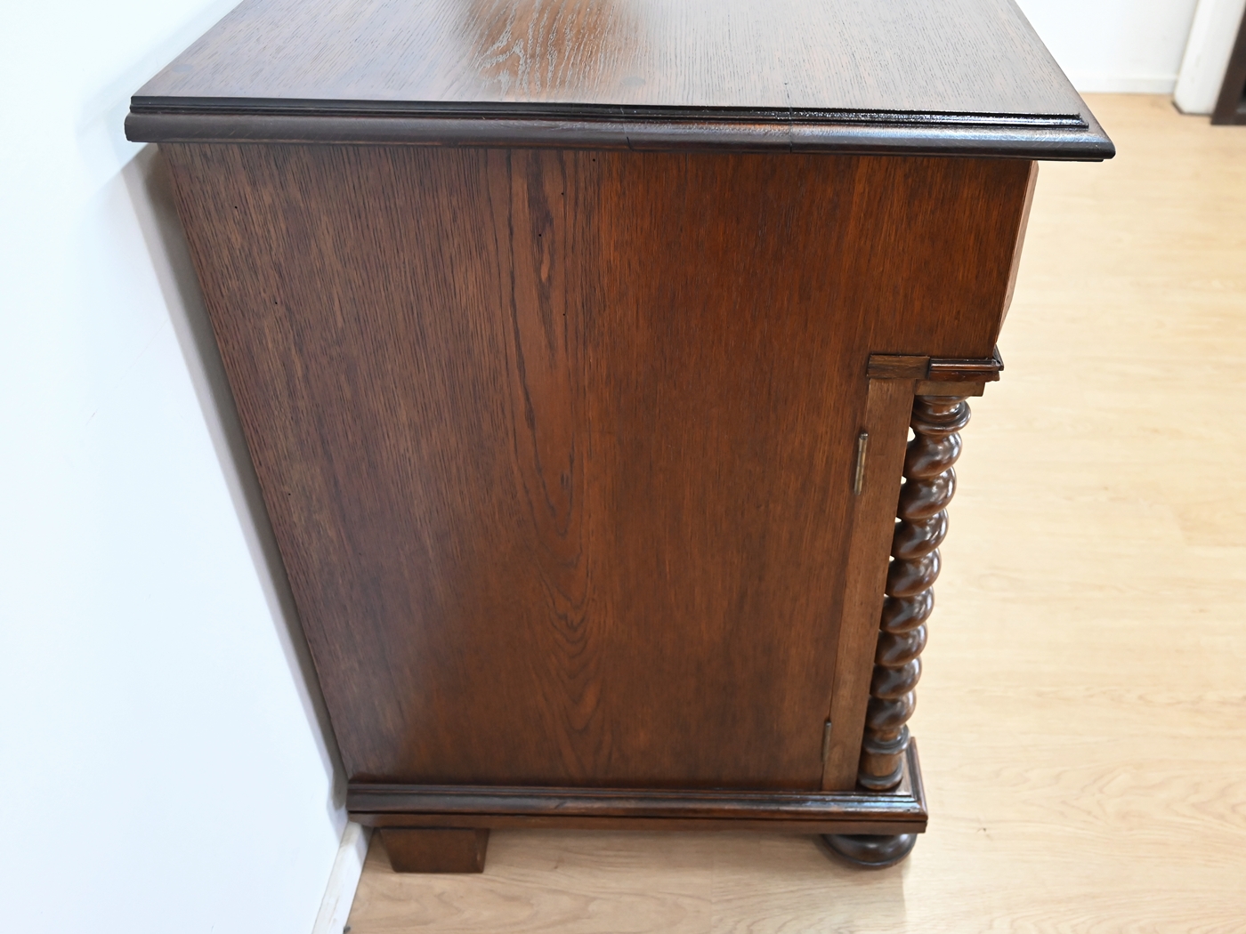 Zamek przy drzwiczkach sprawny, jeden oryginalny kluczyki w komplecie. Okucia oryginalne.