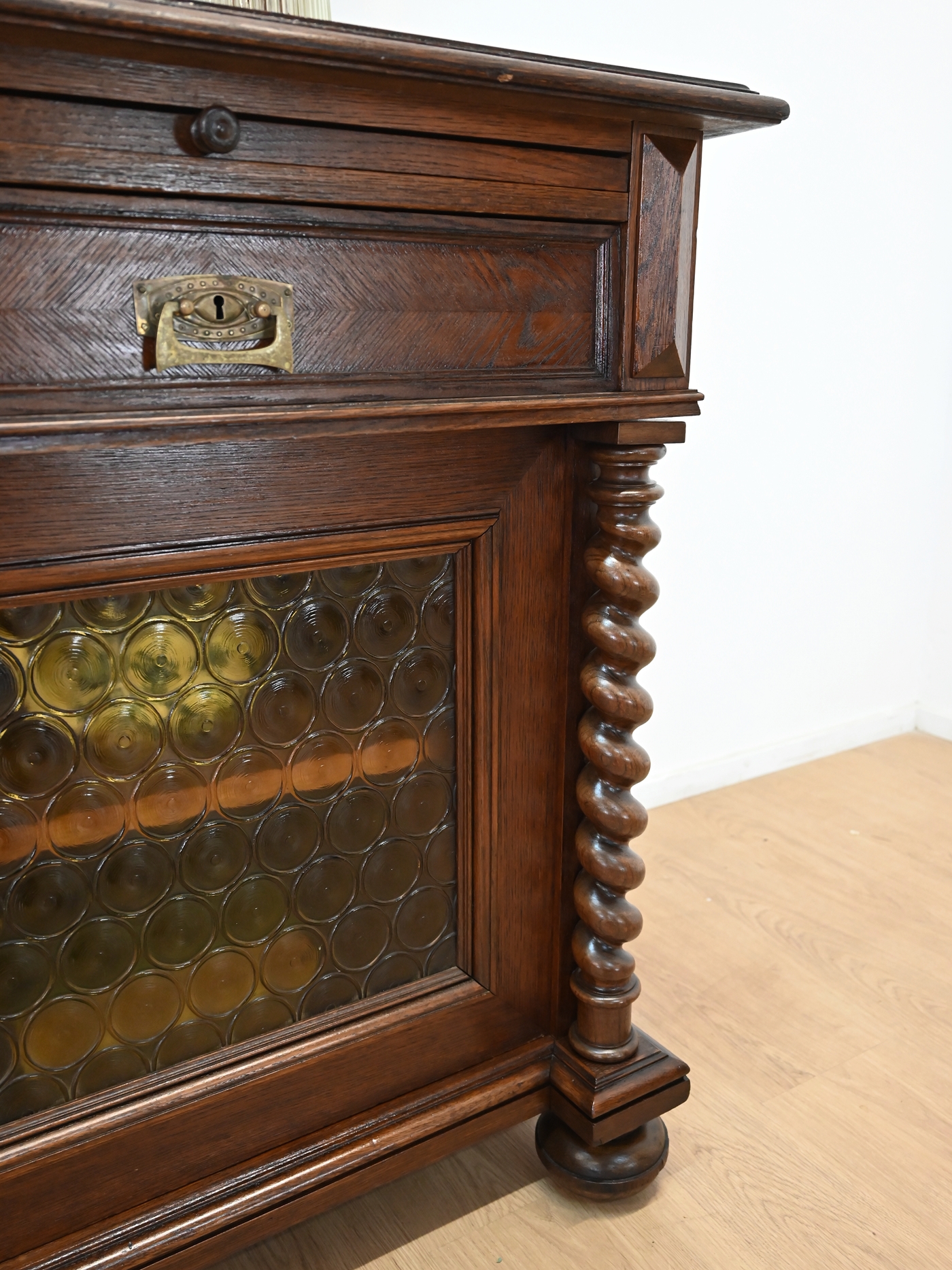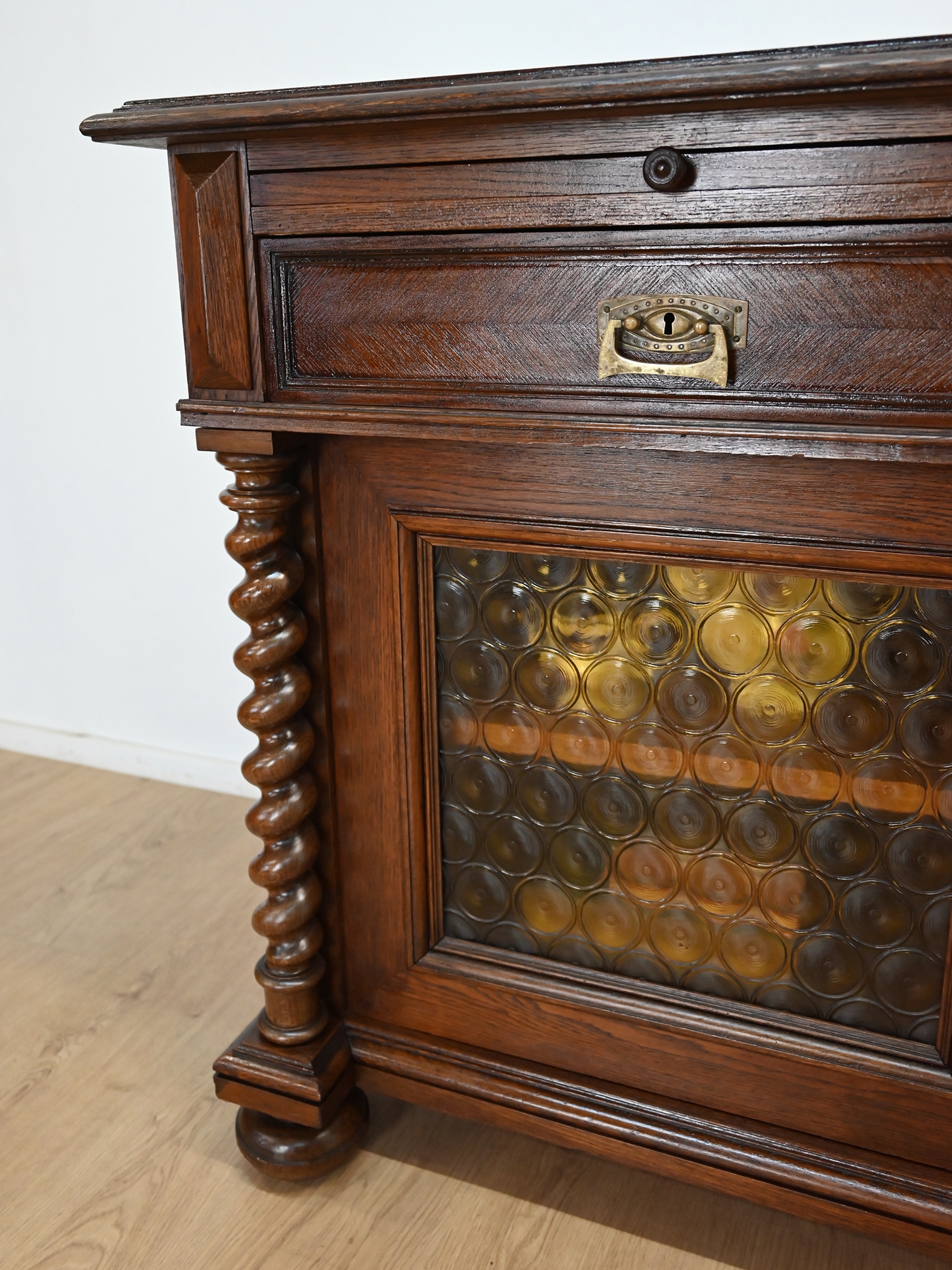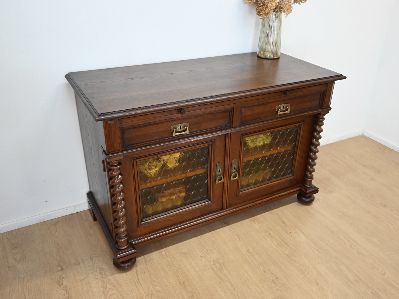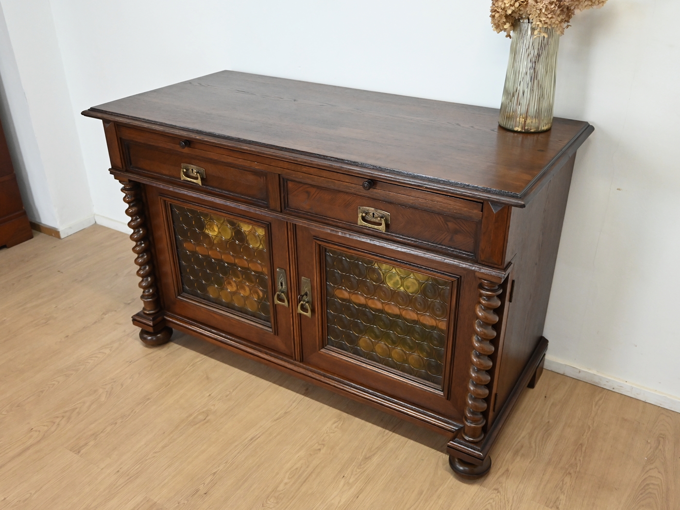 Zamek przy drzwiczkach sprawny, jeden oryginalny kluczyki w komplecie. Okucia oryginalne.