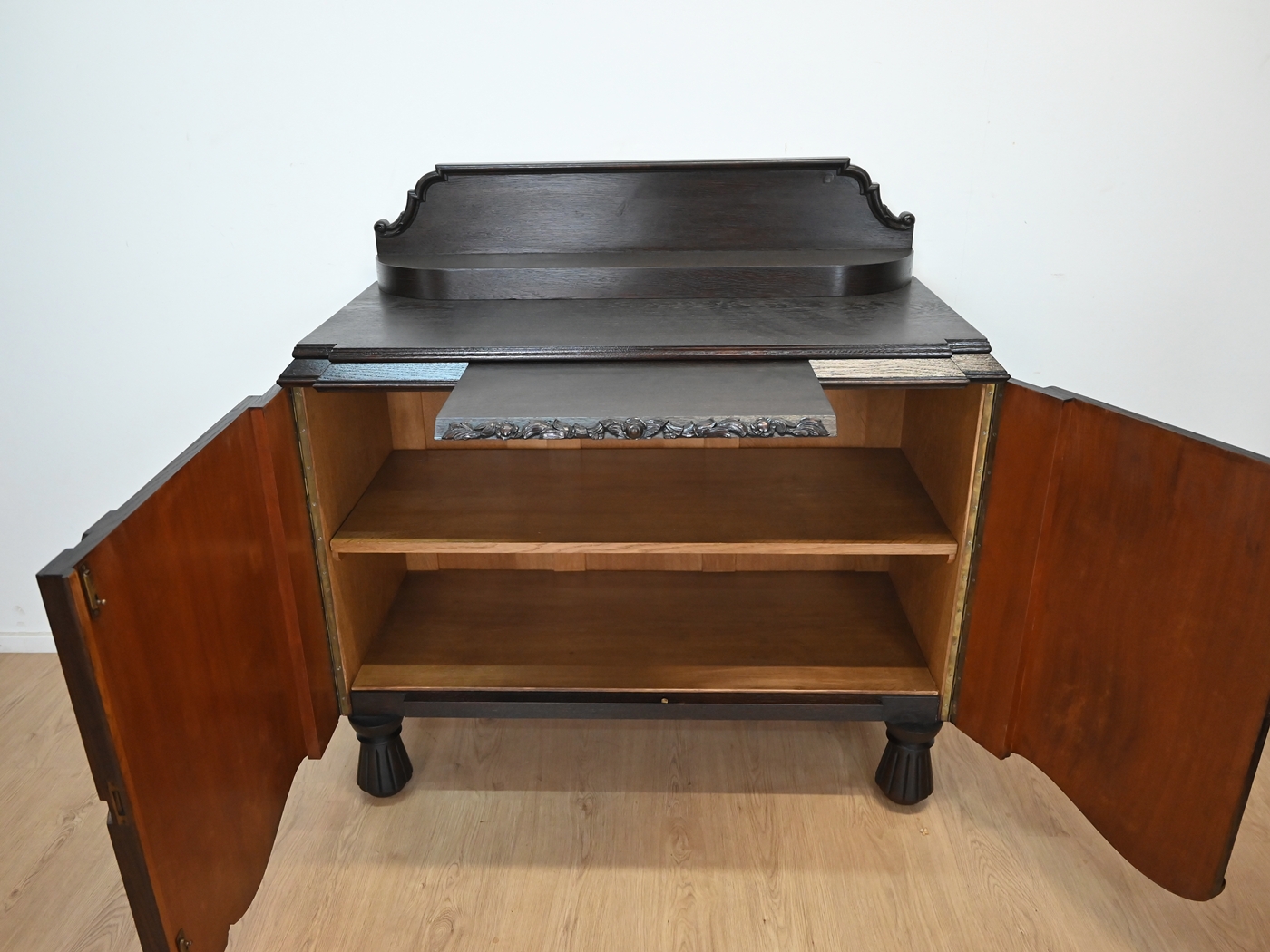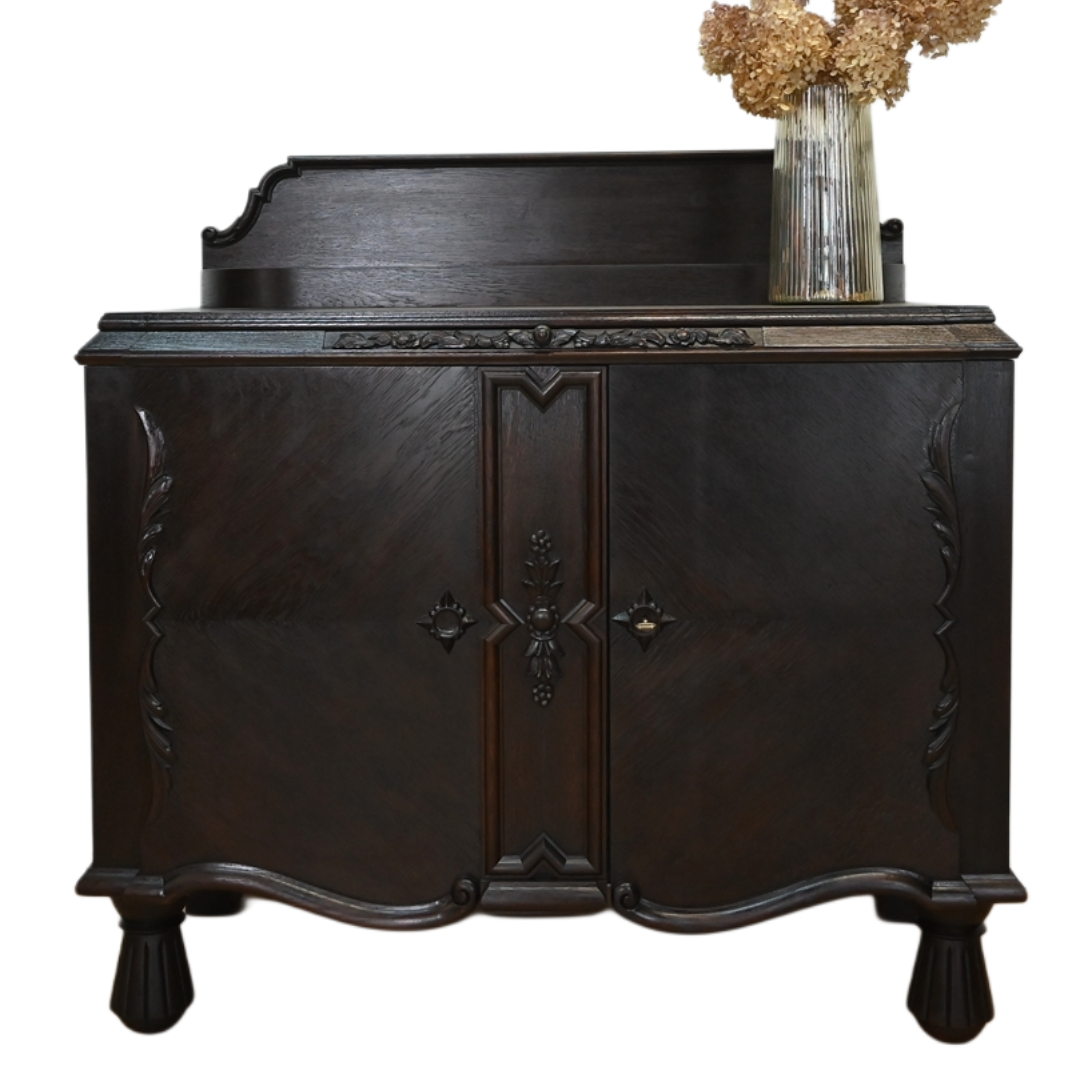 Stan bardzo dobry. Mebel przygotowany do użytkowania. Odświeżone zostały powierzchnie zewnętrzne jak i środek mebla. Mebel ma już swoje lata i ślady minionego czasu, które nie wpływają na jego odbiór estetyczny, są świadectwem autentyczności mebla. Komodę od razu można wstawić do mieszkania.