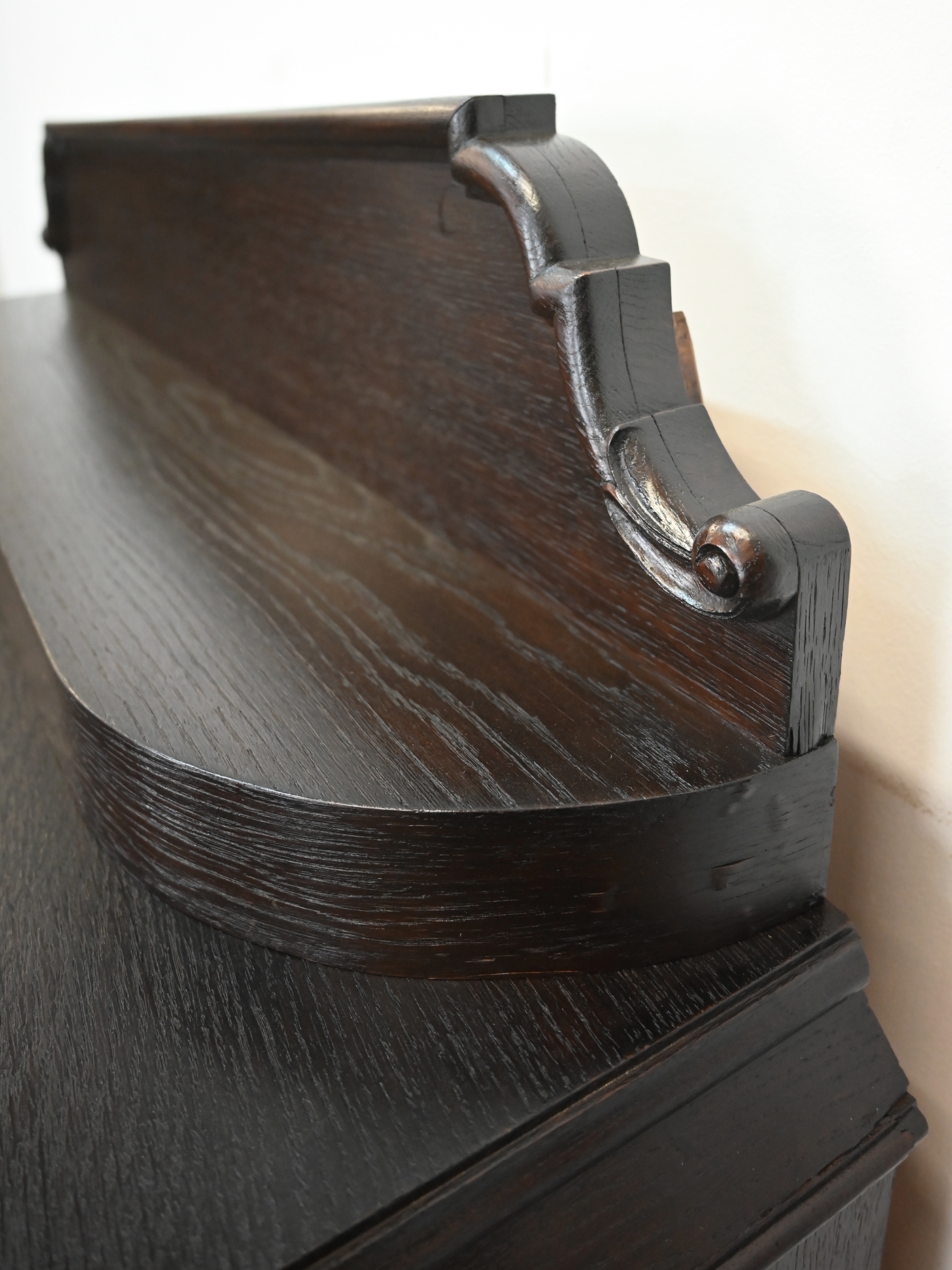 Wykonany jest w całości z drewna, fornirowany dębem.